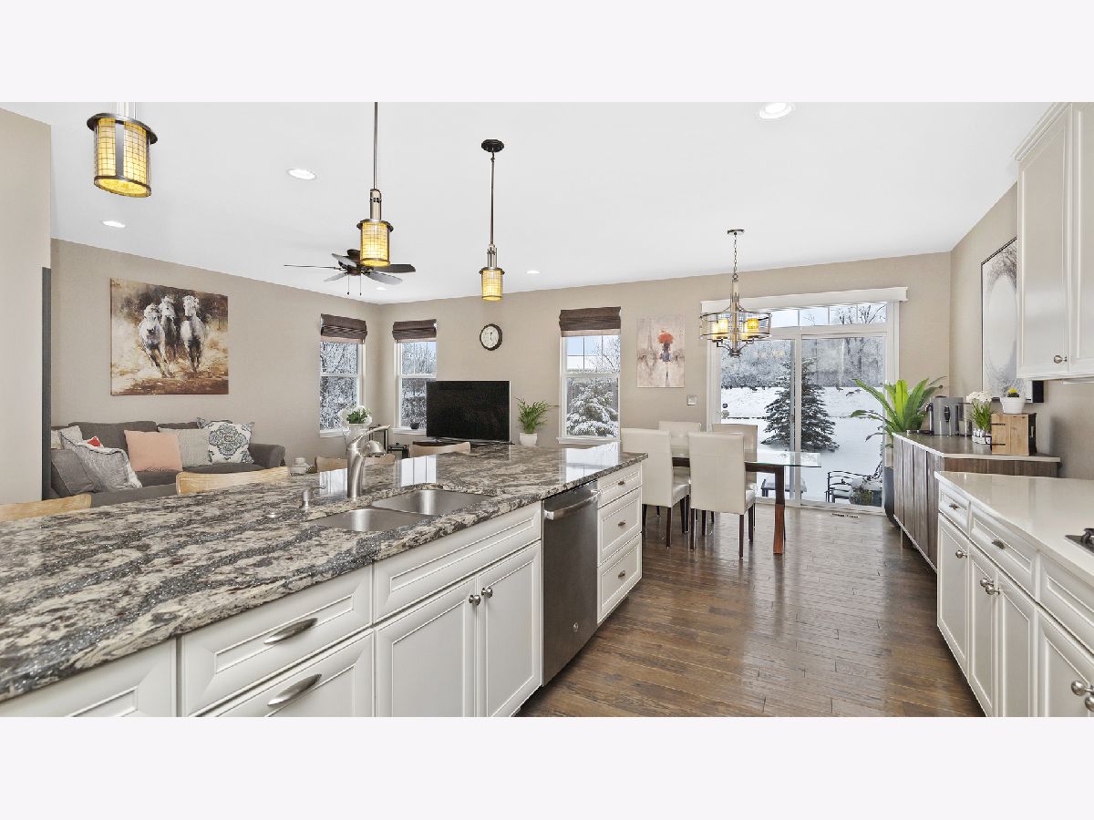 Absolutely Gorgeous Townhome in Herrick Woods. The property is super close to Naperville I-88 and Oakbrook btw! This property is on a premium lot and one of the most gorgeous Columbus models! The property has been extremely well-thought-out from the interior to the exterior. The property consists of 2 bedrooms and 3.5 bathrooms. This home has been beautifully designed with hand-scraped wood floors, a huge spacious upgraded kitchen with hands-down the most Beautiful Quartz countertops with tons of seating around the island to entertain friends and family. Great looking White 42in cabinets, all stainless steel appliance package including a double oven, GE 36 inch cooktop, large walk-in pantry, under cabinet lighting. The property has a nice Light & Bright family feel to it. The family and dining room really have the feeling that it was professionally decorated with custom shades, upgraded designer lights that makes this home a complete package. The second floor is extremely spacious! The Master ensuite has been upgraded with high-end features and a simply Delicious shower, upgraded lighting and cabinetry plus a beautiful quartz double vanity, and a gigantic gorgeous walk-in closet. The second bedroom has its own private bathroom as well and a conveniently located laundry room. You'll also enjoy your second floor bonus loft/office/den (this space can very easily be made into a third bedroom as well). The lower level basement is full and finished with a full bathroom and tons of space for entertaining, there is plenty of room for a home gym in this space perhaps, and tons of storage where the four beautiful barnyard doors are located. Lastly you'll be able to enjoy your 2.5 car garage and huge driveway with parking for at least six more cars. This property is a real GEM and we don't expect it to be on the market long...