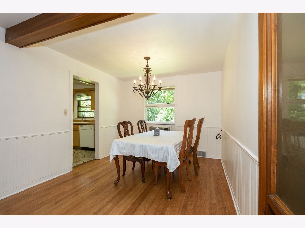 Come and enjoy your 100 X 288 estate size lot with great views and the towering oak trees provide great privacy. Make this backyard your BBQ central. This is a ranch home with 3 bedrooms, 1.5 baths and 2 car attached garage, so you never have to get of your car in the rain or snow. Enjoy the hardwood floors in two of the bedrooms and in the living room and dining room. Snuggle in front of the wood burning fireplace in the living room or fire up the wood burning stove in the four-season family room which looks out to the backyard patio. Excellent location near train, town, expressways, minutes from the Du Page County Complex, the Du Page County Fair Grounds, and Northwestern Hospital. Make an appointment to see this one!