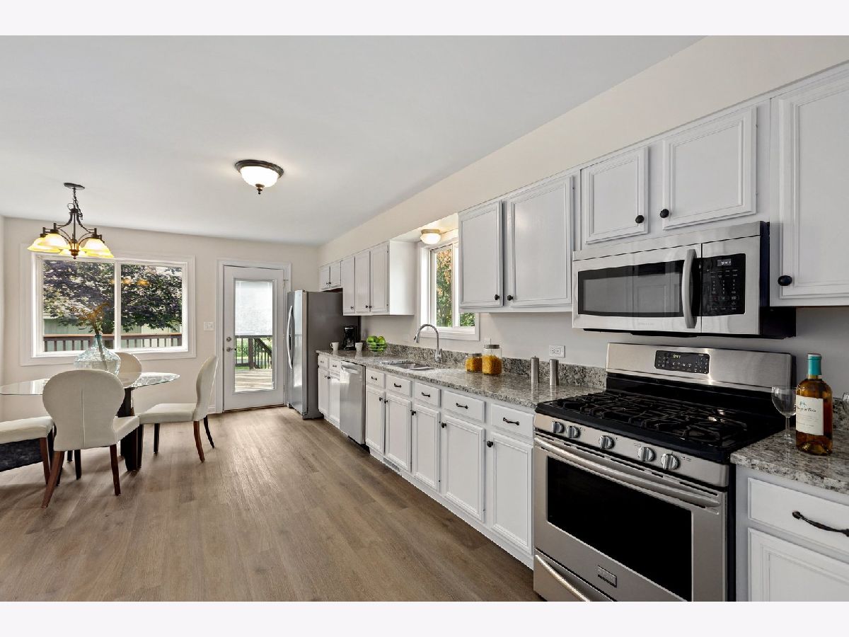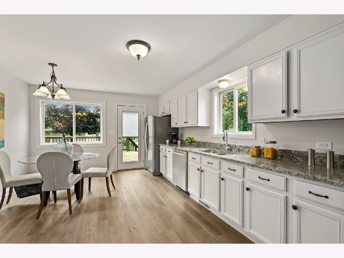 Welcome home to your newly updated 3BR, 2 Bathroom split-level home nestled in peaceful Warrenville. You are greeted by the living room that boasts vaulted ceilings, brand new carpeting and plenty of sunlight through the windows and skylights. The large eat-in kitchen offers luxury vinyl plank flooring, granite countertops, SS appliances, and plenty of cabinets for ample storage. Upstairs offers brand new carpeting throughout the 3 generously sized BRs along with an updated shared bathroom. Cozy up by the fireplace in the lower level's large family room that also boasts brand new carpeting along with an updated full bathroom, laundry and access to the crawlspace. Enjoy the outdoors on your huge deck in your manicured backyard that also features a detached 2-car garage. Quiet and peaceful yet close to schools, shopping, entertainment, forest preserves, walking/bike paths, expressways, Metra and so much more!