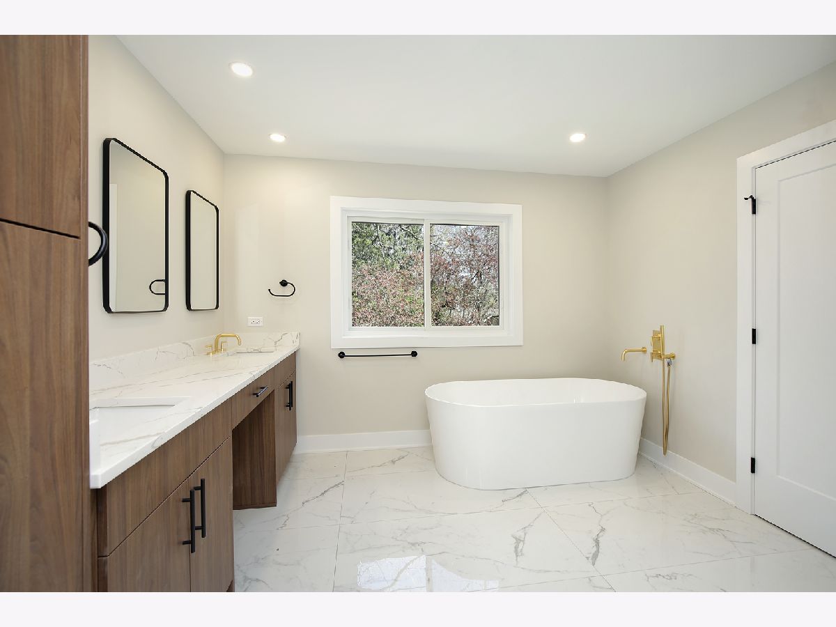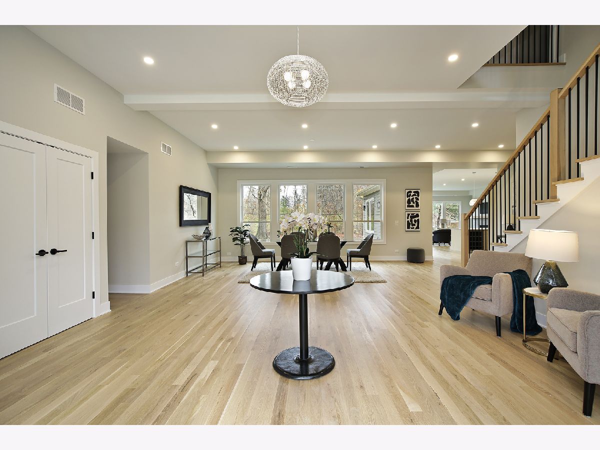 Discover unparalleled luxury in this modern architectural abode in Lincolnshire. New construction house on a beautiful secluded wooded lot. The open floor plan allows for flexibility in design and use, with high-end finishes such as white oak hardwood floors, custom tile in each bathroom, custom flat front cabinets, and quartz countertops throughout. Wonderful multi-generational home. Spacious main floor ensuite which could make a great in-law arrangement, as well as an additional office that can be used for various purposes. This stunning home has impressive windows to show off expansive views by bringing nature inside, plus all of the abundant natural light too. The home boasts 10 ft high ceilings, an expansive kitchen great room with a gas fireplace that makes a beautiful focal point, and sliding doors exit to the patio for your morning cup or night cap. Live in luxury with a laundry room on each level and large mudroom off the garage, and your own butlers pantry. The second level features 4 additional bedrooms, one of which is an ensuite as well as the primary suite and a versatile loft that can be used as an additional family room/bonus room. The spacious primary suite includes it's own sitting area, two large walk-in closets, luxurious bath with soaker tub, and walk-in shower. With its blend of amenities and natural surroundings, this new construction home offers the best of both worlds. Award-winning nationally recognized school district! All showings must be accompanied by Listing agent.
