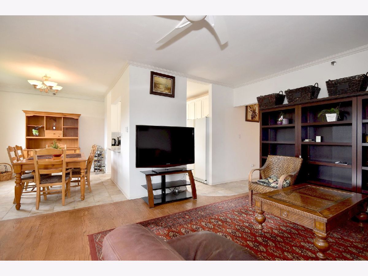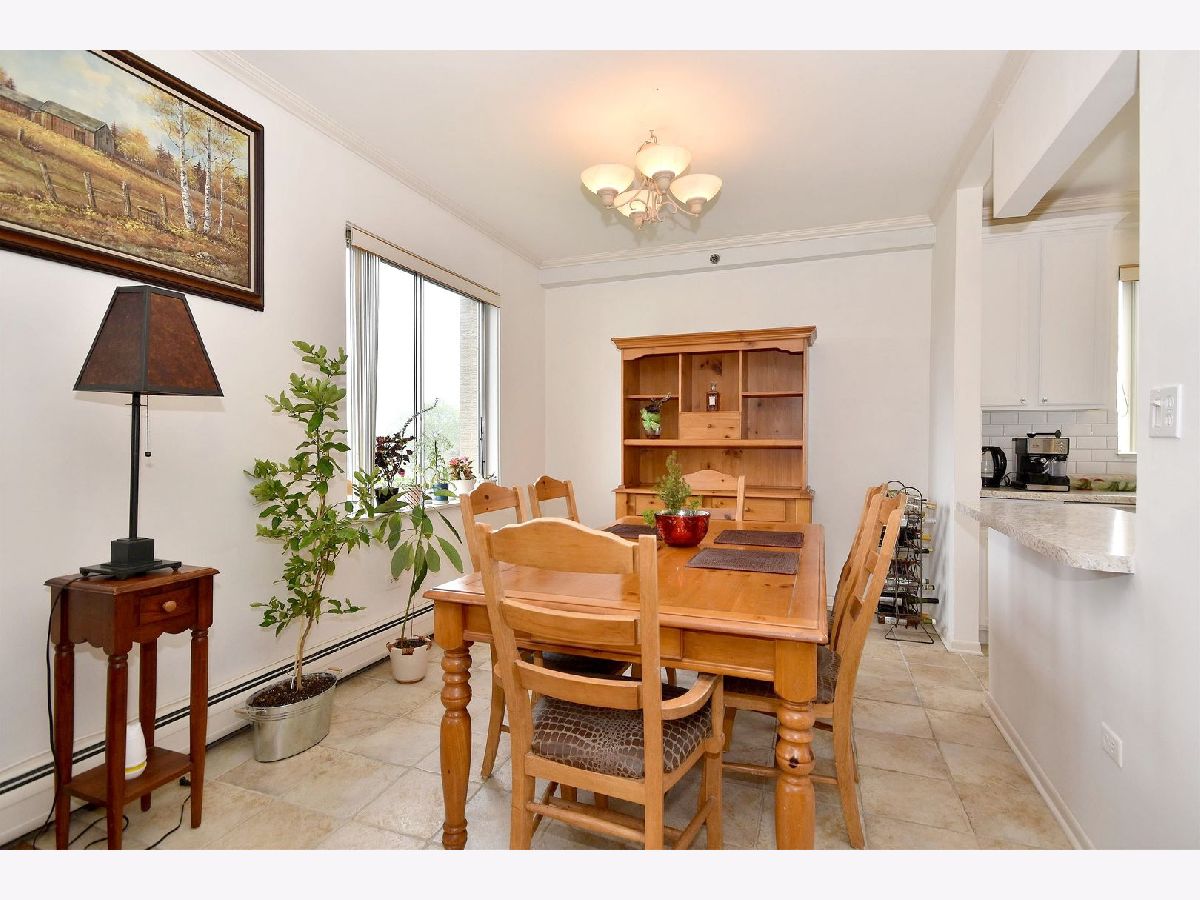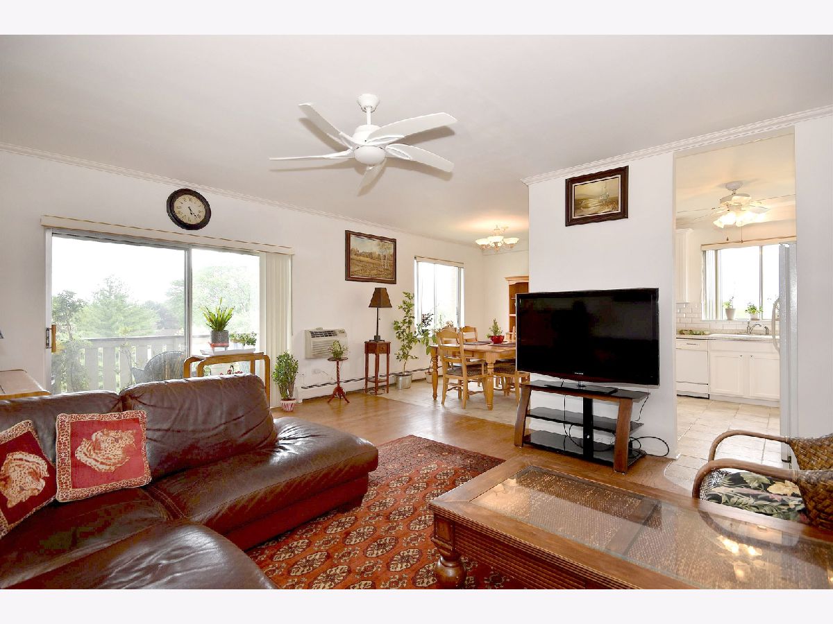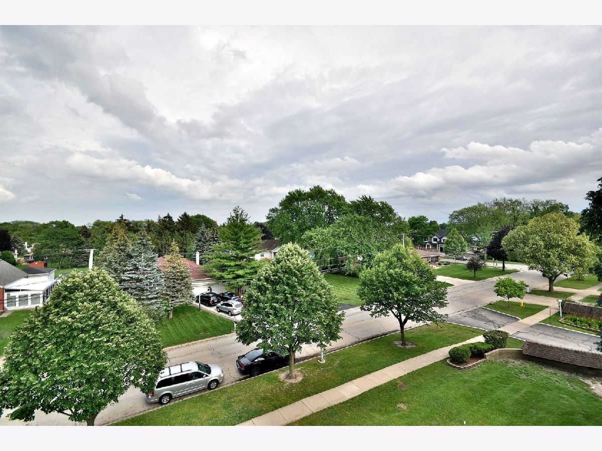Lovely, bright, neutral, 2-bedroom & 2-full bath corner unit on the top floor of Mt Prospect's Westgate Condominiums, located in great subdivision in an area of single family homes. This spacious unit offers south and east exposures, outstanding views from every window and the balcony at a tree-top level. Open floor plan, generous room sizes and large closets provide plenty of storage. Unit futures hardwood floors and crown moldings. This unit offers a nice kitchen with lots of white 42" cabinets, breakfast bar and ceramic floor, formal dining room and master suite with two large closets, dressing area and full master bath. Building features elevator, secure foyer, assigned parking, private storage and laundry on the same floor. Assessment includes heat, gas, water, common insurance, and admission to the pool and clubhouse. Well run, self-managed complex is fully fire sprinkled. Many renovations done recently: hallways, balconies, parking, new roof 2020 and no special assessment was needed. Major department stores, commercial plazas, LA Fitness and parks are only a short distance away. Excellent school district with John Hersey High School!