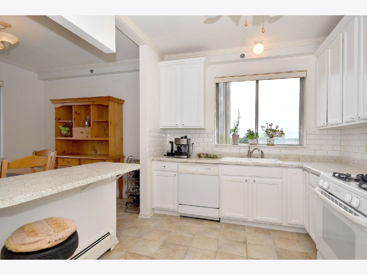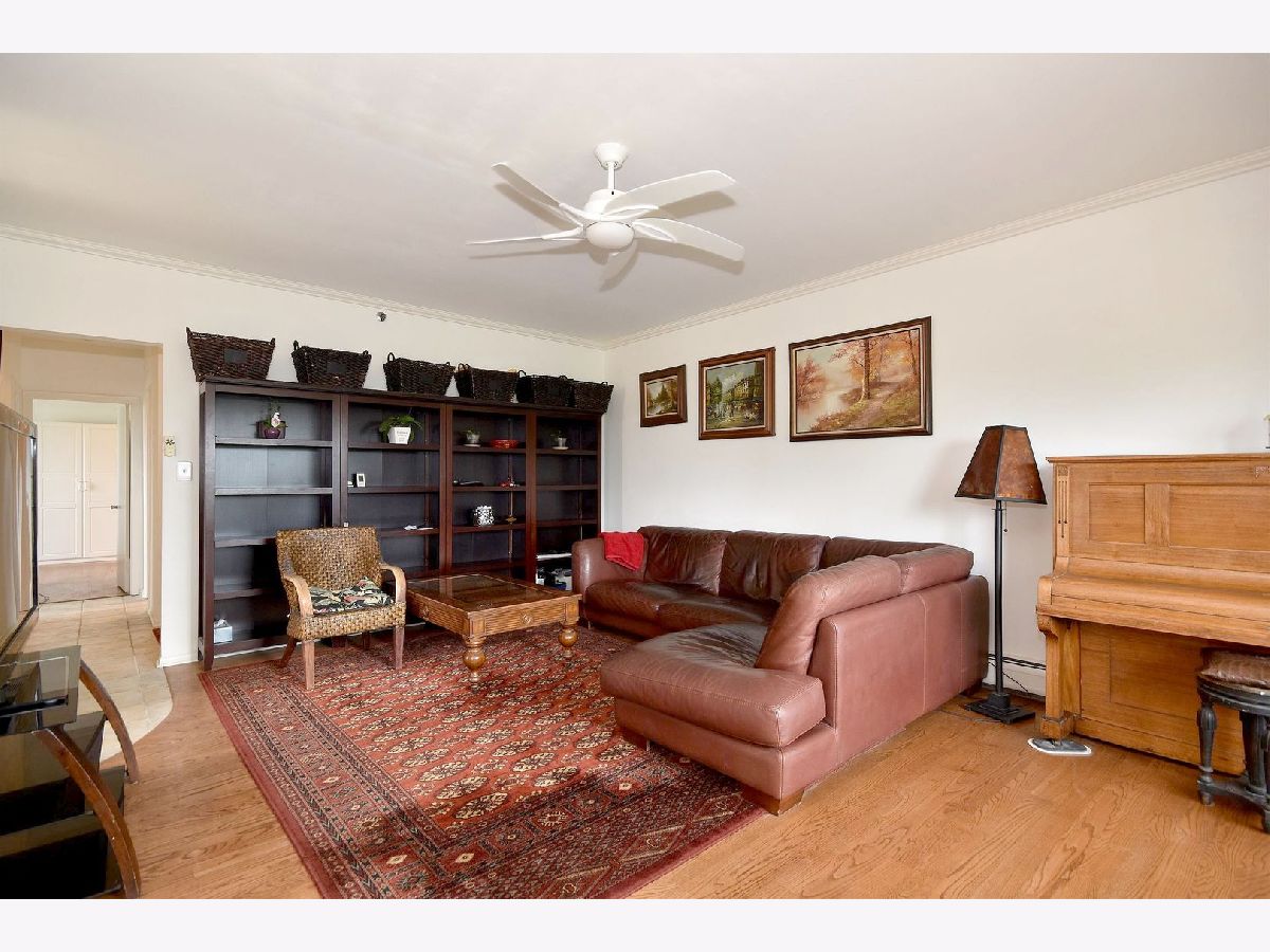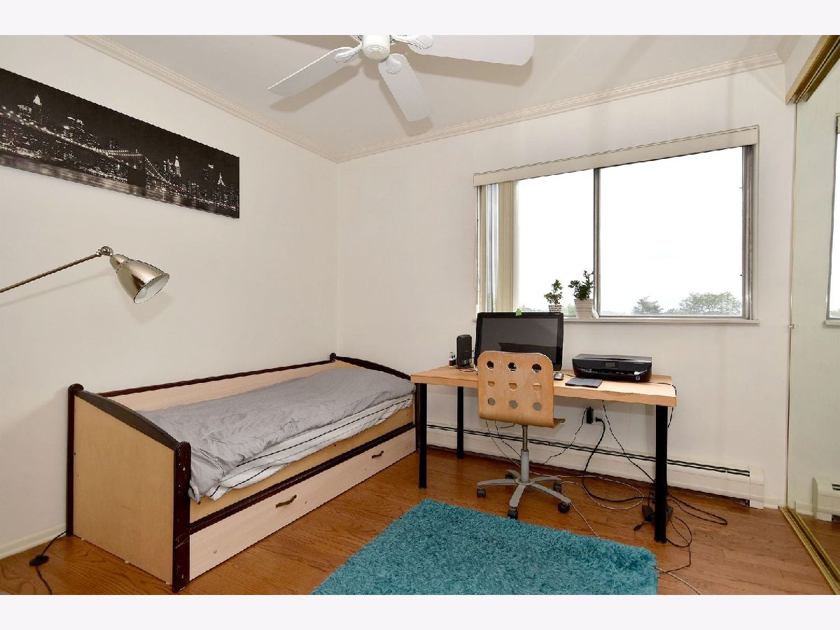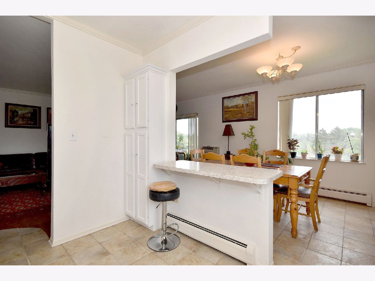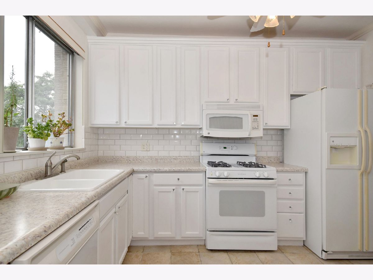 Lovely, bright, neutral, 2-bedroom & 2-full bath corner unit on the top floor of Mt Prospect's Westgate Condominiums, located in great subdivision in an area of single family homes. This spacious unit offers south and east exposures, outstanding views from every window and the balcony at a tree-top level. Open floor plan, generous room sizes and large closets provide plenty of storage. Unit futures hardwood floors and crown moldings. This unit offers a nice kitchen with lots of white 42" cabinets, breakfast bar and ceramic floor, formal dining room and master suite with two large closets, dressing area and full master bath. Building features elevator, secure foyer, assigned parking, private storage and laundry on the same floor. Assessment includes heat, gas, water, common insurance, and admission to the pool and clubhouse. Well run, self-managed complex is fully fire sprinkled. Many renovations done recently: hallways, balconies, parking, new roof 2020 and no special assessment was needed. Major department stores, commercial plazas, LA Fitness and parks are only a short distance away. Excellent school district with John Hersey High School!