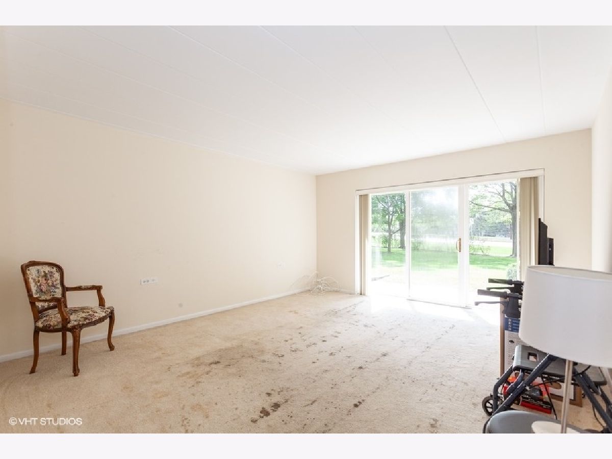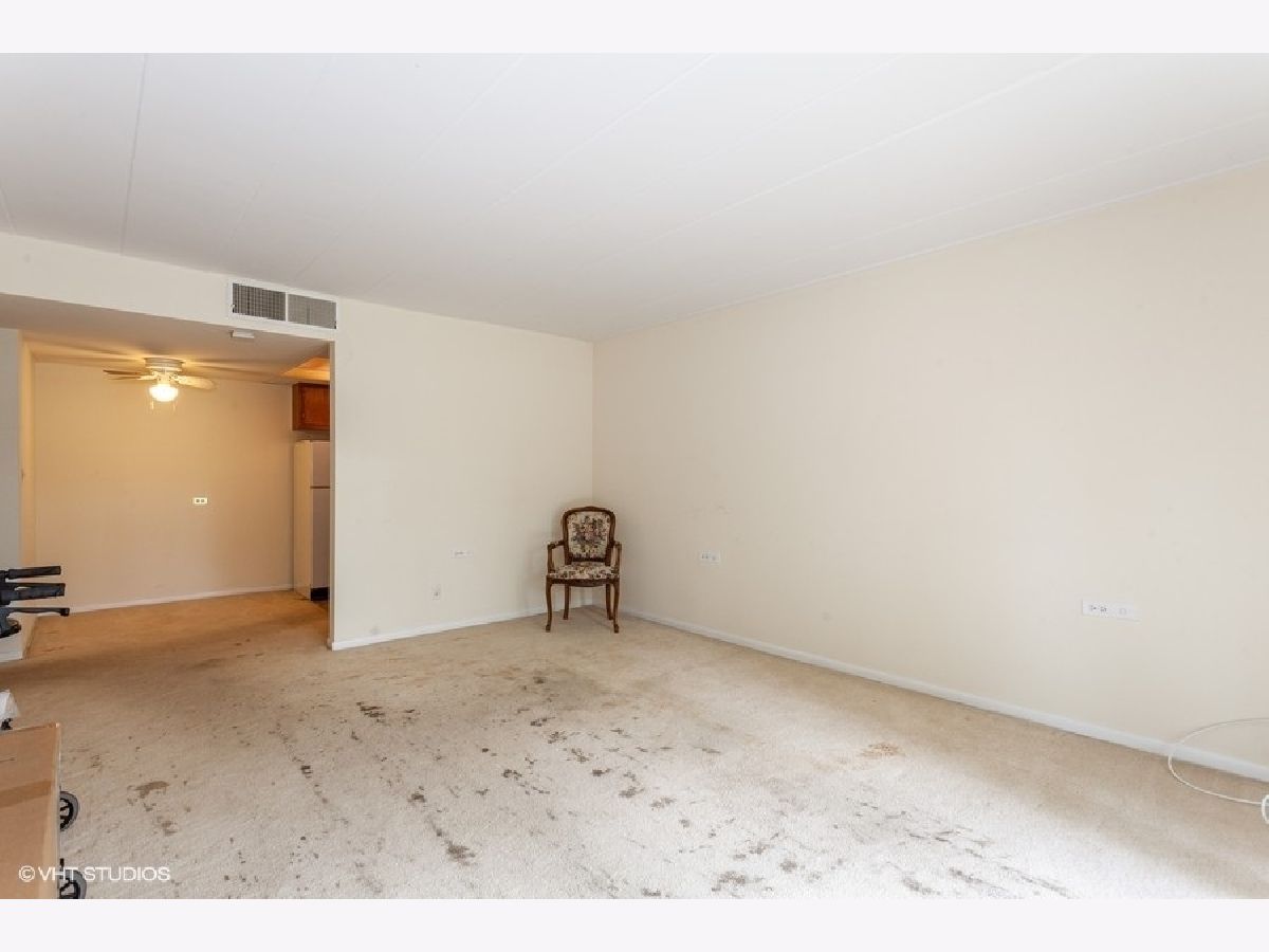 Accessible, ground-level condo in 55+ community! One-car garage (great location, #6) is available with the purchase of the condo, for an additional $9000 plus a yearly $200 association fee! Close to major roadways, train, and shopping! Spacious light-filled living room just off dining room and kitchen! Large & comfortable bedroom has huge double closet! Lovely concrete patio through sliding glass doors with beautiful grassy view. Very quiet building. Coin laundry just 18 steps away and convenient storage locker on same level! Beautiful lobby areas for meeting your guests, also fitness room, library, party area and game room! Elevator in building. Parking front and back. 100% owner occupied, no FHA. No pets. Stone's throw to entrance for I-355. Also close to I-88 and I-55, Belmont Metra Station, and shopping! $2000 allowed for your new carpet. Great value for condo with garage available if you desire for additional 9000. Sold As Is.