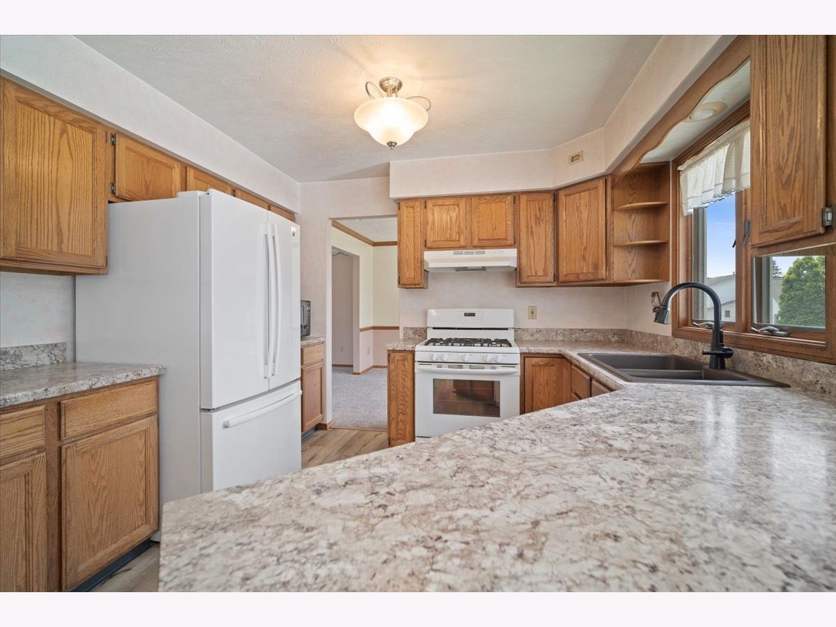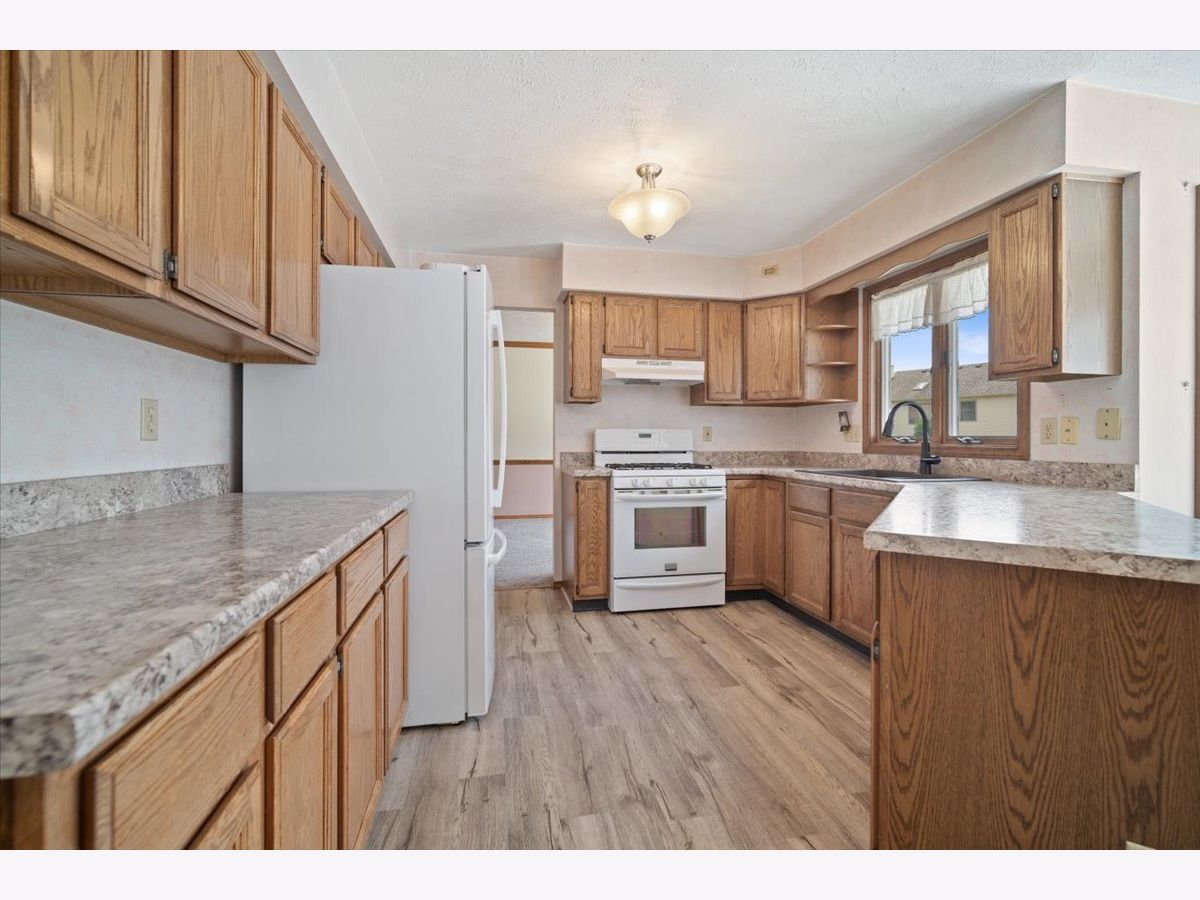 Check out this charming 4-bedroom, 2.5-bath home in the highly sought-after Eagle Ridge Subdivision. This well-maintained home offers a thoughtful layout with main floor laundry, family room, formal living room, a separate dining room for special occasions, and a spacious eat-in kitchen with tons of cabinet space, new countertops, and a new sink (2018). All appliances are included, making it move-in ready! The large family room features a gas fireplace, ideal for cozy evenings. Upstairs, you'll find a master suite with a private en-suite bathroom and three additional bedrooms with ample closet space. A full bath completes the second floor. Recent updates enhance both comfort and efficiency, including new carpet and vinyl flooring on the main floor (2017), a high-efficiency HVAC system (2018), and a new water heater (2022). The unfinished basement offers significant storage space and potential for future finishing. The fenced backyard is a highlight, featuring a deck for outdoor dining and a basketball court for friendly games. Plus, the yard extends beyond the fence, offering extra space for gardening or play. Conveniently located near Northpoint Elementary School and close to parks, shopping, and dining options. Don't wait-this gem won't last long!