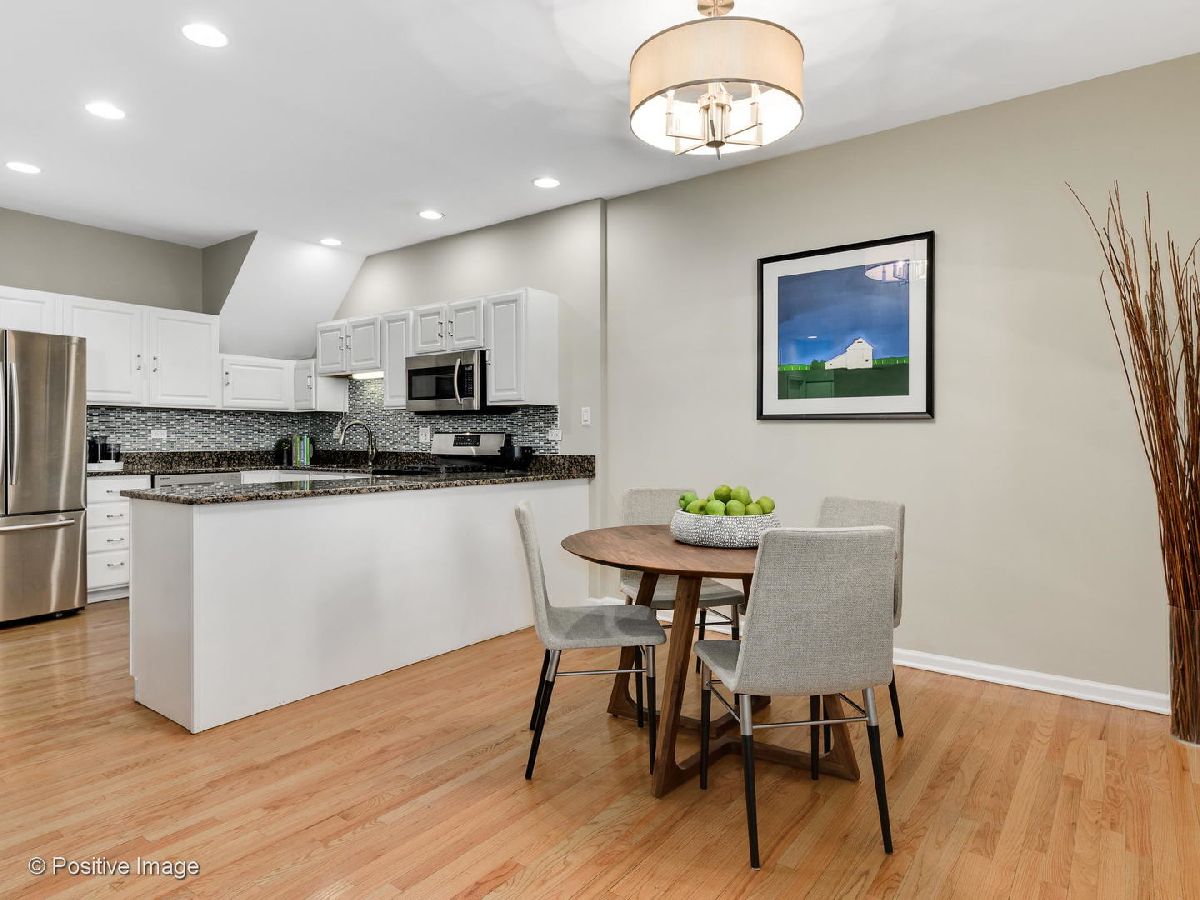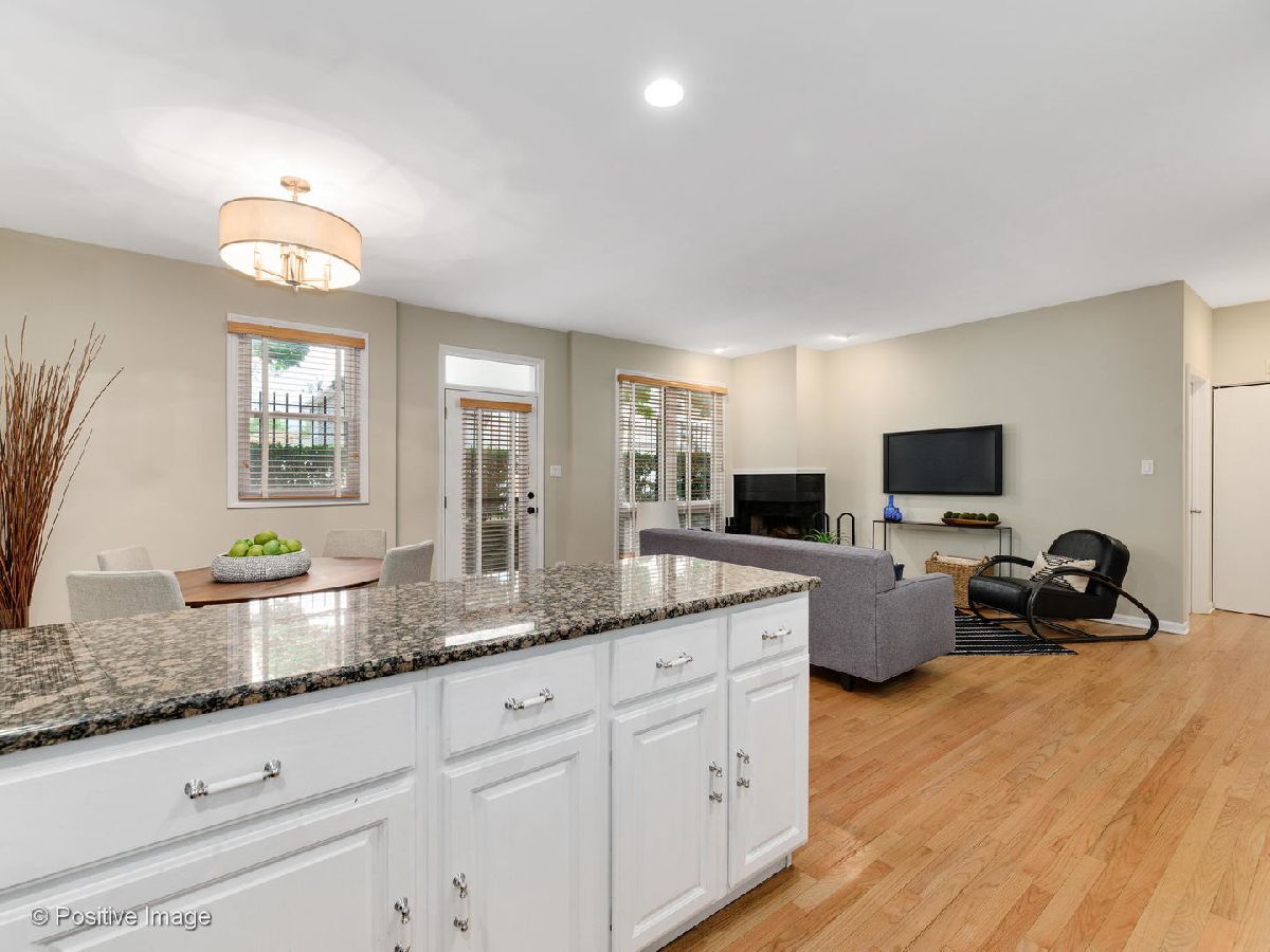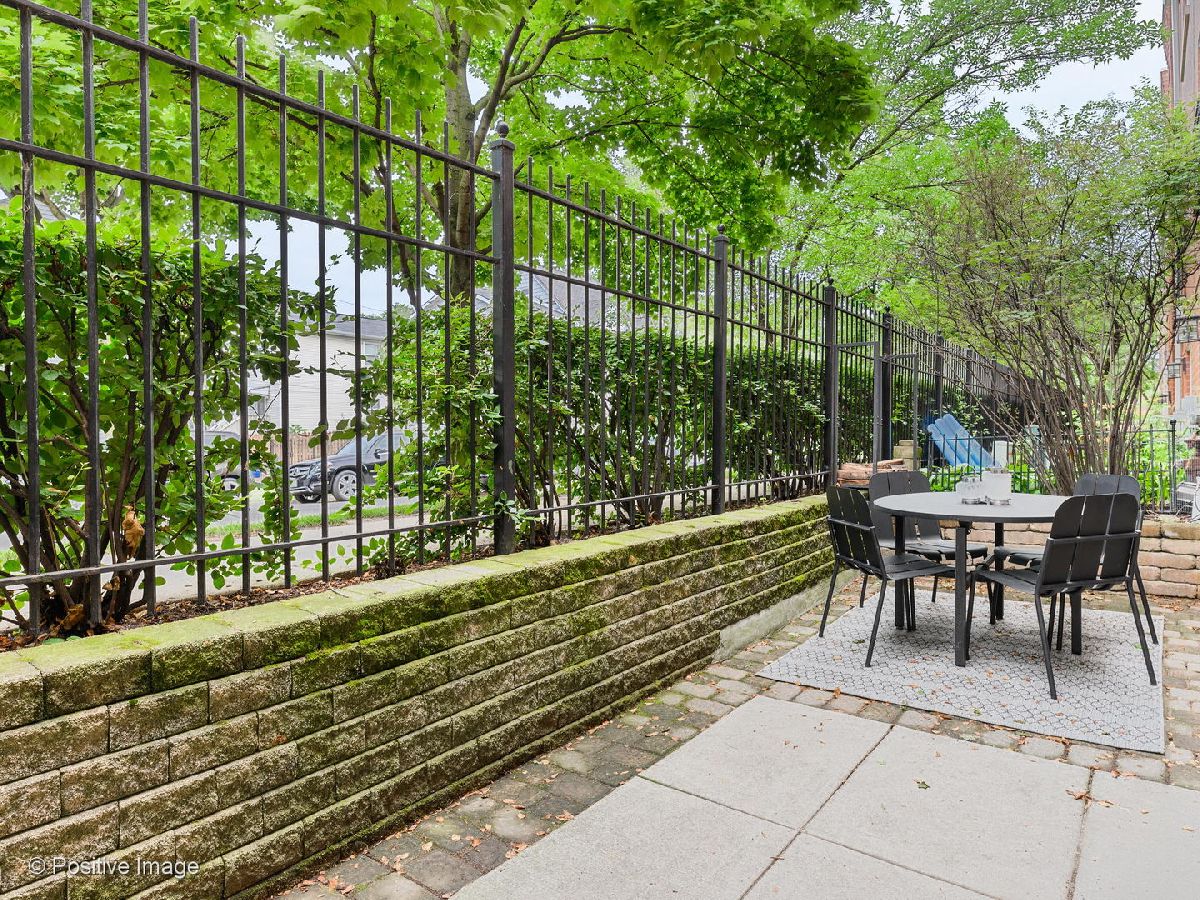 Oversized 1BR/1BA in the popular Landmark Village complex! Refinished hardwood floors run throughout the main areas with newer carpeting in the bedroom. Classic white kitchen with replaced stainless steel appliances, granite counter-tops, and large breakfast bar. Roomy living space with definitive dining space and corner wood-burning fireplace. Spacious bedroom with sizable walk-in closet. New gas forced air furnace and central air conditioning. In-unit laundry and hard-to-find attached 1-car garage. Private fenced area with personal entrance and concrete patio with gas hook-up; perfect setup for your dog and entertaining. Assessments include expanded cable and hi-speed internet. Amazing and tranquil location within walking distance to public transportation, grocery stores, restaurants, parks, Roscoe Village; with easy expressway access.