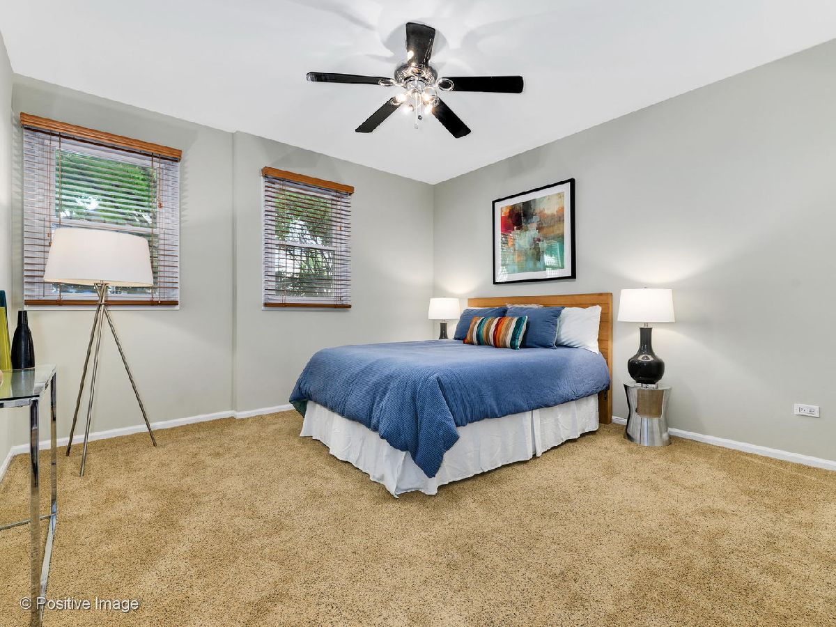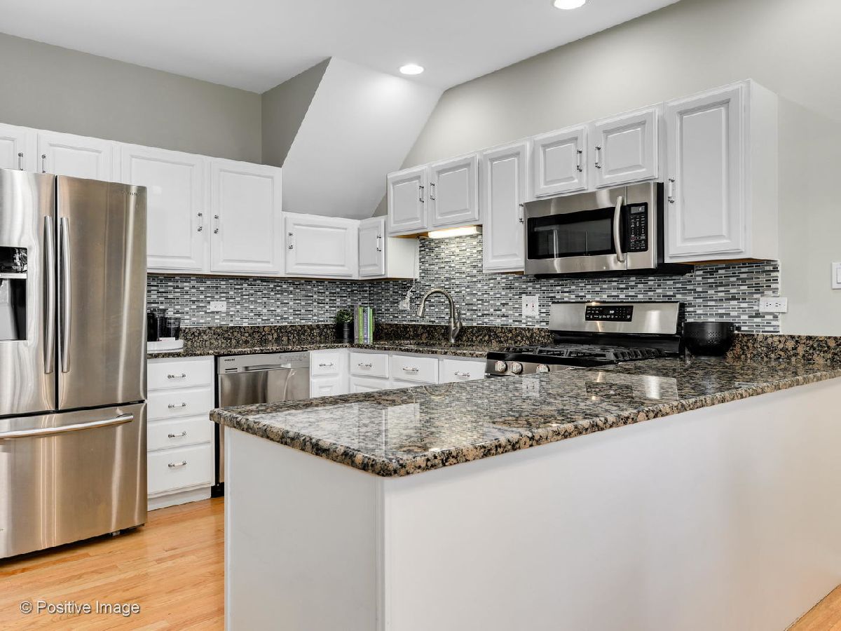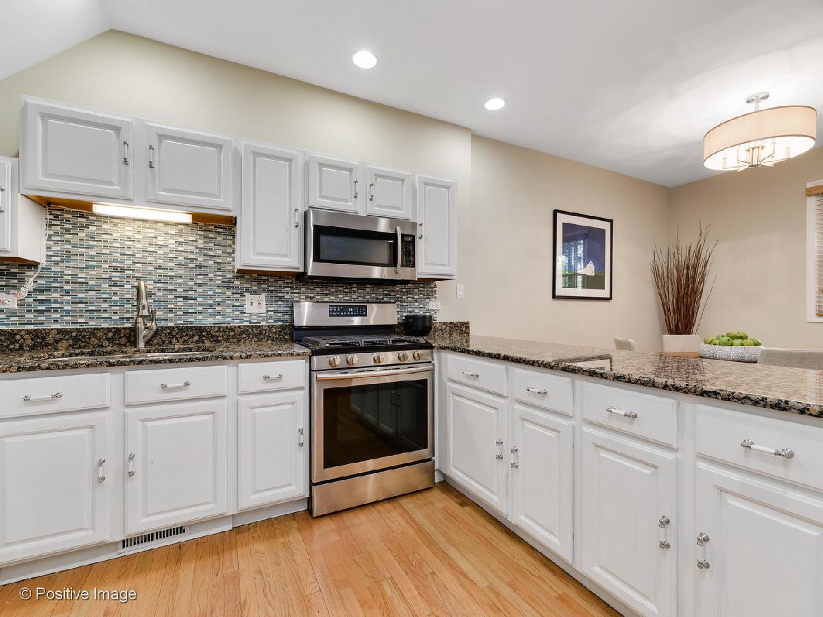 Oversized 1BR/1BA in the popular Landmark Village complex! Refinished hardwood floors run throughout the main areas with newer carpeting in the bedroom. Classic white kitchen with replaced stainless steel appliances, granite counter-tops, and large breakfast bar. Roomy living space with definitive dining space and corner wood-burning fireplace. Spacious bedroom with sizable walk-in closet. New gas forced air furnace and central air conditioning. In-unit laundry and hard-to-find attached 1-car garage. Private fenced area with personal entrance and concrete patio with gas hook-up; perfect setup for your dog and entertaining. Assessments include expanded cable and hi-speed internet. Amazing and tranquil location within walking distance to public transportation, grocery stores, restaurants, parks, Roscoe Village; with easy expressway access.