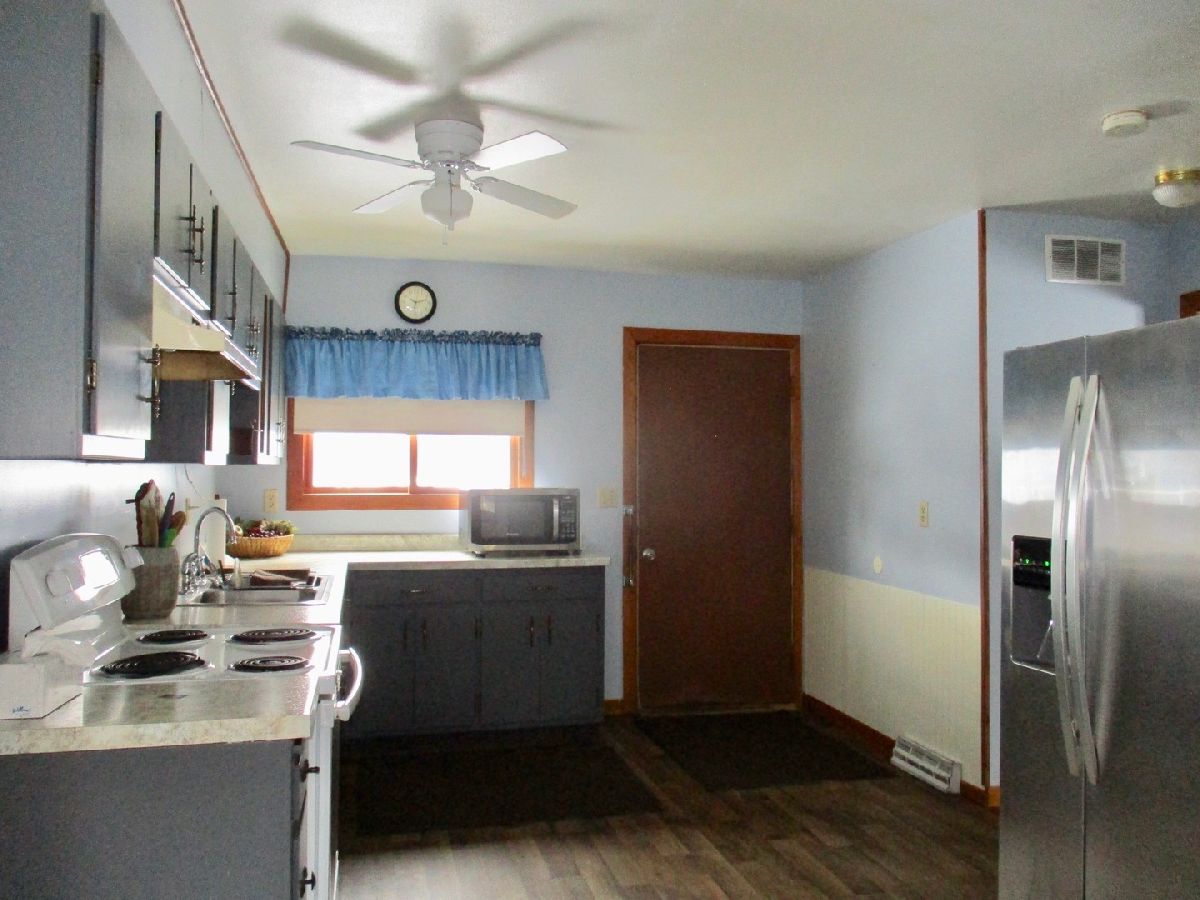 Home with good bones. Structurally sound. One Bedroom, one Bath. Three large rooms boasting a total of 864 sq ft. Roomy Kitchen, all appliances stay. First floor Laundry with washer and dryer. Double paned windows keeping the cold out, heat in. Basement is a 4 ft high crawl space, dry, ready for items you may like to store. Well insulated. Fenced yard and large well-built shed to store lawn mower and snow blower, etc. Great starter home or investment property. Sold "As Is". Wheelchair/Handicap