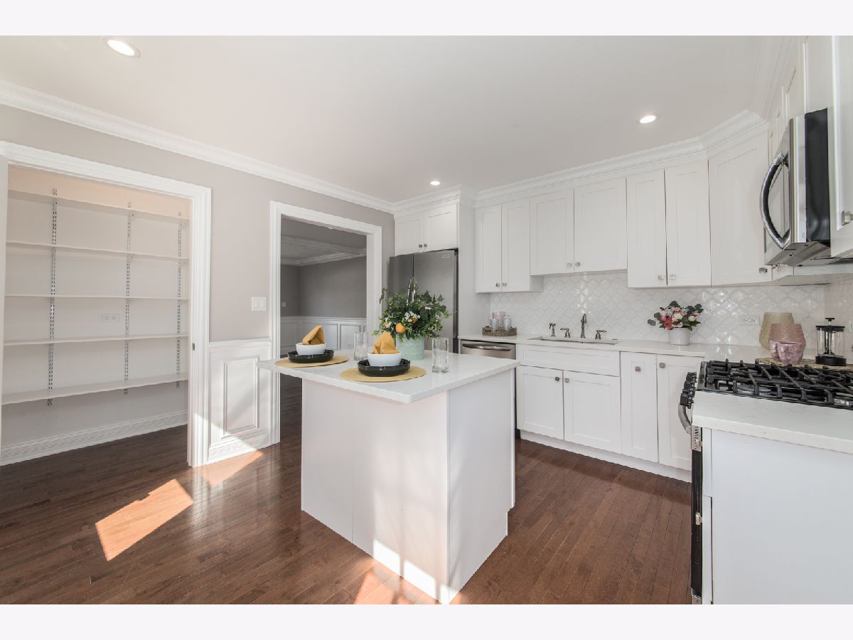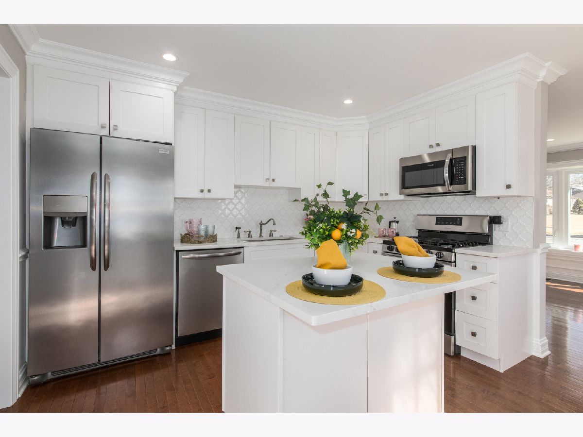 The wait is over! This stunning renovated ranch with exquisite finishes is now available. Be wowed as you enter the Living Room and notice the beautiful bay window allowing for lots of natural light, attractive white wainscoting, gleaming hardwood floors and freshly painted walls. The kitchen nicely appointed off the Living Room is bright and beautiful boasting custom white shaker style cabinets, stainless steel appliances, quartz countertops and an elegant white backsplash. The island is not only pretty but functional allowing for additional storage and seating. To suffice all your "must haves" is a large pantry. As you enter the combined Family Room/Dining Room, be impressed by the continuation of the wainscoting and striking coffered ceiling. The beautiful sliding door leading to the patio and fully fenced in large backyard will be your summer haven. The large 2.5 car attached garage with epoxy floor has entrances into your yard and your family room for extra convenience and offers an extra storage room in the back of the garage for your bikes, tools and lawn equipment. Many improvements to the home: Roof (2019), Fence (2019), W/D (2019), Epoxy Floor (2019), to list a few. This home is in a great area of Rolling Meadows. One block to Kimball Hill Elementary School, two Blocks to Rolling Meadows Shopping Center featuring Jewel Osco, Restaurants and shopping. Conveniently located 1.3 miles to Il 53, (Easy access to the interstate), eighteen minute drive to O'Hare, 8 minute drive to Woodfield, 5 minute drive to Downtown Arlington Heights. This is the home for you!