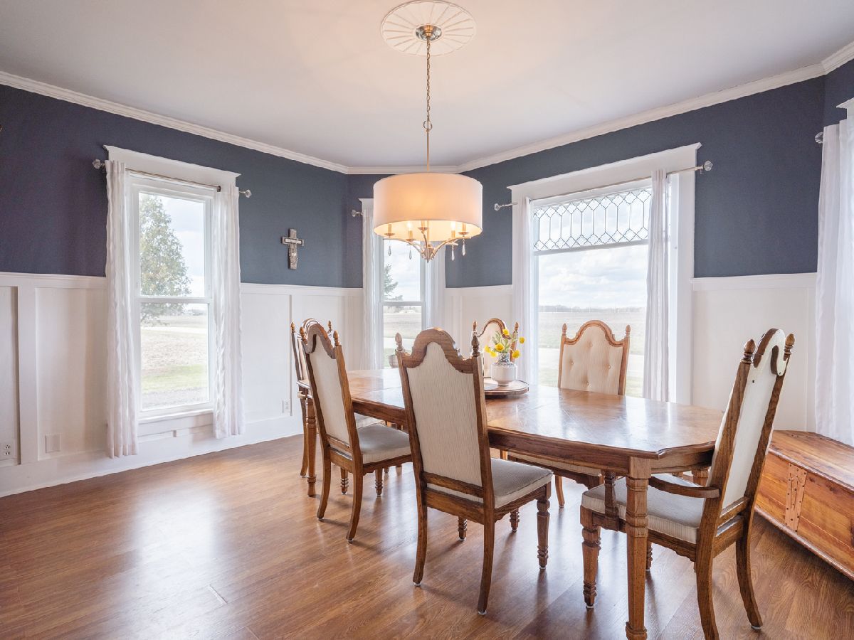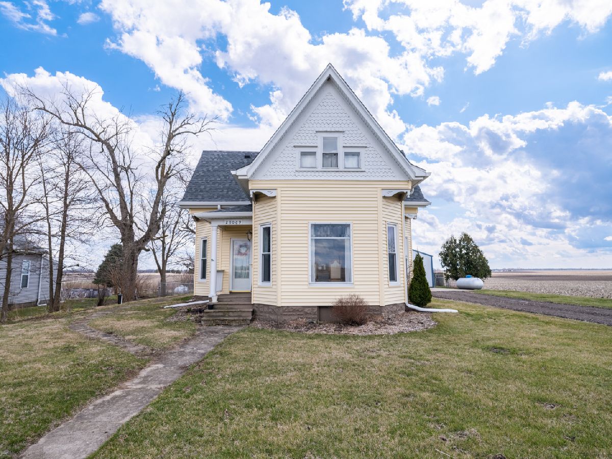 Looking for country living but close to...everything? Look no further! Built in 1909, this main floor living farmhouse-style home has a mix of old charm with modern updates, and looks like a real doll-house! Step inside from the back door into a great mud room that leads to a large laundry space. Cute country kitchen with new flooring, moveable island with seating and comes with majority stainless steel appliances. Living room offers nice natural light and a functional pellet/woodburning stove to help on those chilly IL nights. Gorgeous formal dining space with french doors, original lead-glass window and wainscoting. Primary bedroom has a private 1/2 bath. Adjoining room to primary has so many options; nursery, additional bedroom, office, large closet. So much potential on the upper floor with already having two generous sized bedrooms but room to expand in unfinished attic space. Enjoy gorgeous countryside views surrounding the home from the patio and fenced yard. Oversized 2-stall heated garage with new door opener. Easy access to large cellar/basement from exterior. Roof, siding and gutters 2017. New well head, well plumbing (to house and in basement), sump pump, added insulation. Within minutes to I-155, Downtown Peoria or Bloomington. Tremont address, Deer Creek-Mackinaw Schools. Schedule your showing, today!