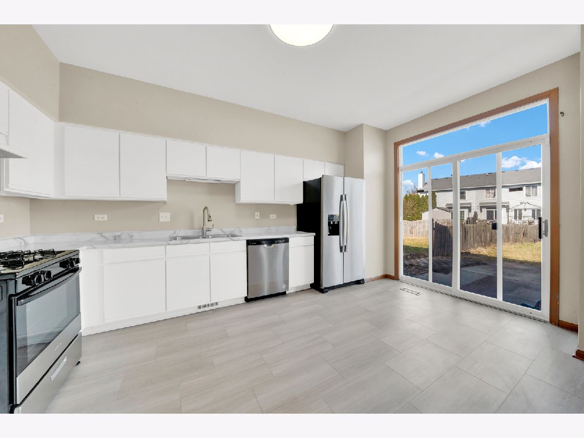 Welcome to 2808 River Bend Lane in the heart of Plainfield! This freshly updated 3-bedroom, 2.5-bath half duplex offers 1,668 sq ft of stylish living space on a spacious 5,657 sq ft lot. Step into a bright, open layout with new flooring, fresh neutral paint, and soaring vaulted ceilings that add a sense of grandeur to the living area. The updated kitchen shines with new stainless appliances and a seamless transition to the dining space overlooking the expansive, fully fenced backyard-perfect for entertaining, gardening, or outdoor play. Upstairs, enjoy a truly oversized main suite complete with private bath and convenient second-floor laundry. Located near top-rated schools, parks, shopping, and dining, this move-in ready home checks every box!
