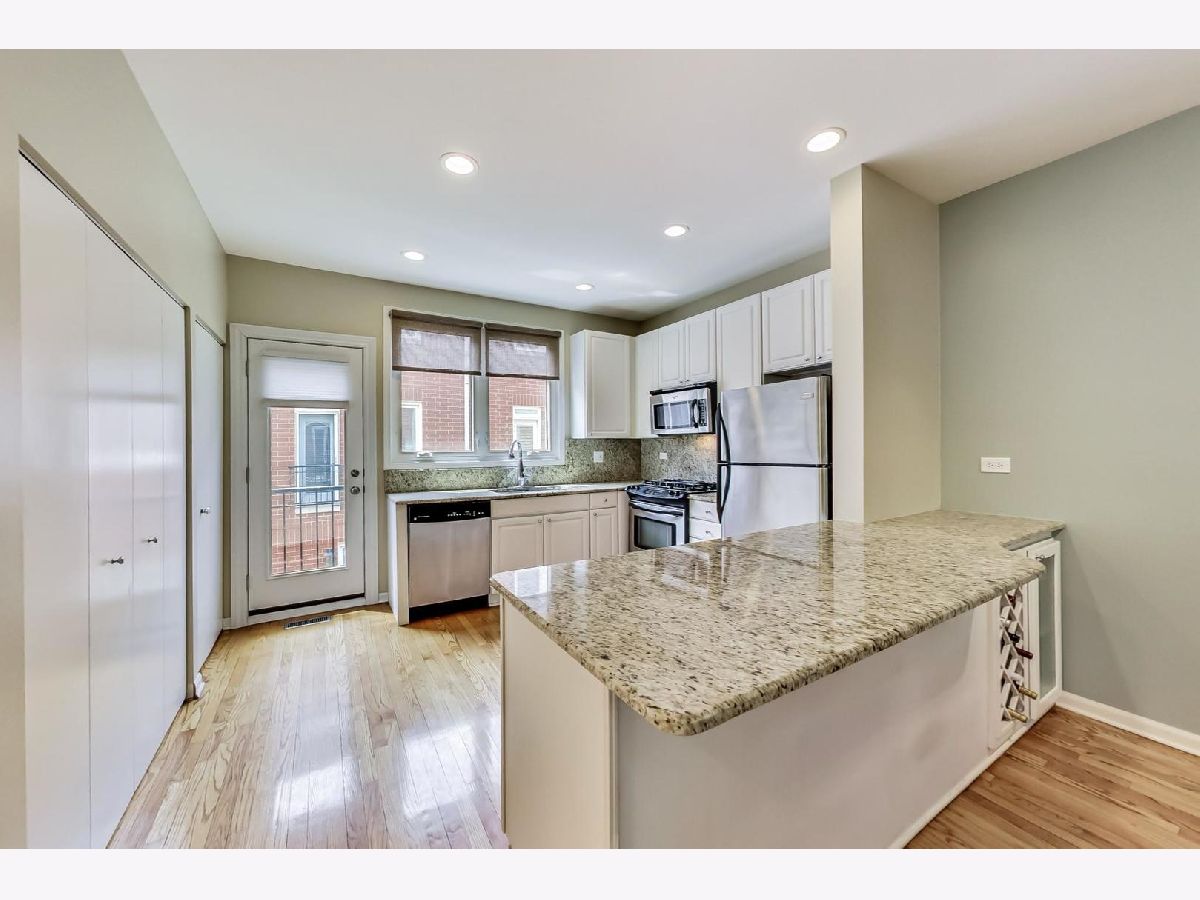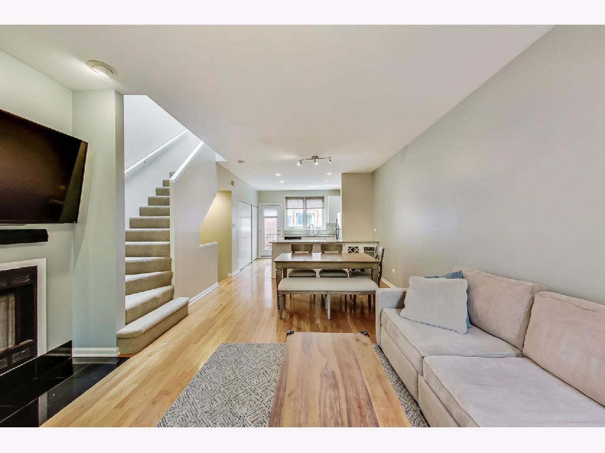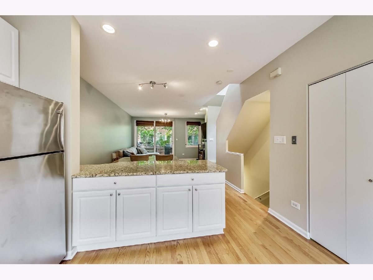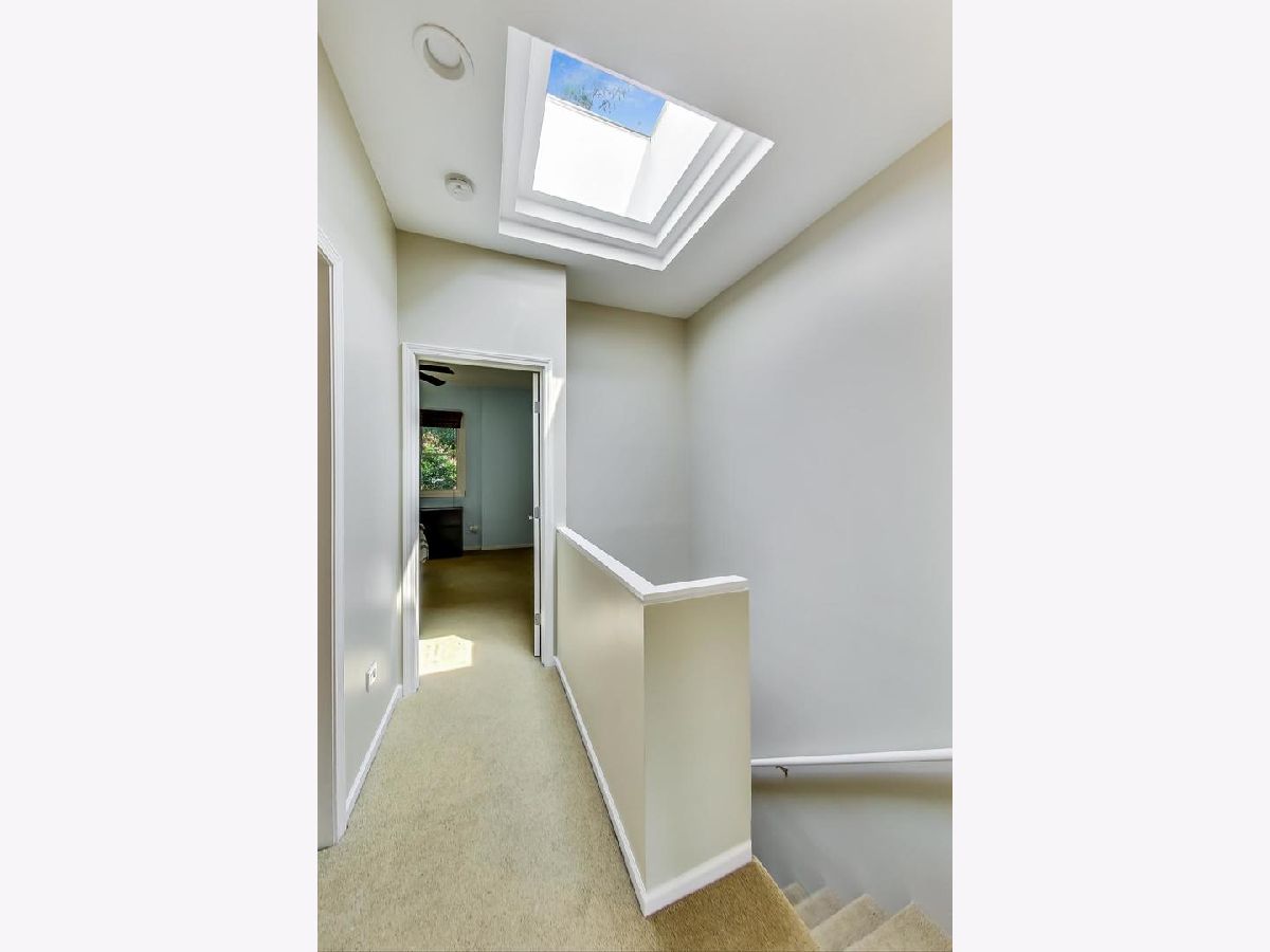This beautiful town home is an absolute must-see! It's part of Landmark Village, an exclusive gated community that can no longer be built in Chicago. Steps to Whole Foods, Midtown Athletic Club, and all the restaurants shopping and entertainment in Lincoln Park and Lake View! The ground level features an attached garage, en suite bathroom, and desk space perfect for those working from home. On the main floor, glass doors bathe the living room in light while allowing convenient access to the front balcony (with brand new Trex Decking) with new hardwood flooring throughout. The updated kitchen is equipped with a full suite of stainless steel appliances, perfect for hosting large dinner parties. The expansive pantry space allows for extra storage space while maintaining the home's clean, modern appearance. The two bedrooms are located on the top floor and feature carpeting, a skylight over the staircase, and a full bathroom with a double vanity and new tile, tub, and fixtures. Sellers will be leaving the 60" mounted TV and sound bar along with Nest thermostat.