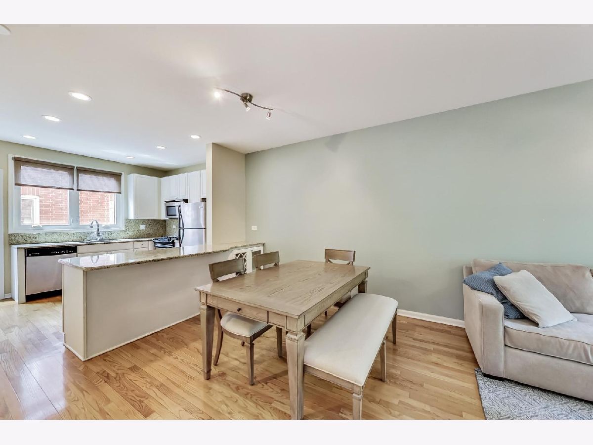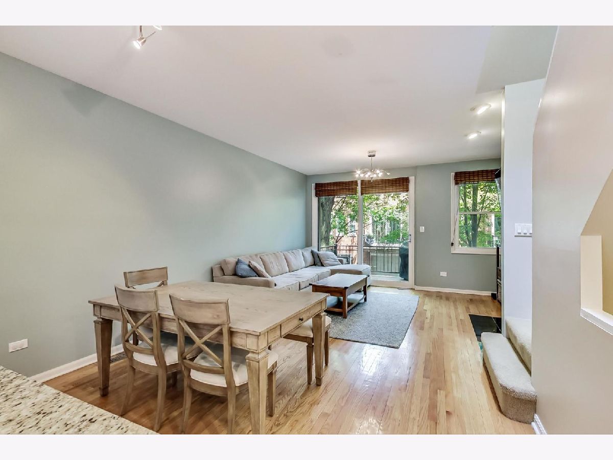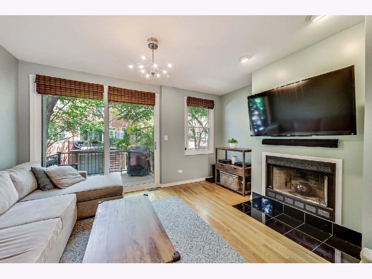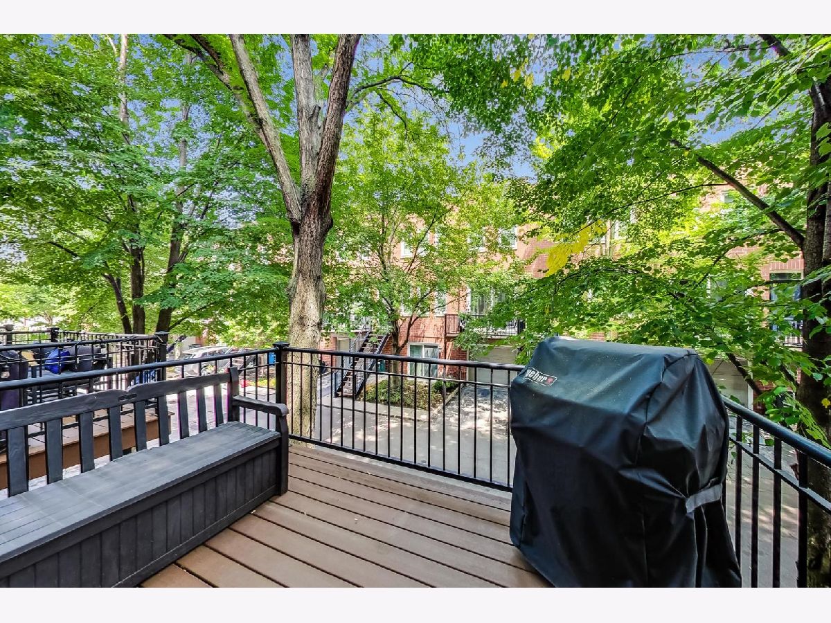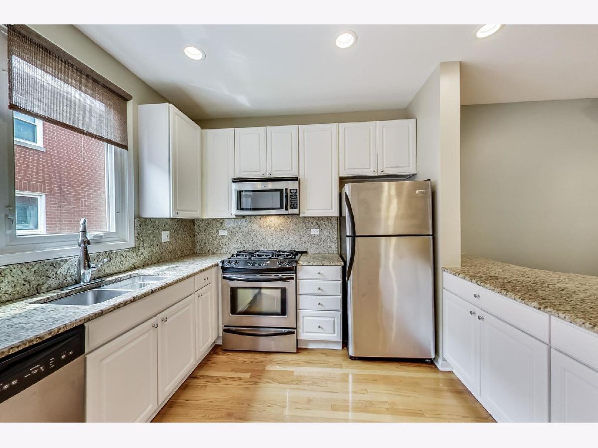 This beautiful town home is an absolute must-see! It's part of Landmark Village, an exclusive gated community that can no longer be built in Chicago. Steps to Whole Foods, Midtown Athletic Club, and all the restaurants shopping and entertainment in Lincoln Park and Lake View! The ground level features an attached garage, en suite bathroom, and desk space perfect for those working from home. On the main floor, glass doors bathe the living room in light while allowing convenient access to the front balcony (with brand new Trex Decking) with new hardwood flooring throughout. The updated kitchen is equipped with a full suite of stainless steel appliances, perfect for hosting large dinner parties. The expansive pantry space allows for extra storage space while maintaining the home's clean, modern appearance. The two bedrooms are located on the top floor and feature carpeting, a skylight over the staircase, and a full bathroom with a double vanity and new tile, tub, and fixtures. Sellers will be leaving the 60" mounted TV and sound bar along with Nest thermostat.