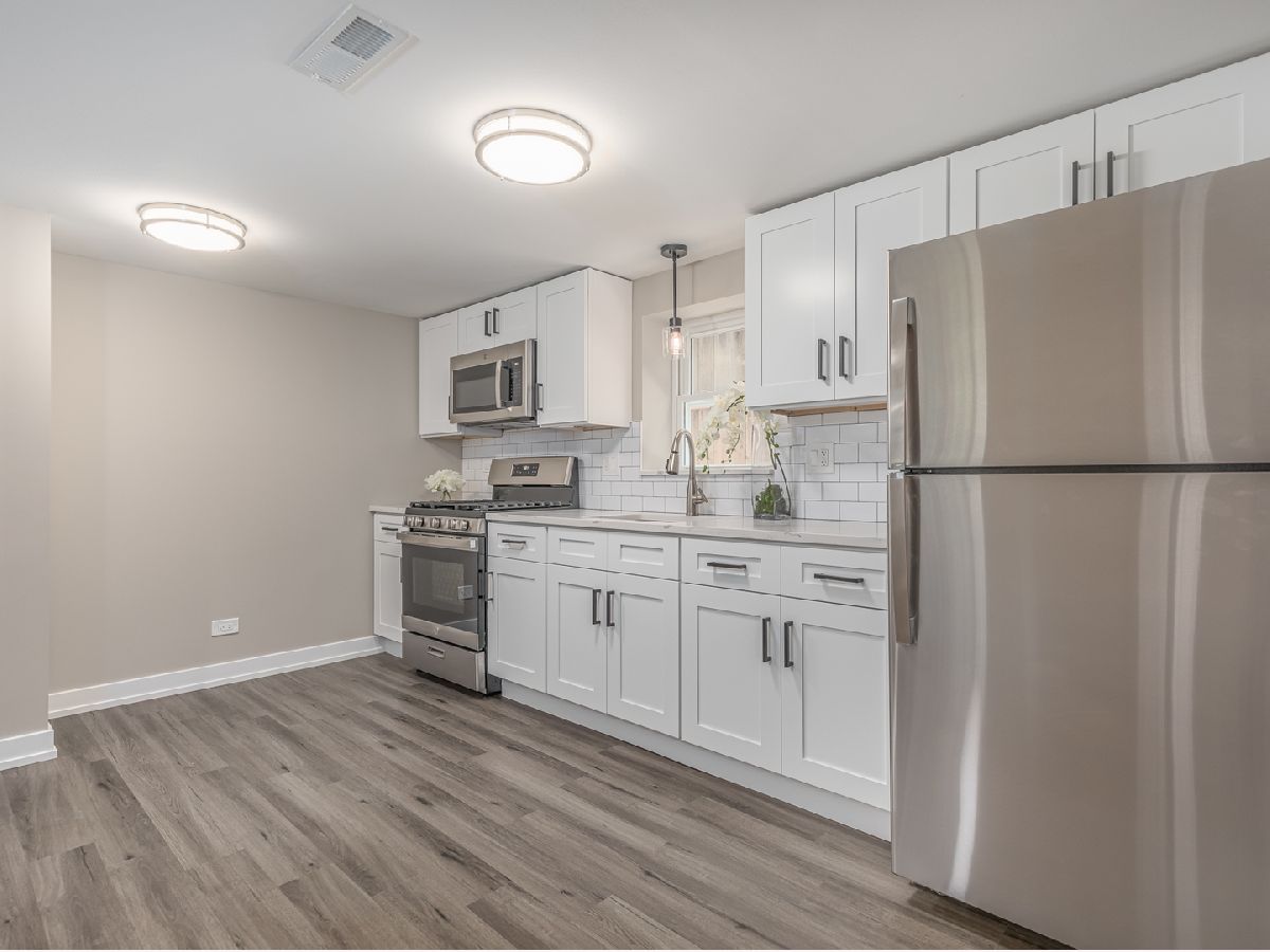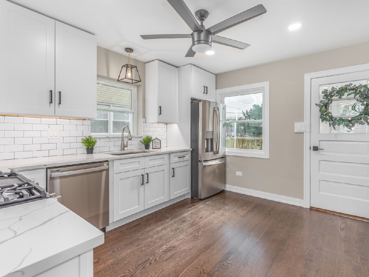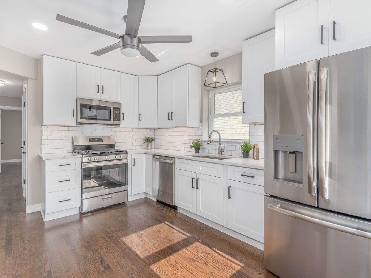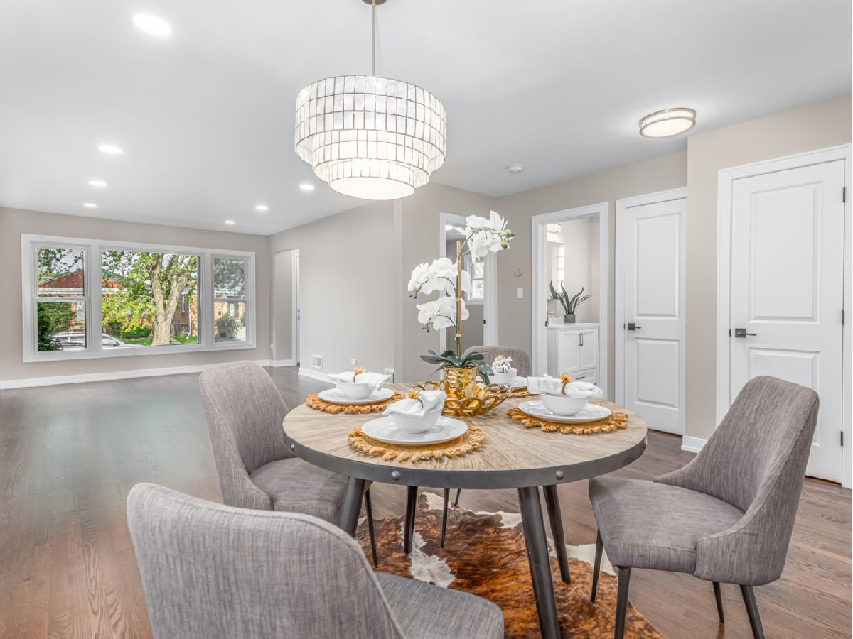 Amazing high end total rehabbed two-flat in desirable Elmwood Park!!! Great investment opportunity ideal for live-in owner to have a side source of income! The entire building has undergone a transformation with modern kitchen and bathrooms with high-end fixtures, elegant lighting, and porcelain tiles. Gleaming hardwood floors, neutral tones throughout, New windows and doors, New plumbing, electric, New HVAC system, New water heaters. Each unit has separate electric, heat, gas. Top floor unit features; 2 bedrooms, 1 bath, open concept living and dinning area, impressive kitchen with classic and sleek white shaker cabinetry, quartz countertops and high-end GE stainless steel appliances, chic subway tile backsplash. Second unit is perfect for extra income, it offers: bright sitting room, stunning kitchen, 1 bedroom and a spacious full bath. Laundry room with New washer, dryer and utility sink. Peaceful fully fenced back yard, new concrete patio- ready for your BBQ'S! 2 car garage completes the package! The property is perfectly situated near parks, schools and walking distance to transportation.