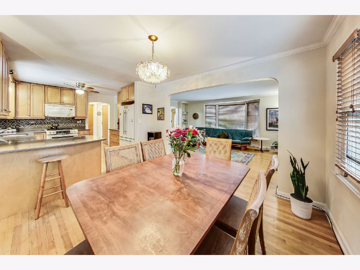 Sought after Budlong Woods location! Bring your remodeling ideas to this spacious 4 Bedroom, 1.5 bath, 2 story brick Georgian home on double lot. Main level features; Spacious Sun Drenched living room with bay windows, wood burning fireplace & mantel, formal dinning room, updated kitchen with 42" maple cabinetry and quartz counter tops, 4th bedroom & hardwood floors throughout. Second floor features 3 large bedrooms, full bath & finished hd/wd Floors. Semi-finished basement with high ceilings, family room, roughed in full bath, laundry and work shop/potential bedroom. Huge private back yard & patio ready for all your landscaping ideas. Walk to Legion & River Park trails, Galter Center, schools, shops and more.