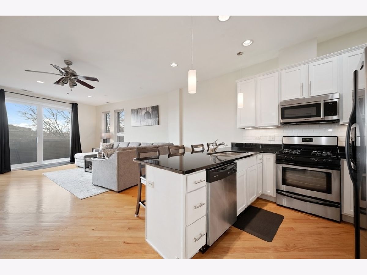 BRIGHT 3B/2B CONDO IN HOT CALIFORNIA CORRIDOR. MOVE-IN READY FEATURING SE EXPOSURE WITH CITY VIEWS, WIDE LIVING SPACE WITH TWO PRIVATE BALCONIES, BEAUTIFUL FIREPLACE, AND KITCHEN WITH WHITE CABINETRY, GRANITE COUNTERS, AND SS APPLIANCES. PRIMARY SUITE WITH WALK-IN CLOSET, DUAL SINK VANITY, WALK-IN SHOWER, SEPARATE JACUZZI TUB, AND ACCESS TO SECOND BALCONY. TWO SECONDARY BEDROOMS AND FULL BATH. IN-UNIT LAUNDRY. HARDWOOD FLOORING, RECESSED LIGHTING, AND CUSTOM CLOSET SYSTEMS THROUGHOUT. FRONT HALF OF THE ROOF DECK IS SHARED BETWEEN UNITS 2&3. TWO (TANDEM) SECURED PARKING SPACES INCLUDED IN PRICE! GREAT LOCATION WITH EASY ACCESS TO DOWNTOWN, WEST TOWN, 606 TRAIL, PUBLIC TRANSPORTATION, AND INTERSTATE ACCESS.