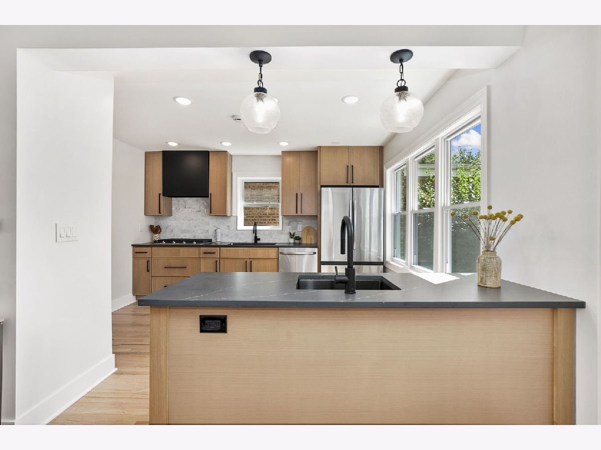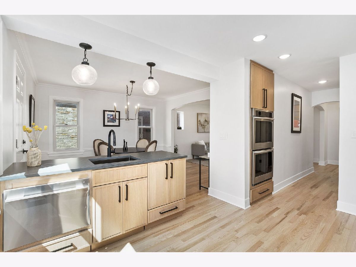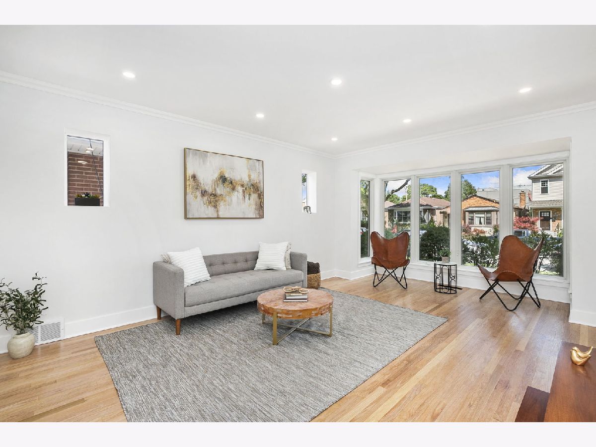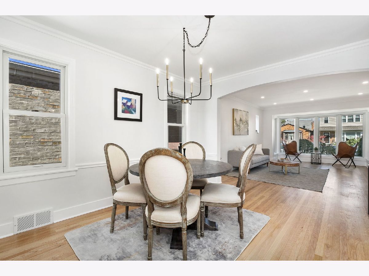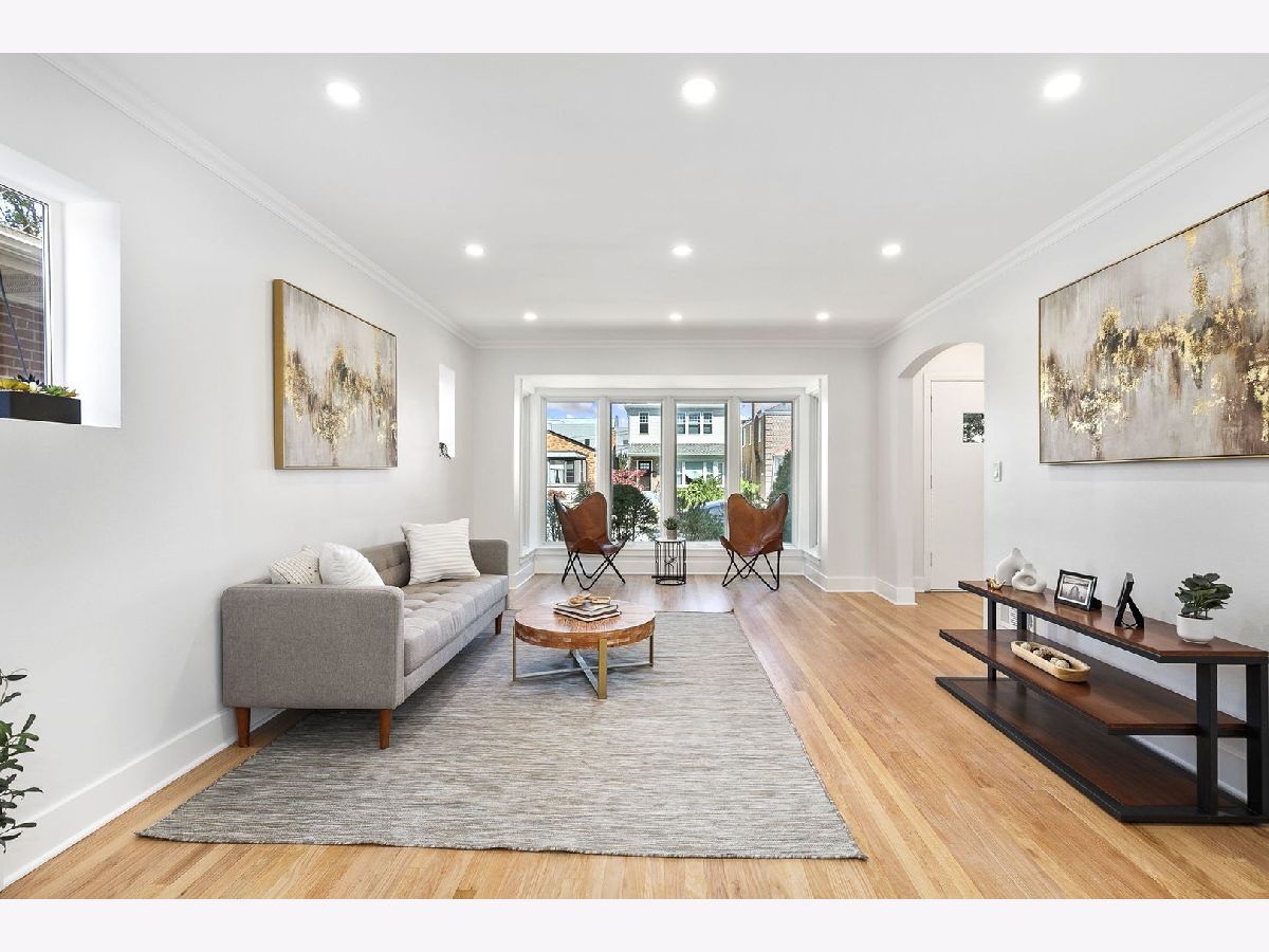 Welcome home to this completely re-imagined 4 bedroom, 2.5 bathroom, West Rogers Park all brick Georgian. Enter into the welcoming foyer and you're immediately greeted with a massive open living room with beautiful bay window for great natural light that really puts the oak floors on display. The living room leads into the large dedicated dining room with a back door that leads to the beautiful backyard with large patio, tons of green space, and two car parking pad. The main level is complete with an updated half bathroom, and incredible show stopper chef kitchen with beautiful cabinets, high end appliances including a double oven, dual dishwasher, custom range hood and dual sinks. The second level is highlighted with beautifully re-finished hardwood floors with a natural finish, 3 expansive bedrooms, and a stunning bathroom with designer quality finishes. This home truly checks all the boxes with a finished basement that includes a 4th bedroom, full bathroom, side by side laundry and separate mechanical room. The beautiful tree-lined street is a prime location with easy access to the areas best restaurants, parks, and public transportation. This home is truly turnkey, all that's left is to move-in!