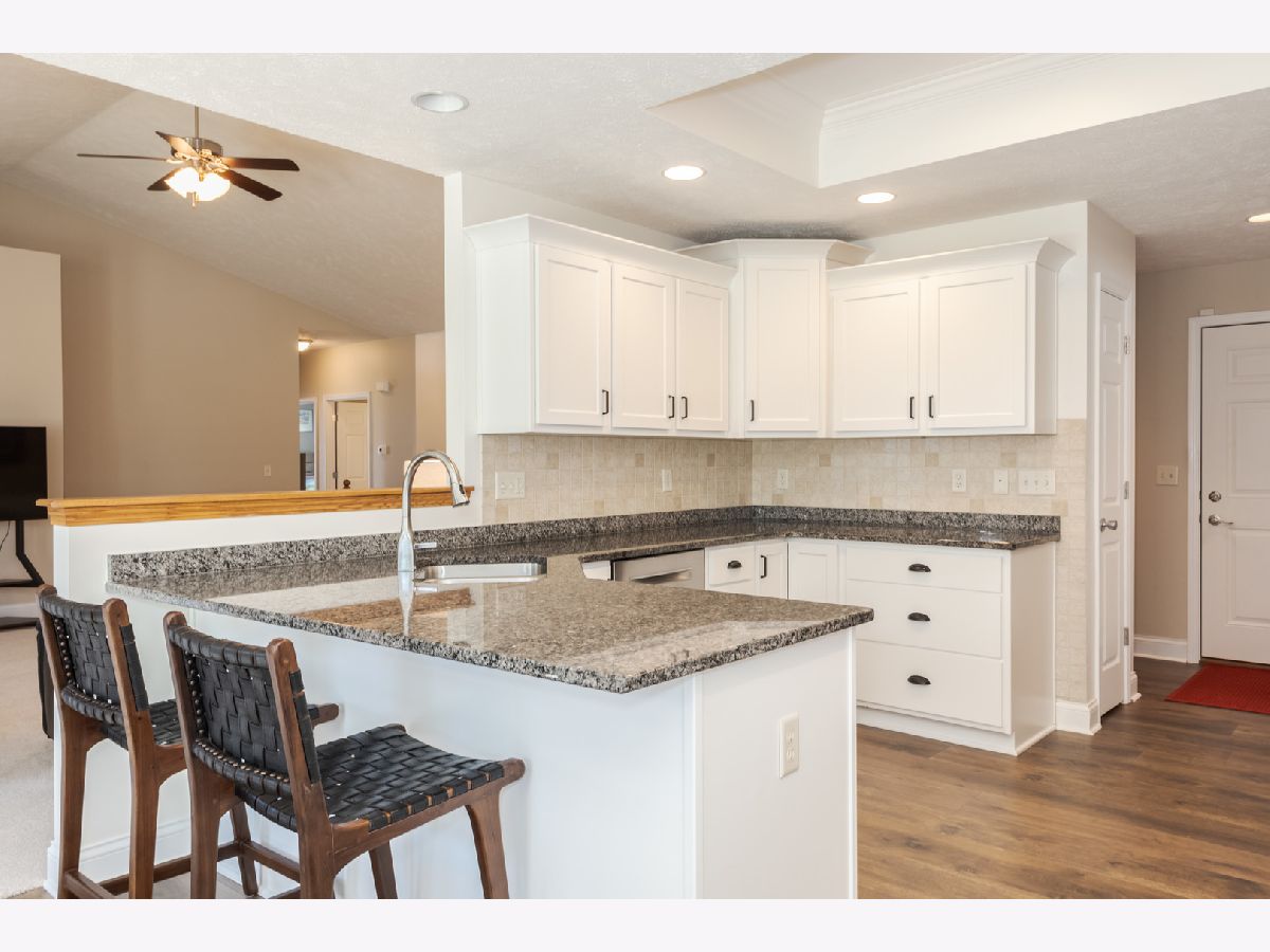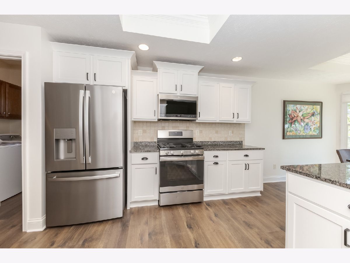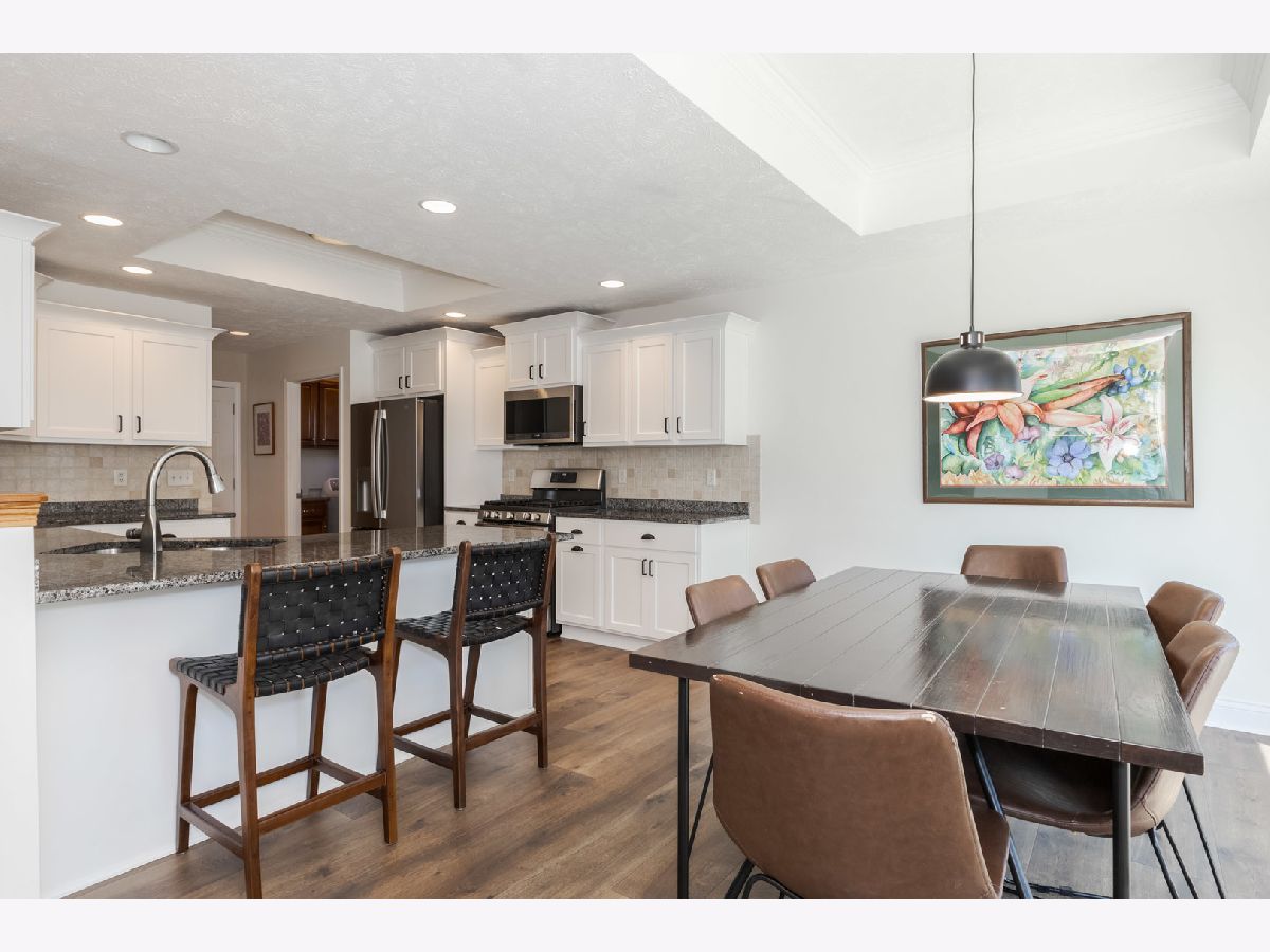 Immaculate Ranch home located in desirable North Bridge subdivision. This home features 3 bedrooms, 2 full bathrooms, and a 3 car garage with eight foot doors. The home flows nicely with an open concept and abundant natural light while the vaulted and multiple tray ceilings adds to the experience. Beautiful luxury wood laminate flooring throughout the majority of the main level was recently installed and new carpet in the family room(2023). The large family room has a gas log fireplace and a vaulted ceiling. The kitchen opens to the eating area and partially to the large family. The primary bedroom is spacious and has a tray ceiling, walk-in closet, and has an updated bathroom with double vanities, soaking bathtub, and a separate shower. The other two bedrooms are of very good size. Convenient first floor laundry. The basement is partially finished with an expansive Great Room with a 9 ft ceiling. There is a rough in for a bathroom and egress windows providing for potential future possibilities. Exceptional space for storage. Outside you will find a 2 tier deck (painted 2023) overlooking the beautifully landscaped yard and mature trees enclosed by a vinyl fence and no backyard neighbors. Radon mitigation system has been installed. So many updates 2023 which include- all windows except one were replaced on the main level as well as the sliding door to the deck, granite countertops installed in the kitchen and all the cabinets/drawers were refaced, new refrigerator 2024, new blinds, primary and second bathroom were completely updated, some fresh paint main level, and the garage doors were recently replaced. Ping Pong table remains.