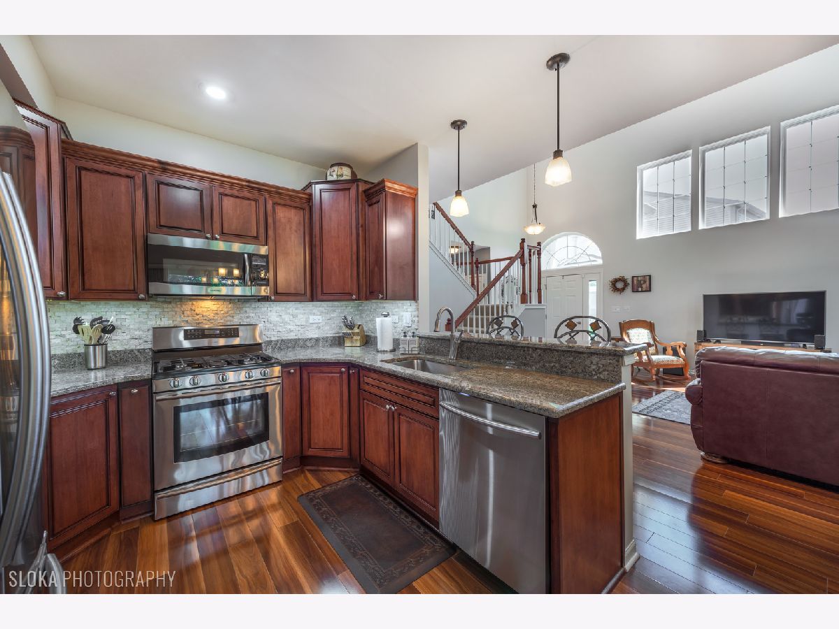 Absolutely beautiful townhome! From the moment you walk in the door and see the two-story greatroom and stunning kitchen with 42" dark-coffee glazed cabinets, granite counters, stone back-splash, stainless steel appliances and breakfast bar, you'll want to call this your home! The many tall windows let in lots of natural light and add architectural detail. From the sliding doors in the eating area, you walk out to the private deck with views of the nature preserve (birds and bunnies love it here!) Then come back inside, you'll find a first floor home office with oversized windows and easy access to the powder room. The second floor boasts a huge master suite with attached private bath, and large walk-in closet with California Closet Organizer ; there are two other bedrooms and a bath, also with great views. The sunny English basement has a great space for a rec room or family room, plus there is a cemented crawl space for tons of extra storage. This whole home has been freshly painted and meticulously maintained. Convenient location close to shopping, restaurants and Randall Rd! This is probably the prettiest townhome you've ever seen!
