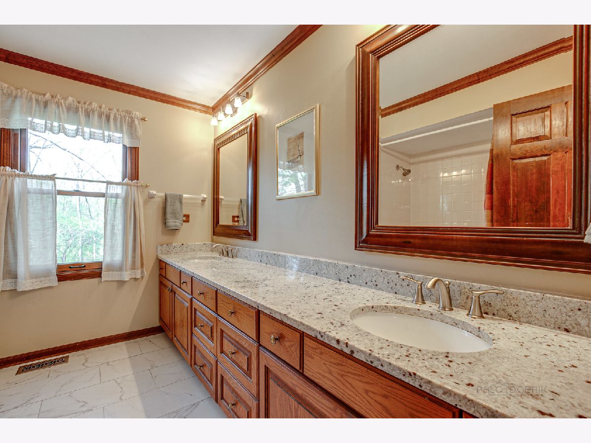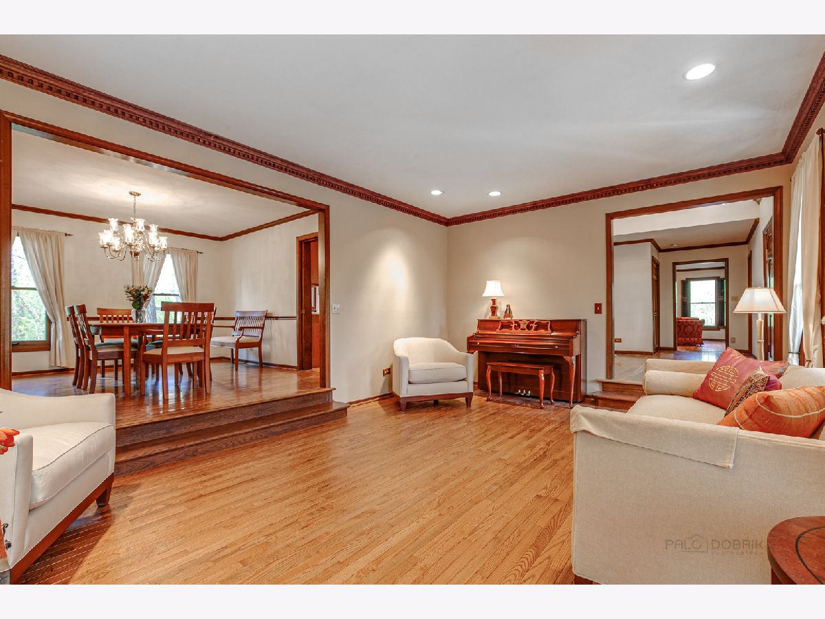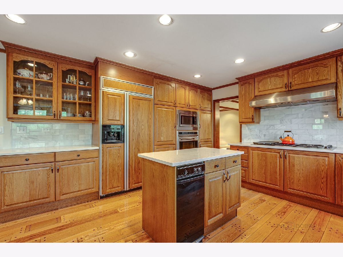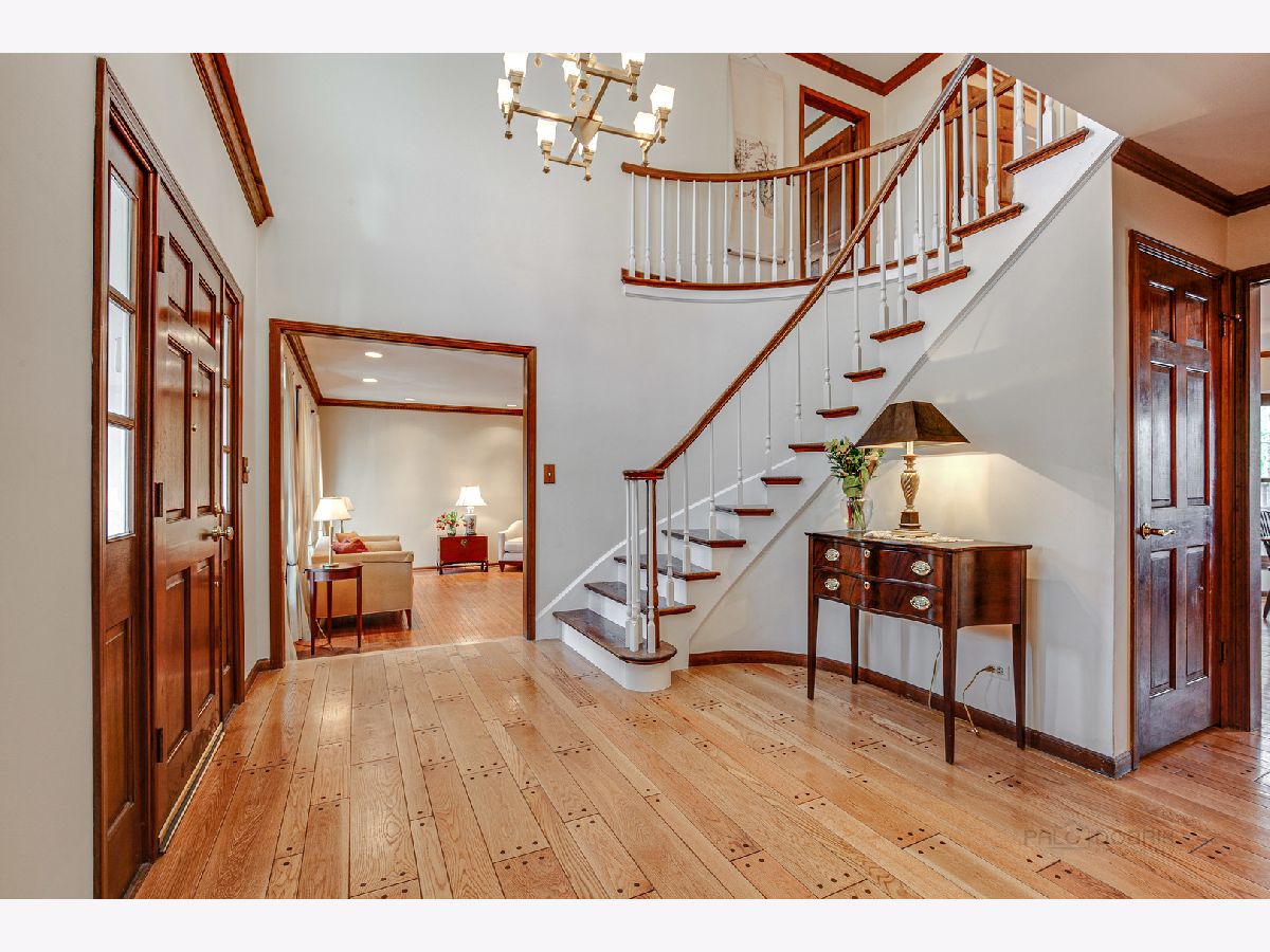 From the moment you arrive, this fabulous, meticulously maintained, classic 2 story draws you in with an abundance of curb appeal...including lush landscape, a gorgeous paver brick driveway and a welcoming front porch. As you enter, you will step into a large foyer with a curved staircase and immediately notice the abundance of gleaming hardwood flooring and beautiful crown moldings that run throughout the entire home! Also noticeable are the bright and cheerful sun filled rooms. The living and dining rooms are formal, yet cozy and are a great space for entertaining. The eat-in Chef's kitchen is fully appointed and opens to the family room, giving the home an open feel. It features a center island, updated WHITE quartz countertops and marble backsplash, built in refrigerator, 46" Dacor cooktop, Wolf oven and extra large white sink! The large family room is highlighted by a see through fireplace that is shared with the adjacent room...currently being used as an office/den that features stunning built in bookshelves and a walkin closet. Upstairs you will find 5 bedrooms...all with ample closets so that your family can spread out! The main bath has been refreshed. The primary bedroom is large and has an updated bath, including WHITE cabinetry with quartz countertop, plus a new shower and flooring. There is a walk in closet PLUS a linen and 2nd closet. Overall, the home is overflowing with closet space! As a bonus, the basement is finished and includes a full bath. You will have plenty of reason to head outdoors to the almost 1/2 acre WOODED yard that features a large deck, GAZEBO and play area as well as rear yard enclosed fence...PERFECT for pets or small children! Additional outstanding features include newer PELLA Architect series replacement windows throughout, AC in 2019, Furnace in 2020 and 3 CAR Garage! Don't forget the schools that Lincolnshire is famous for! All of this and close to everything...Metra, tollway, multiple parks and forest preserves, library, shopping and restaurants.