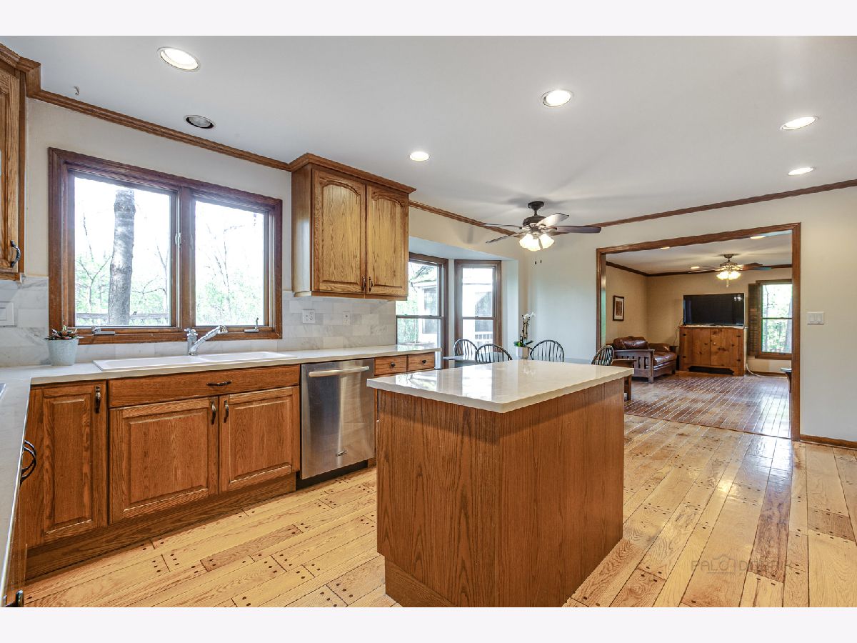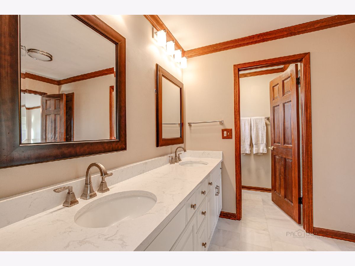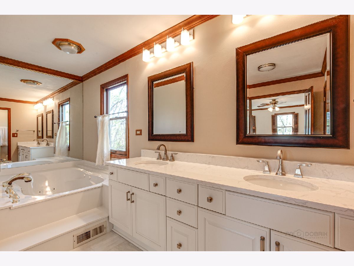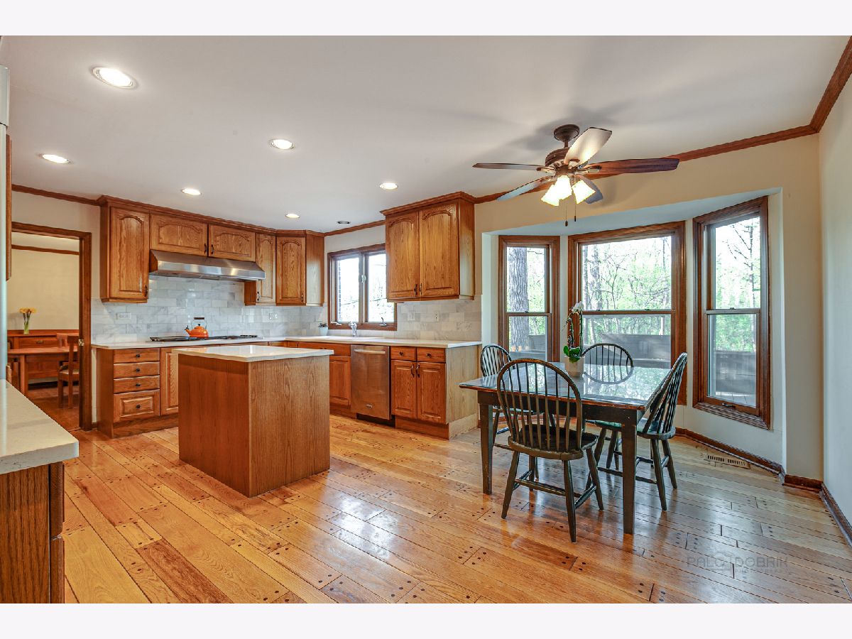 From the moment you arrive, this fabulous, meticulously maintained, classic 2 story draws you in with an abundance of curb appeal...including lush landscape, a gorgeous paver brick driveway and a welcoming front porch. As you enter, you will step into a large foyer with a curved staircase and immediately notice the abundance of gleaming hardwood flooring and beautiful crown moldings that run throughout the entire home! Also noticeable are the bright and cheerful sun filled rooms. The living and dining rooms are formal, yet cozy and are a great space for entertaining. The eat-in Chef's kitchen is fully appointed and opens to the family room, giving the home an open feel. It features a center island, updated WHITE quartz countertops and marble backsplash, built in refrigerator, 46" Dacor cooktop, Wolf oven and extra large white sink! The large family room is highlighted by a see through fireplace that is shared with the adjacent room...currently being used as an office/den that features stunning built in bookshelves and a walkin closet. Upstairs you will find 5 bedrooms...all with ample closets so that your family can spread out! The main bath has been refreshed. The primary bedroom is large and has an updated bath, including WHITE cabinetry with quartz countertop, plus a new shower and flooring. There is a walk in closet PLUS a linen and 2nd closet. Overall, the home is overflowing with closet space! As a bonus, the basement is finished and includes a full bath. You will have plenty of reason to head outdoors to the almost 1/2 acre WOODED yard that features a large deck, GAZEBO and play area as well as rear yard enclosed fence...PERFECT for pets or small children! Additional outstanding features include newer PELLA Architect series replacement windows throughout, AC in 2019, Furnace in 2020 and 3 CAR Garage! Don't forget the schools that Lincolnshire is famous for! All of this and close to everything...Metra, tollway, multiple parks and forest preserves, library, shopping and restaurants.
