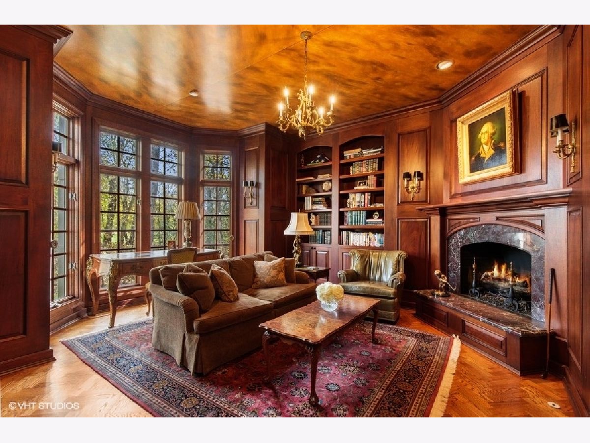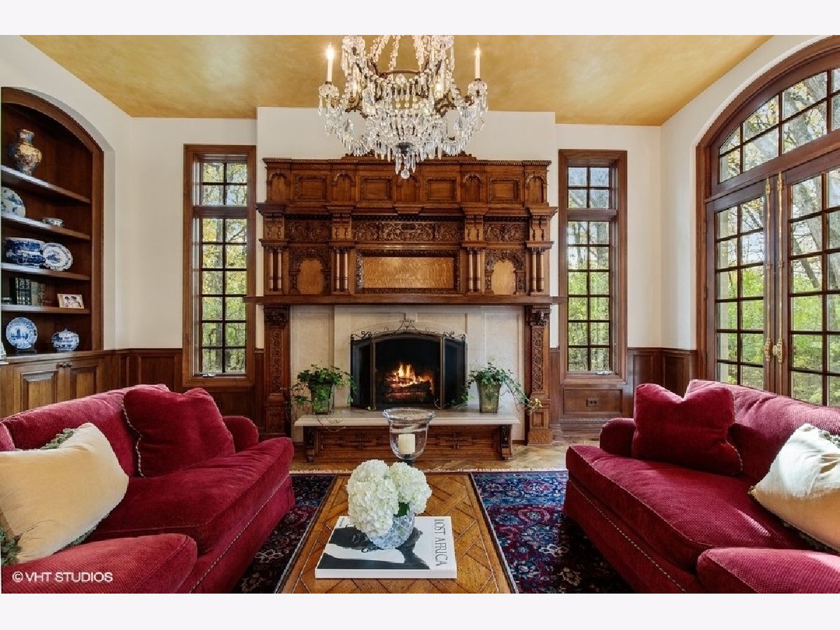 Exquisitely appointed 5 bedroom, 7.1 bath home with 7 fireplaces in fabulous Lake Forest location on a sun-filled private lot backing to open space. Home boasts incredible architecture featuring 10' ceilings, detailed custom moldings, arched openings and one-of-a-kind finishes. The two-story foyer with handmade wrought iron railings welcomes you into the home and the custom paneled library with built-ins is perfect for work or cozy nights by the fireplace. Gracious living room with beautiful bay window and fireplace is inviting and light-filled. The spectacular 35' x 19' family room with herringbone hardwood floors, beamed ceiling, built-ins and wall of French doors offers custom mantle and bar cabinet imported from England. The kitchen is perfect for everyday living or large scale entertaining with generously-sized island, two sinks, custom cabinetry, butler's pantry, incredible breakfast room and office. The second floor was renovated in 2018-19. The luxurious primary suite is a perfect retreat with fireplace, balcony overlooking the backyard, gorgeous bathroom and walk-in dressing room. Four additional bedrooms with walk-in closets, three baths plus a beautifully finished bonus room featuring custom paneling, fireplace, kitchenette, second floor laundry and full bath complete the second floor. The back staircase leads to the mudroom with ample space for daily functionality. The basement offers a large laundry room, recreation room with fireplace, dance room, bedroom, bath and lots of storage. The heated, four plus car garage has high ceilings and plenty of storage as well. Views of the 1.25 acre lot are evident from the natural bluestone patio and the yard overlooks the common protected 70 acre space beyond. Four HVAC systems, newer slate-look concrete roof and possible expansion in third floor walk up attic space and more!