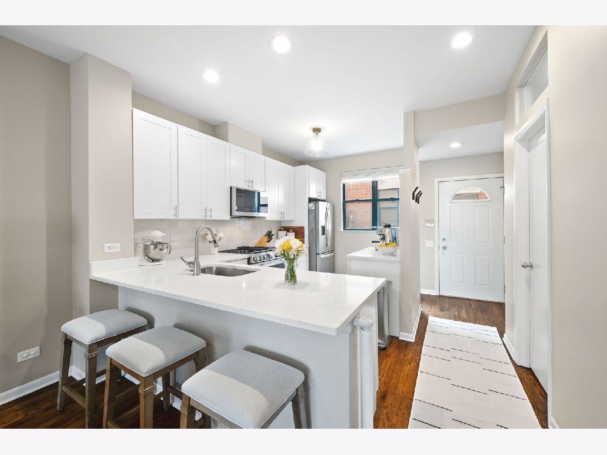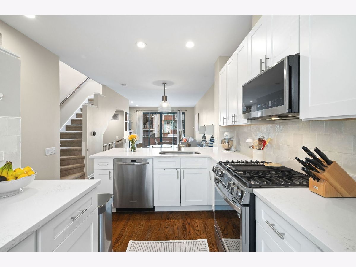 Welcome to this beautiful 2 bed 2.1 bath townhouse in a perfect, gated community in West Lakeview. Live like a single family home with 3 full floors of living. When you enter you are greeted by a custom built entryway bench and closet system. The open and airy kitchen features a great place for a coffee bar, an overhang perfect for bar stools and a newer oven and refrigerator. Next, you'll find a large separate dining room and a living room with custom built in shelving and a cozy fireplace. The large outdoor patio has been custom fitted with vinyl decking and looks over the quiet tree lined street. On the main floor there is a powder room with high end decorative wall paper. Upstairs, you'll find two generously sized bedrooms each designed with custom, high end closet systems and each with their own en-suite bathroom. The primary bathroom was fully remodeled in 2024 with a new vanity, mirrors and marble tiling. In the over-sized basement you'll find an area that can act as a flex space for all of your needs. A large play room, a living room, an extra office space, or a space for guests to stay in the custom built Murphy bed. Not featured is a large laundry room with side by side laundry and a great deal of storage space. There is also a separate detached garage parking space included in the price! This location in West Lakeview is close to so many conveniences. Within a short walk you will find grocery stores, great bars and restaurants, public transit, shopping and parks. Don't miss this great opportunity!