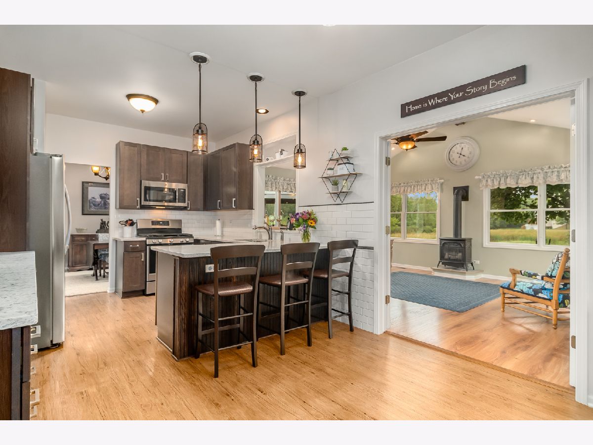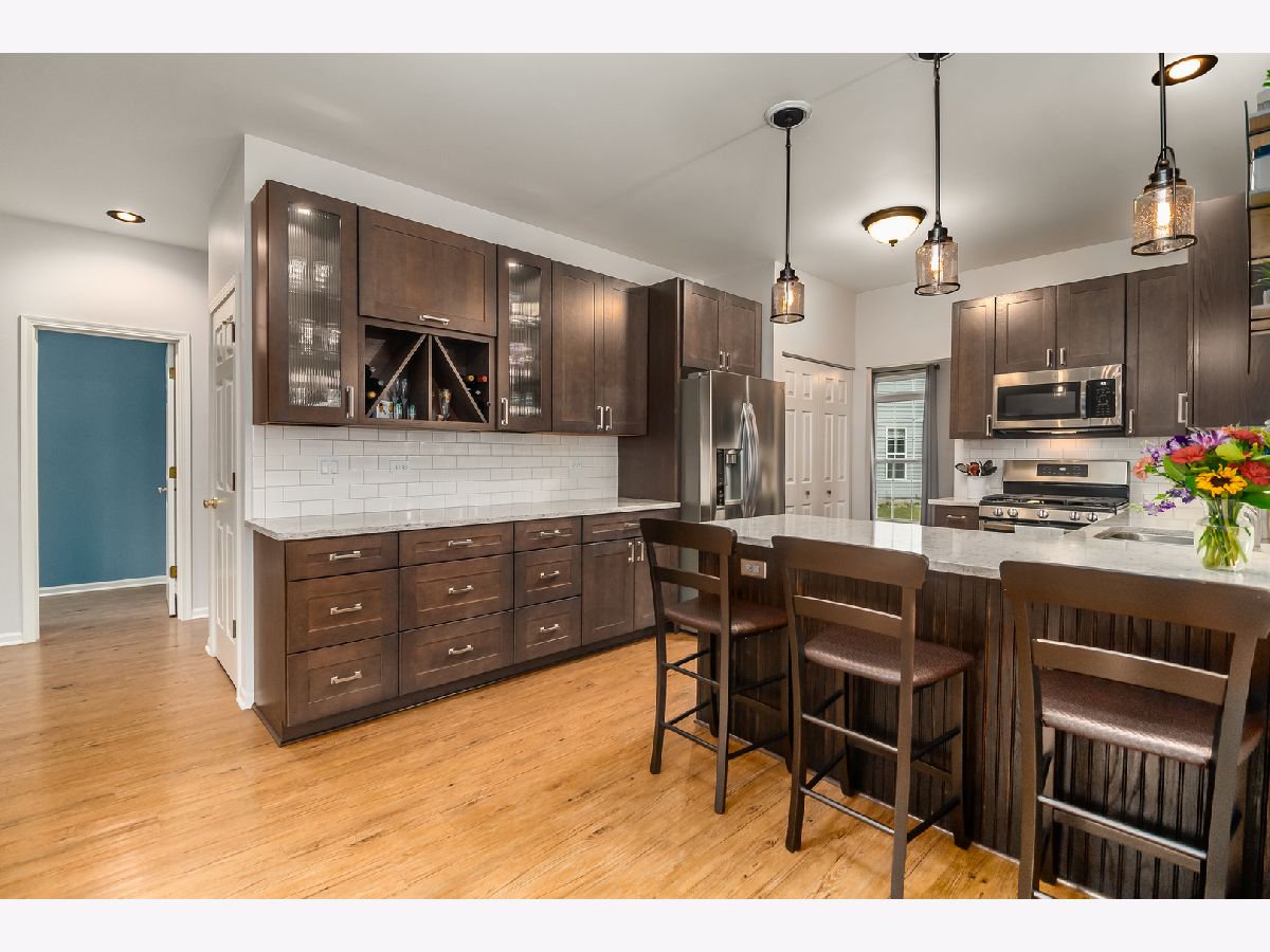 Nestled in the quite cul-de-sac 2821 Forestview Ct in the Gleneagle Farms subdivision in Carpentersville is a sleek move-in ready home renovated to perfection and full of surprises around every corner. Upon approach, you are greeted by the oversized two-car garage and driveway with parking for two additional vehicles, which is adorned by shrubbery and a flowering pathway leading to the front door and covered porch. Step inside the charming entryway, you are greeted with newer wood laminate floors and open staircase. Inside the home to the right, you will pass a renovated 1st floor powder room, and spacious 1st floor laundry room with access to the garage. Continuing through the home you will enter into the grand family room with vaulted ceilings featuring a loft area above accentuating the natural light in the room, that opens to the remodeled kitchen and impressive 15x20 sun room porch with spectacular picturesque and private rear yard with views of the nature preserve, recently done deck and stunning cedar gazebo (talk about a fabulous entertaining space!). The sun room has natural warmth from all the windows in addition to the the Vermont casting gas fireplace what keeps the room warm during cozy winter nights. Love to Cook? Head back into the amazing renovated kitchen. With the flexible floorplan, you will never run out of space and entertaining and everyday living with be a breeze in this kitchen with a built-in bar; stainless steel appliances, quartz countertops, and 42" dark oak soft close KraftMaid cabinets. Adjoining the kitchen you will find a cozy dining room and living room; and return you to the staircase leading upstairs. Three spacious bedrooms can be found on the upstairs level. The master with vaulted ceilings and a large walk in closet also features a newly renovated en-suite bathroom with separate shower and tub. Bedroom #2 Also features a large walk-in closet; and the third bedroom features a cabinets which provides open space and plenty of storage. Hall bath recently updated as well. Want even more space? This home also features an unfinished clean/dry basement with partial crawl waiting for your own finishing touches.