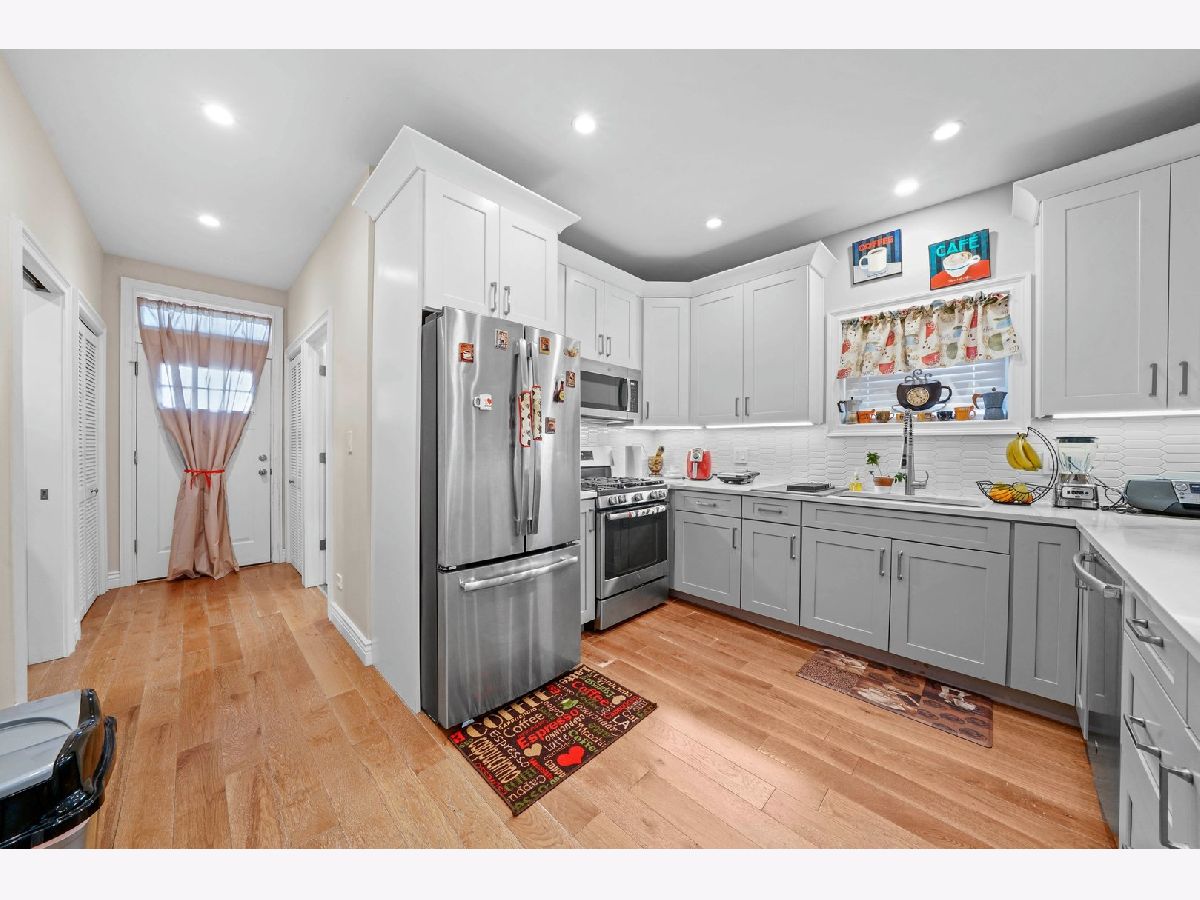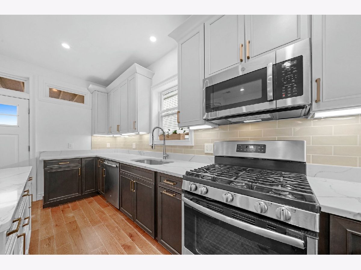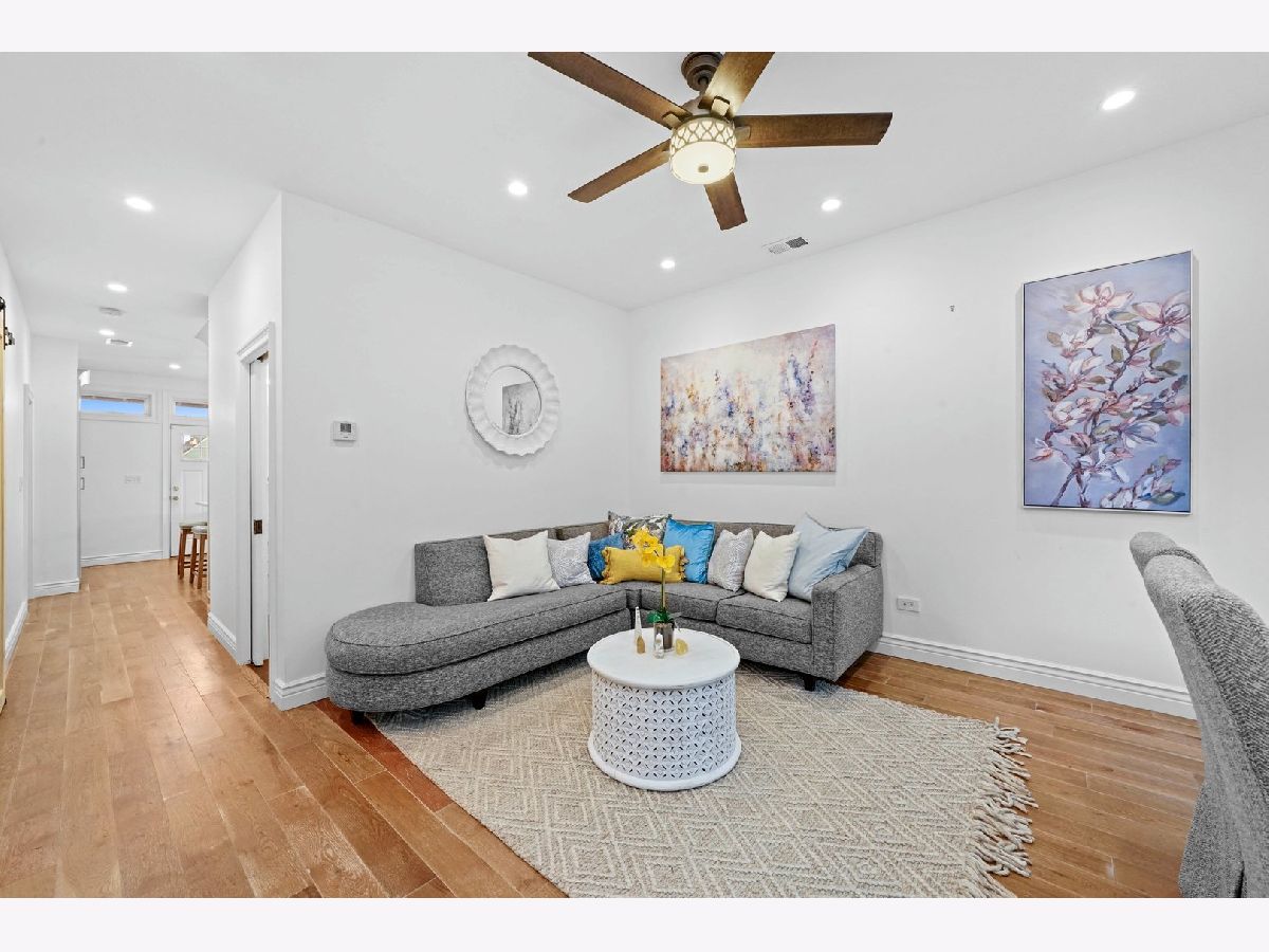 This is impeccably designed luxury turnkey 3 unit in the hot Avondale area bordering Logan Square was completely renovated completed in 2019 from the foundation up to the roof sits on an oversized Chicago lot with 3 outdoor parking spaces. All kitchens offer custom cabinetry with under cabinet lighting, granite counter-tops, backsplashes, deep sinks with sprayers, GE stainless steel appliances including dishwashers and microwaves. The large bathrooms offer Kohler soaking tubs and fixtures, spacious vanities, honeycomb and rain inspired tile. The HVAC units, tankless water heaters, in-unit washer/dryers, and wide plank rustic hardwood floors on floors 1 and 2 and herringbone ceramic floor tiles in the Garden Unit were all installed between 2018-19. Each unit is equipped with recessed lights with dimmers throughout. Each level has its own outdoor space which include 3 large outdoor decks and 1 patio. Special features for the 2nd floor duplexed-up unit include a beautiful island with room to maneuver, 2 bathrooms, with 1 major bathroom with a double sink and walk-in shower shower sprayer located off the oversized major bedroom at the top level. A den sits right off the top level deck. Skylights brighten the upper level. The exterior includes newer roof, gutters, siding, custom encasement windows and vinyl double hung windows throughout the building (2018). The foundation was waterproofed, the concrete newly poured, new "I" beams, columns, drain-tile, plastic barrier, sump pump and ejector pit. The structure insulated with spray foam, new electrical system from the service throughout the building. New copper plumbing throughout. New low voltage and cable wiring throughout. Freshly painted wrought iron and wood decks. All walking distance to grocery shopping, parks and public transportation. Truly a wonderful location to call home!