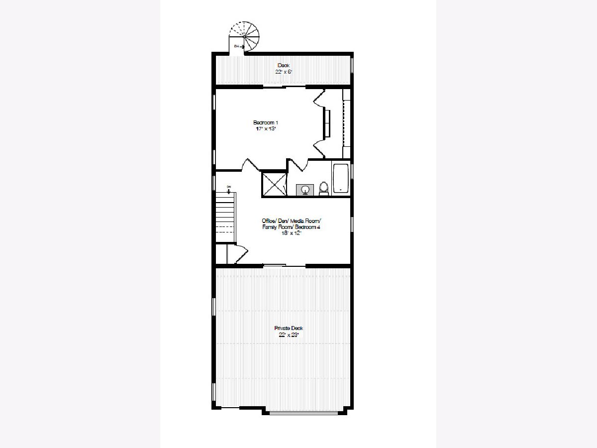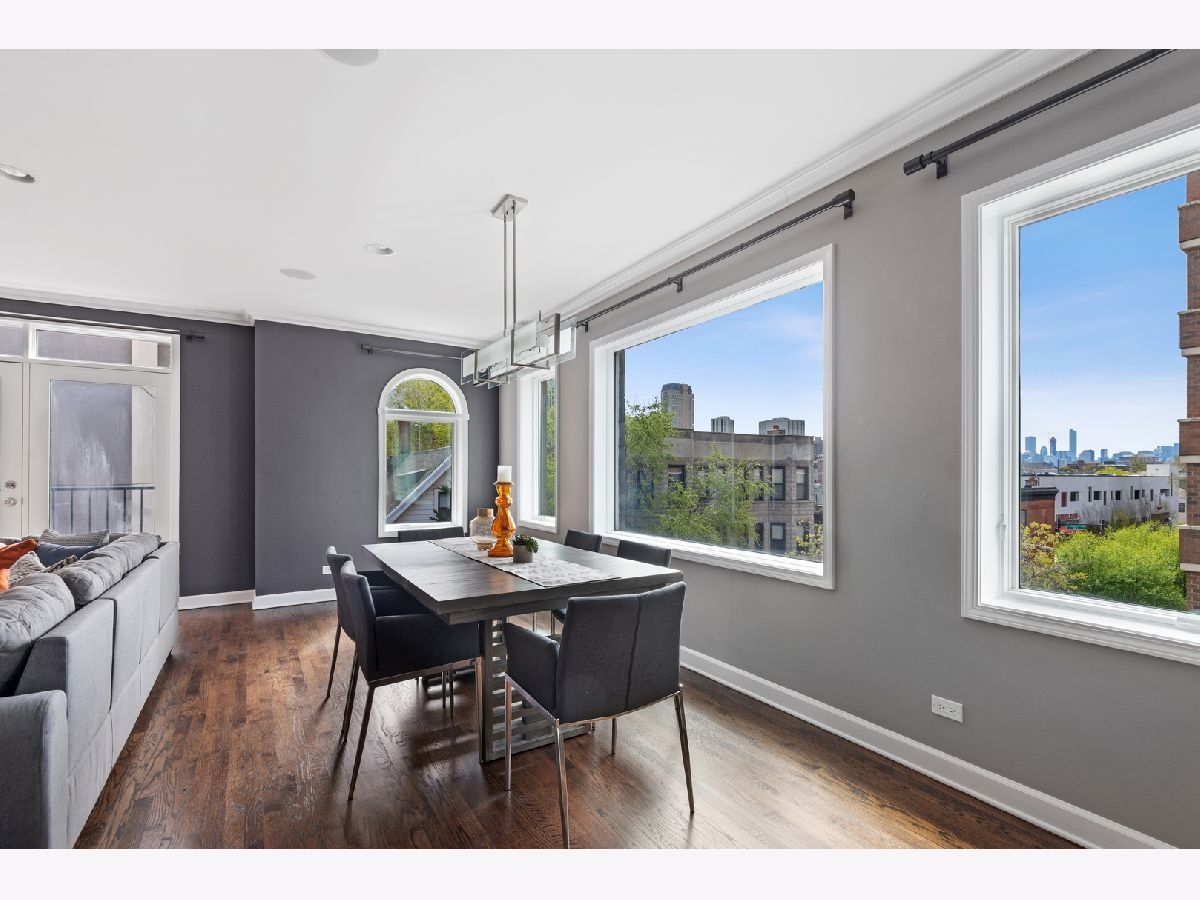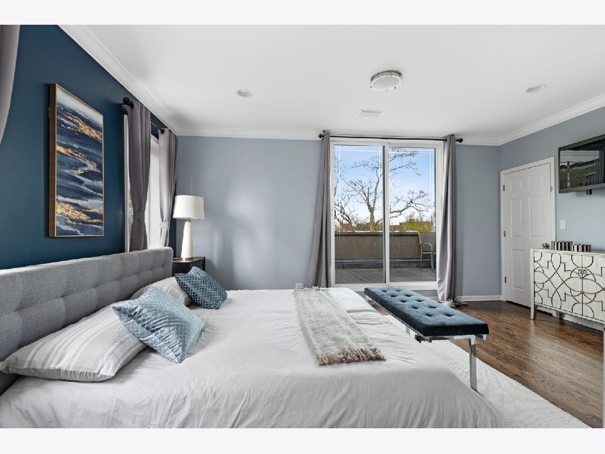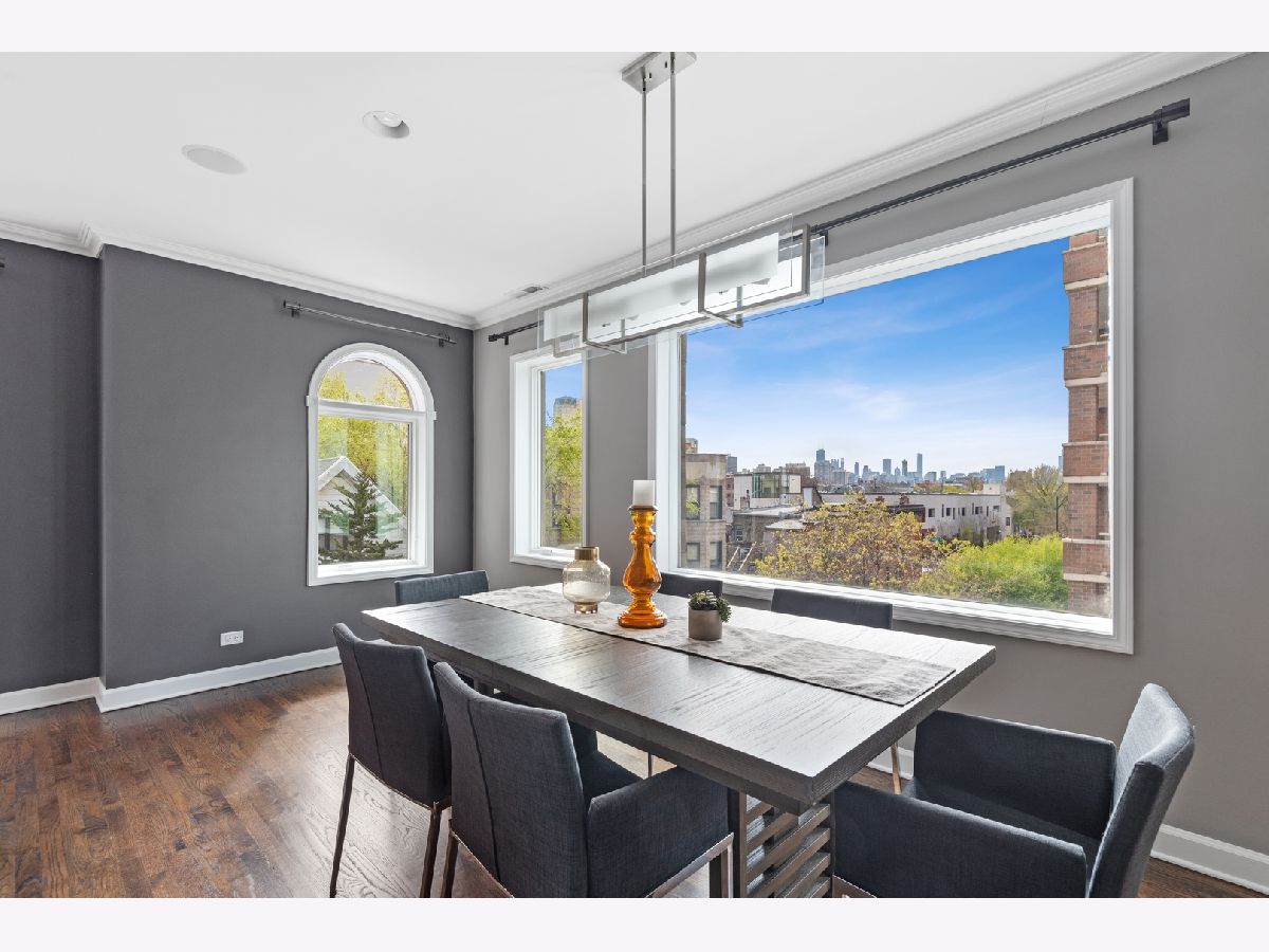 Stunning remodel of this top floor two level home! Gorgeous high quality kitchen and baths, beautifully refinished solid oak flooring, extra large 22' x 22' easily accessible private deck directly off the family room, with sweeping views of the downtown skyline. The living room offers a woodburning fireplace with gas starter, and spectacular unobstructed views to the south of the city. Recessed lighting in the living room and family room, control the Philips Hue bulbs with your smart phone, change the color, warmth, and brightness. Amazing kitchen with custom cabinetry, quartz countertops, and extra large island with seating for five. Three bedrooms plus a large family room which could also function as an office or media room. The living room, family room, master bedroom, and deck have built-in speakers for sound throughout the home. Lots of private outdoor space, check out the floor plan! Perfect location, tucked away on a quiet one block long street, yet steps to Trader Joe's, Mariano's, CTA, and many shops and restaurants nearby. Truly a lovely home, nothing to do but move-in! Click on 'Additional Information' to view/download floor plan.