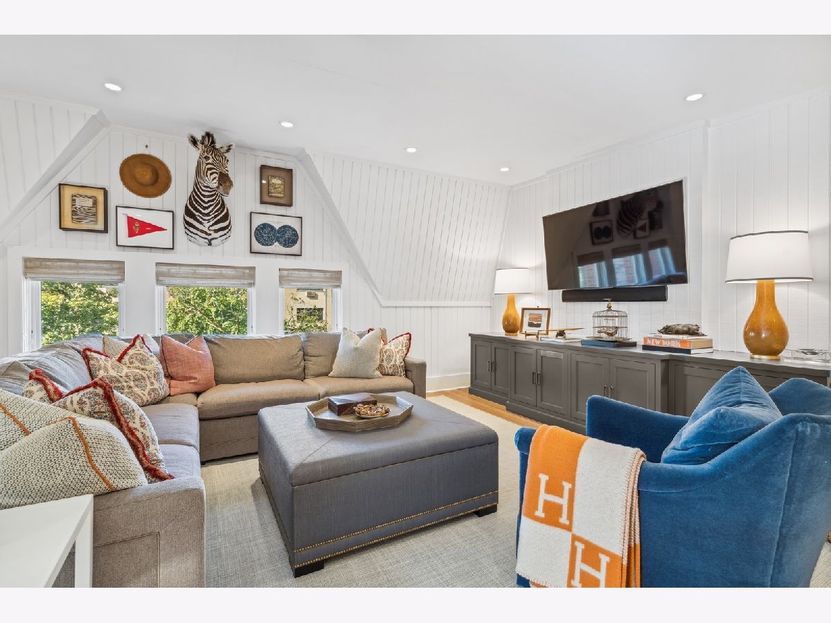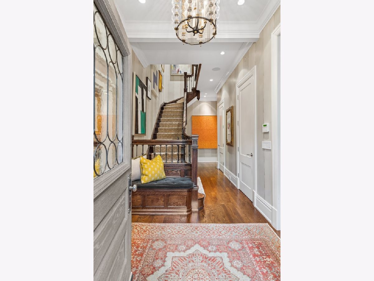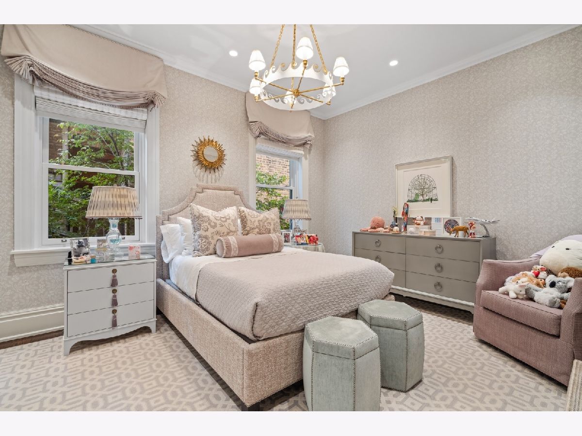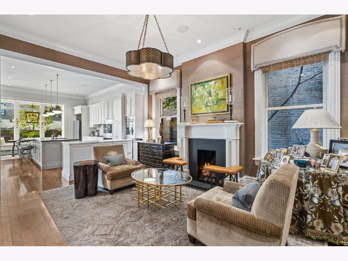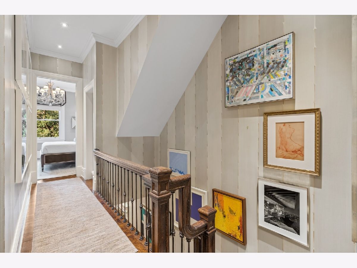 Sophisticated, classic, and exquisitely designed, 2825 N. Cambridge Ave. is a 5000-square-foot, 5 bed/6 bath, completely renovated home located in Chicago's charming East Lakeview neighborhood sited on a rare 33' x 150' parcel. Expertly updated and appointed by the award-winning designers at James Thomas Chicago to preserve the home's vintage character while layering in first-class finishes and modern comforts, the main level begins with a traditional entry and foyer with two custom coat closets and a beautiful hand-painted wall treatment. Refinished original hardwood floors and seamless custom millwork details connect the main living and entertaining spaces - an elegant living room with a custom marble fireplace, a formal dining room with a built-in buffet, a hand-painted wall mural, and a silver leaf treatment on the ceiling, an inviting family room with a second fireplace, and a handsome den with a built-in media center and coffered ceiling. The chef's kitchen stuns with custom cabinetry, natural stone countertops, professional-grade appliances including a wine station, an island with counter seating, a walk-in pantry, and a sunlit breakfast area that overlooks the back patio and garden. Upstairs, the second level presents two exquisitely designed secondary bedrooms, one with a 16' x 4' private terrace with refreshed tile, and a spacious primary suite with a custom Venetian plaster finish, a deluxe dressing room, and a spa-like ensuite bath with a dual vanity, a deep soaking tub, a glass-encased shower, and a standalone water closet. The top level features a bespoke rec room with custom built-ins and a gaming table nook, plus a customized fitness room with a beverage center. Better still, the lower level boasts an expansive guest suite with a recently renovated kitchenette, a cozy den, two offices, a 1,200-bottle wine cellar, a craft room, a stylish mudroom with heated floors, and surplus custom storage. Plus, this gorgeous home has three meticulously hardscaped/landscaped outdoor spaces - a gated front yard with pretty pavers and mature trees, a 33' x 32' bluestone back patio with a built-in outdoor kitchen and exterior audio, and a side yard that runs the length of the house. (All greenery has been updated/refreshed, including the addition of a lattice wall on the side of the garage and house.) There's also a highly rare, oversized three-car garage with epoxy flooring. Additional callout details include custom window treatments throughout including automatic shades in all of the bedrooms, designer wallcoverings and light fixtures throughout, custom closets throughout, hand-painted wall murals in the dining room, hallway, and stairs, two design-forward powder rooms, updated lower level and second-floor laundry, state-of-the-art AV, security and irrigation systems, new landscape lighting, and a brand new roof. Effortlessly elegant, completely turnkey, and walking distance to the best of Lakeview and Lake Michigan, 2825 N. Cambridge Ave. is in a class of its own.