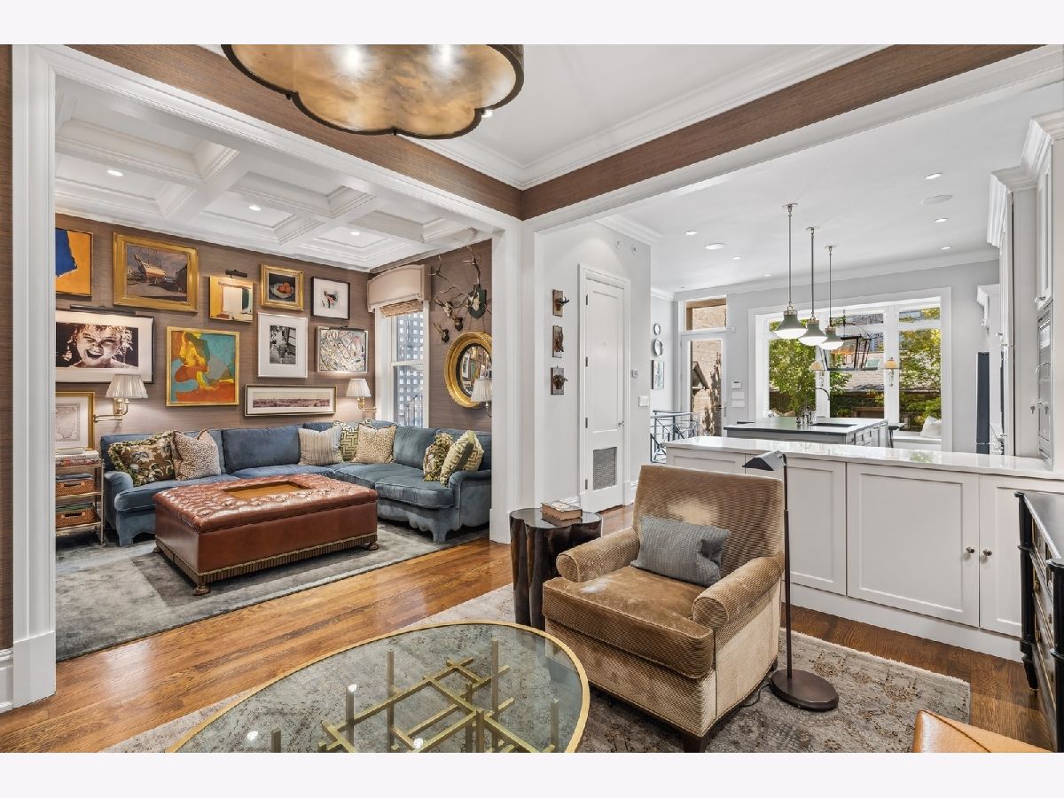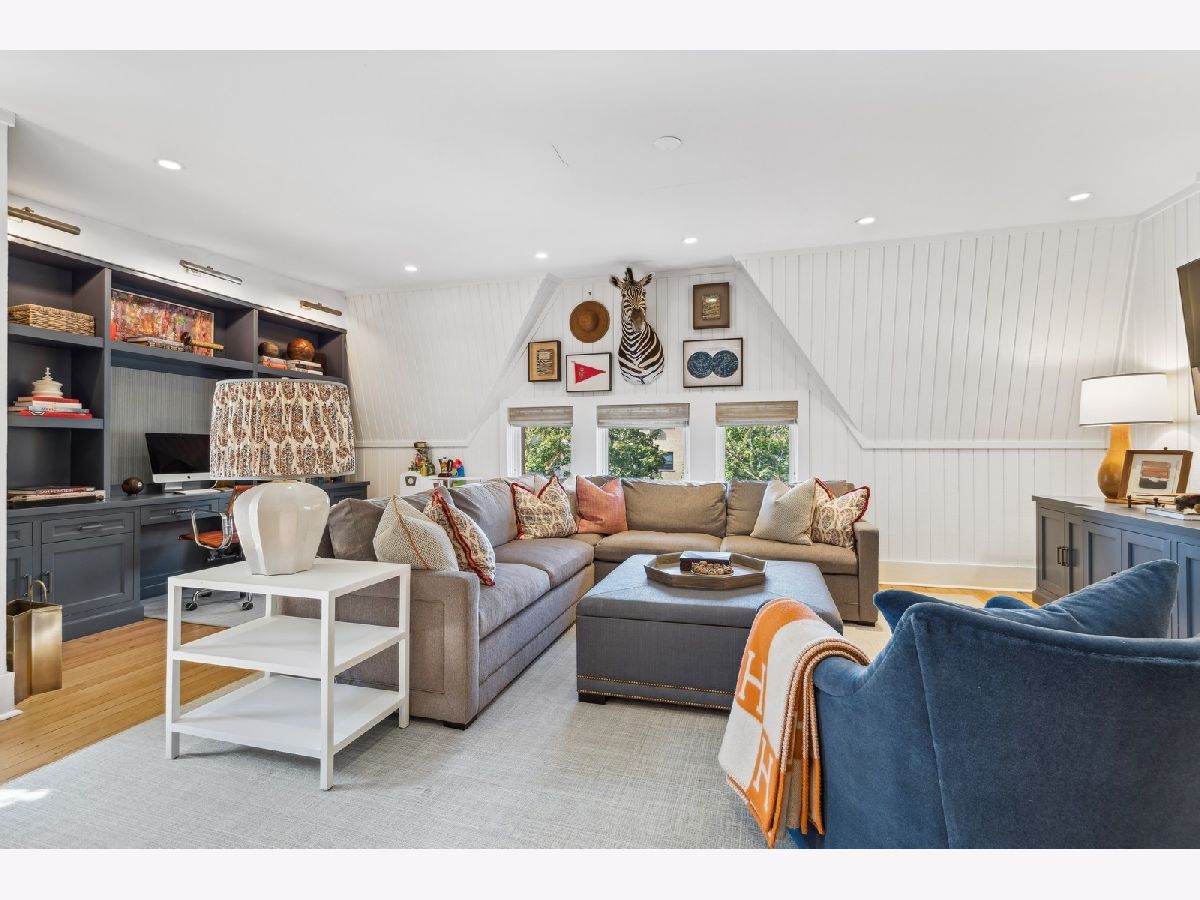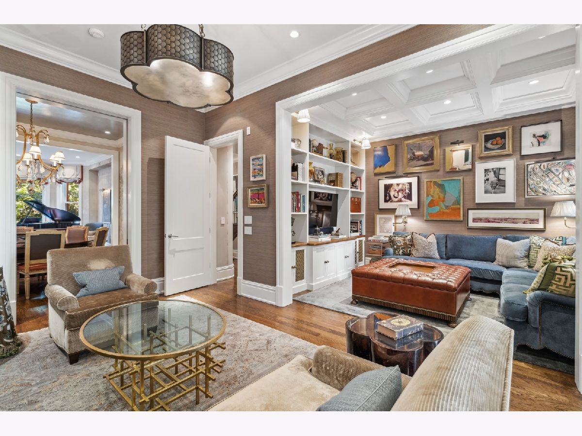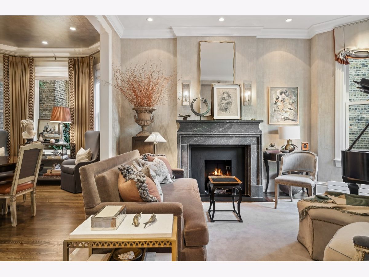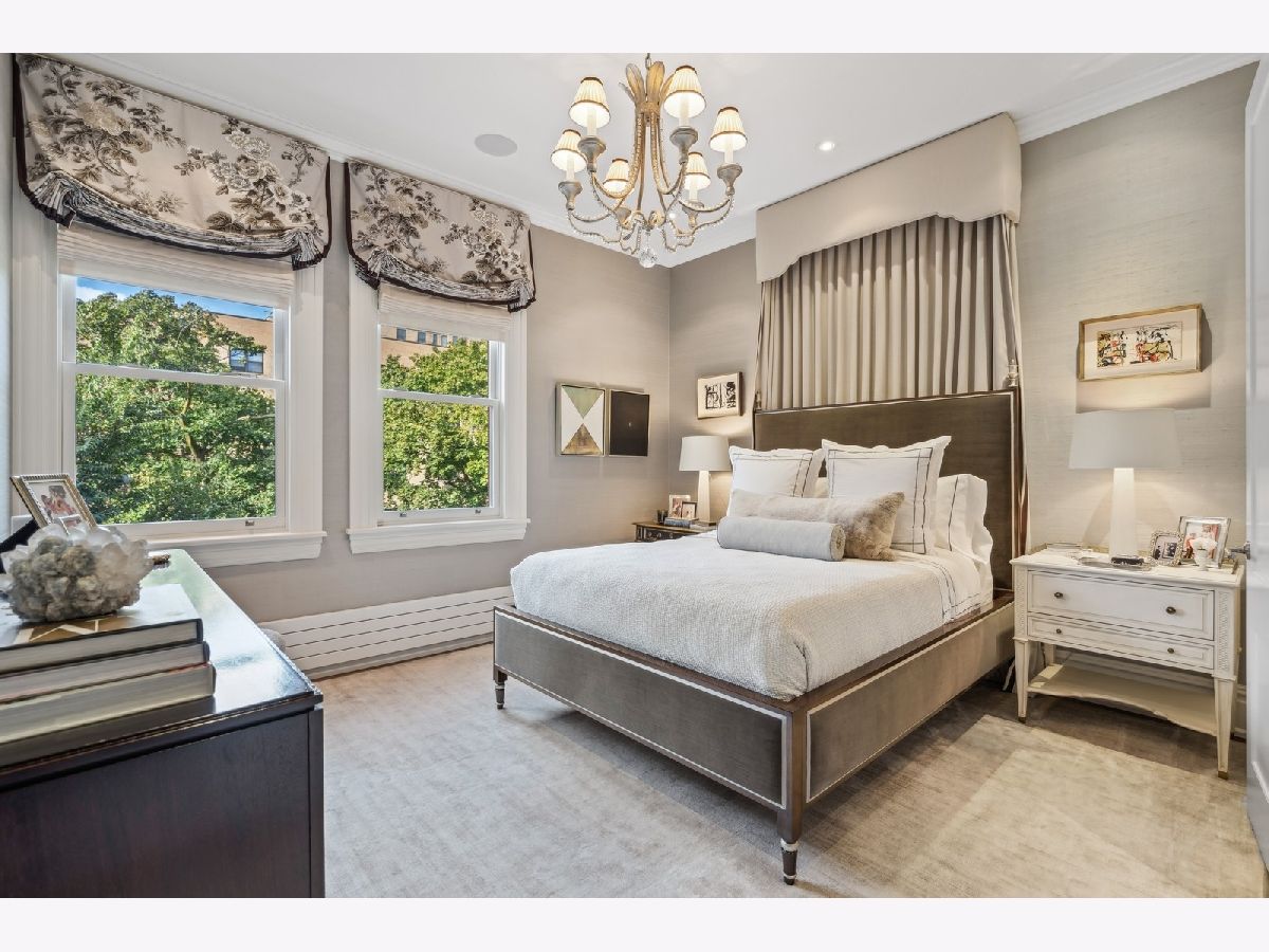 Sophisticated, classic, and exquisitely designed, 2825 N. Cambridge Ave. is a 5000-square-foot, 5 bed/6 bath, completely renovated home located in Chicago's charming East Lakeview neighborhood sited on a rare 33' x 150' parcel. Expertly updated and appointed by the award-winning designers at James Thomas Chicago to preserve the home's vintage character while layering in first-class finishes and modern comforts, the main level begins with a traditional entry and foyer with two custom coat closets and a beautiful hand-painted wall treatment. Refinished original hardwood floors and seamless custom millwork details connect the main living and entertaining spaces - an elegant living room with a custom marble fireplace, a formal dining room with a built-in buffet, a hand-painted wall mural, and a silver leaf treatment on the ceiling, an inviting family room with a second fireplace, and a handsome den with a built-in media center and coffered ceiling. The chef's kitchen stuns with custom cabinetry, natural stone countertops, professional-grade appliances including a wine station, an island with counter seating, a walk-in pantry, and a sunlit breakfast area that overlooks the back patio and garden. Upstairs, the second level presents two exquisitely designed secondary bedrooms, one with a 16' x 4' private terrace with refreshed tile, and a spacious primary suite with a custom Venetian plaster finish, a deluxe dressing room, and a spa-like ensuite bath with a dual vanity, a deep soaking tub, a glass-encased shower, and a standalone water closet. The top level features a bespoke rec room with custom built-ins and a gaming table nook, plus a customized fitness room with a beverage center. Better still, the lower level boasts an expansive guest suite with a recently renovated kitchenette, a cozy den, two offices, a 1,200-bottle wine cellar, a craft room, a stylish mudroom with heated floors, and surplus custom storage. Plus, this gorgeous home has three meticulously hardscaped/landscaped outdoor spaces - a gated front yard with pretty pavers and mature trees, a 33' x 32' bluestone back patio with a built-in outdoor kitchen and exterior audio, and a side yard that runs the length of the house. (All greenery has been updated/refreshed, including the addition of a lattice wall on the side of the garage and house.) There's also a highly rare, oversized three-car garage with epoxy flooring. Additional callout details include custom window treatments throughout including automatic shades in all of the bedrooms, designer wallcoverings and light fixtures throughout, custom closets throughout, hand-painted wall murals in the dining room, hallway, and stairs, two design-forward powder rooms, updated lower level and second-floor laundry, state-of-the-art AV, security and irrigation systems, new landscape lighting, and a brand new roof. Effortlessly elegant, completely turnkey, and walking distance to the best of Lakeview and Lake Michigan, 2825 N. Cambridge Ave. is in a class of its own.