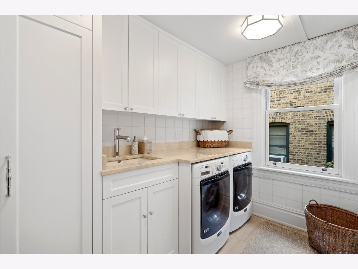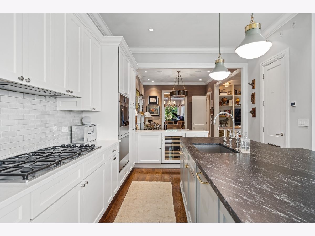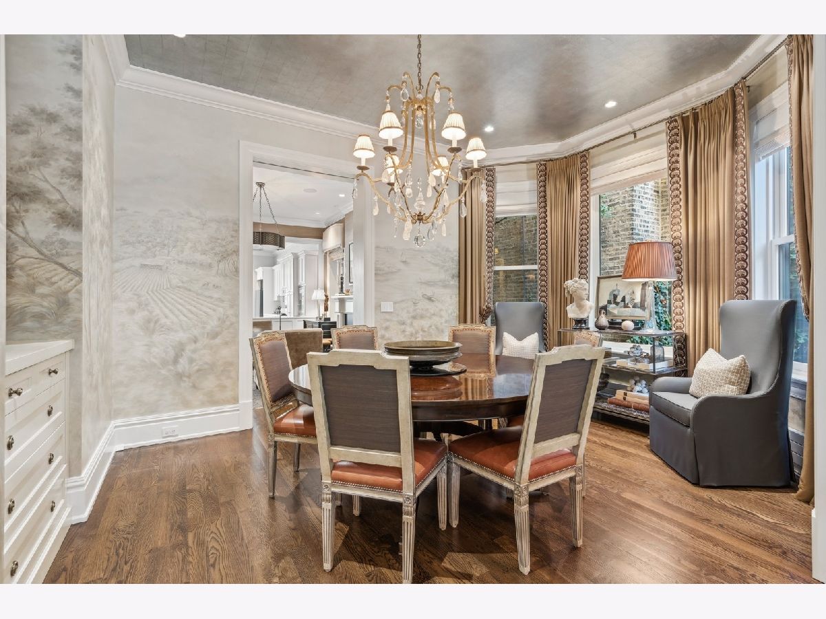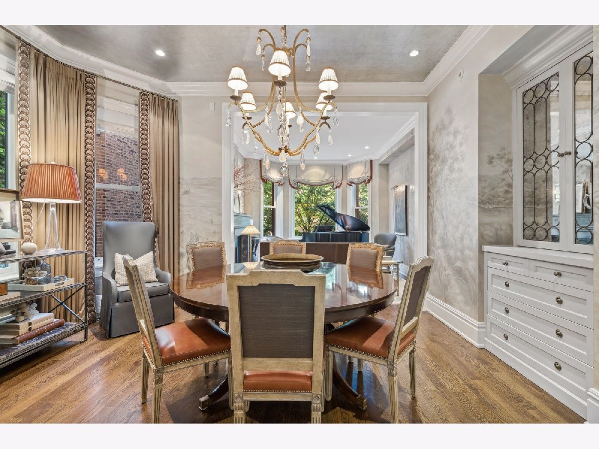 Sophisticated, classic, and exquisitely designed, 2825 N. Cambridge Ave. is a 5000-square-foot, 5 bed/6 bath, completely renovated home located in Chicago's charming East Lakeview neighborhood sited on a rare 33' x 150' parcel. Expertly updated and appointed by the award-winning designers at James Thomas Chicago to preserve the home's vintage character while layering in first-class finishes and modern comforts, the main level begins with a traditional entry and foyer with two custom coat closets and a beautiful hand-painted wall treatment. Refinished original hardwood floors and seamless custom millwork details connect the main living and entertaining spaces - an elegant living room with a custom marble fireplace, a formal dining room with a built-in buffet, a hand-painted wall mural, and a silver leaf treatment on the ceiling, an inviting family room with a second fireplace, and a handsome den with a built-in media center and coffered ceiling. The chef's kitchen stuns with custom cabinetry, natural stone countertops, professional-grade appliances including a wine station, an island with counter seating, a walk-in pantry, and a sunlit breakfast area that overlooks the back patio and garden. Upstairs, the second level presents two exquisitely designed secondary bedrooms, one with a 16' x 4' private terrace with refreshed tile, and a spacious primary suite with a custom Venetian plaster finish, a deluxe dressing room, and a spa-like ensuite bath with a dual vanity, a deep soaking tub, a glass-encased shower, and a standalone water closet. The top level features a bespoke rec room with custom built-ins and a gaming table nook, plus a customized fitness room with a beverage center. Better still, the lower level boasts an expansive guest suite with a recently renovated kitchenette, a cozy den, two offices, a 1,200-bottle wine cellar, a craft room, a stylish mudroom with heated floors, and surplus custom storage. Plus, this gorgeous home has three meticulously hardscaped/landscaped outdoor spaces - a gated front yard with pretty pavers and mature trees, a 33' x 32' bluestone back patio with a built-in outdoor kitchen and exterior audio, and a side yard that runs the length of the house. (All greenery has been updated/refreshed, including the addition of a lattice wall on the side of the garage and house.) There's also a highly rare, oversized three-car garage with epoxy flooring. Additional callout details include custom window treatments throughout including automatic shades in all of the bedrooms, designer wallcoverings and light fixtures throughout, custom closets throughout, hand-painted wall murals in the dining room, hallway, and stairs, two design-forward powder rooms, updated lower level and second-floor laundry, state-of-the-art AV, security and irrigation systems, new landscape lighting, and a brand new roof. Effortlessly elegant, completely turnkey, and walking distance to the best of Lakeview and Lake Michigan, 2825 N. Cambridge Ave. is in a class of its own.