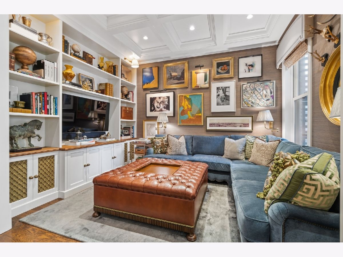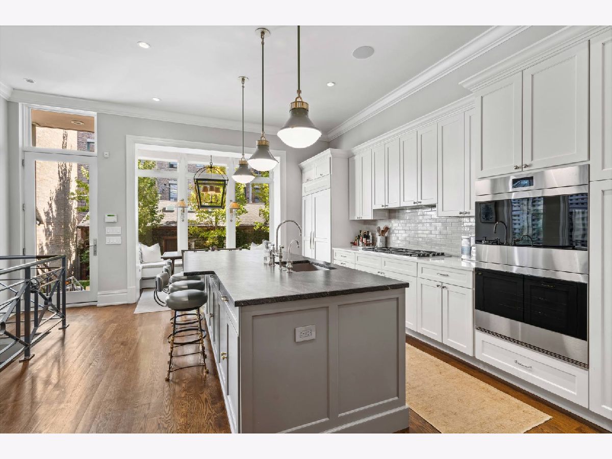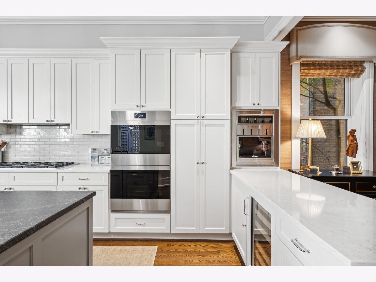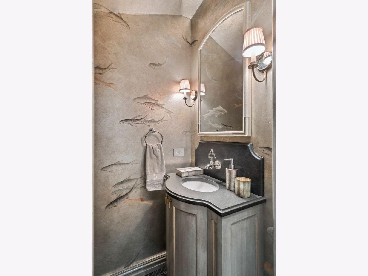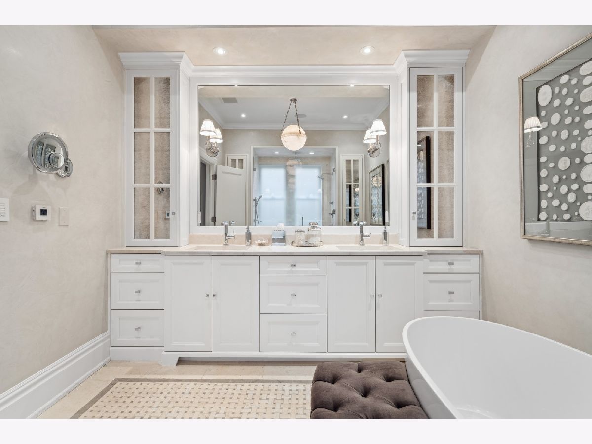Sophisticated, classic, and exquisitely designed, 2825 N. Cambridge Ave. is a 5000-square-foot, 5 bed/6 bath, completely renovated home located in Chicago's charming East Lakeview neighborhood sited on a rare 33' x 150' parcel. Expertly updated and appointed by the award-winning designers at James Thomas Chicago to preserve the home's vintage character while layering in first-class finishes and modern comforts, the main level begins with a traditional entry and foyer with two custom coat closets and a beautiful hand-painted wall treatment. Refinished original hardwood floors and seamless custom millwork details connect the main living and entertaining spaces - an elegant living room with a custom marble fireplace, a formal dining room with a built-in buffet, a hand-painted wall mural, and a silver leaf treatment on the ceiling, an inviting family room with a second fireplace, and a handsome den with a built-in media center and coffered ceiling. The chef's kitchen stuns with custom cabinetry, natural stone countertops, professional-grade appliances including a wine station, an island with counter seating, a walk-in pantry, and a sunlit breakfast area that overlooks the back patio and garden. Upstairs, the second level presents two exquisitely designed secondary bedrooms, one with a 16' x 4' private terrace with refreshed tile, and a spacious primary suite with a custom Venetian plaster finish, a deluxe dressing room, and a spa-like ensuite bath with a dual vanity, a deep soaking tub, a glass-encased shower, and a standalone water closet. The top level features a bespoke rec room with custom built-ins and a gaming table nook, plus a customized fitness room with a beverage center. Better still, the lower level boasts an expansive guest suite with a recently renovated kitchenette, a cozy den, two offices, a 1,200-bottle wine cellar, a craft room, a stylish mudroom with heated floors, and surplus custom storage. Plus, this gorgeous home has three meticulously hardscaped/landscaped outdoor spaces - a gated front yard with pretty pavers and mature trees, a 33' x 32' bluestone back patio with a built-in outdoor kitchen and exterior audio, and a side yard that runs the length of the house. (All greenery has been updated/refreshed, including the addition of a lattice wall on the side of the garage and house.) There's also a highly rare, oversized three-car garage with epoxy flooring. Additional callout details include custom window treatments throughout including automatic shades in all of the bedrooms, designer wallcoverings and light fixtures throughout, custom closets throughout, hand-painted wall murals in the dining room, hallway, and stairs, two design-forward powder rooms, updated lower level and second-floor laundry, state-of-the-art AV, security and irrigation systems, new landscape lighting, and a brand new roof. Effortlessly elegant, completely turnkey, and walking distance to the best of Lakeview and Lake Michigan, 2825 N. Cambridge Ave. is in a class of its own.