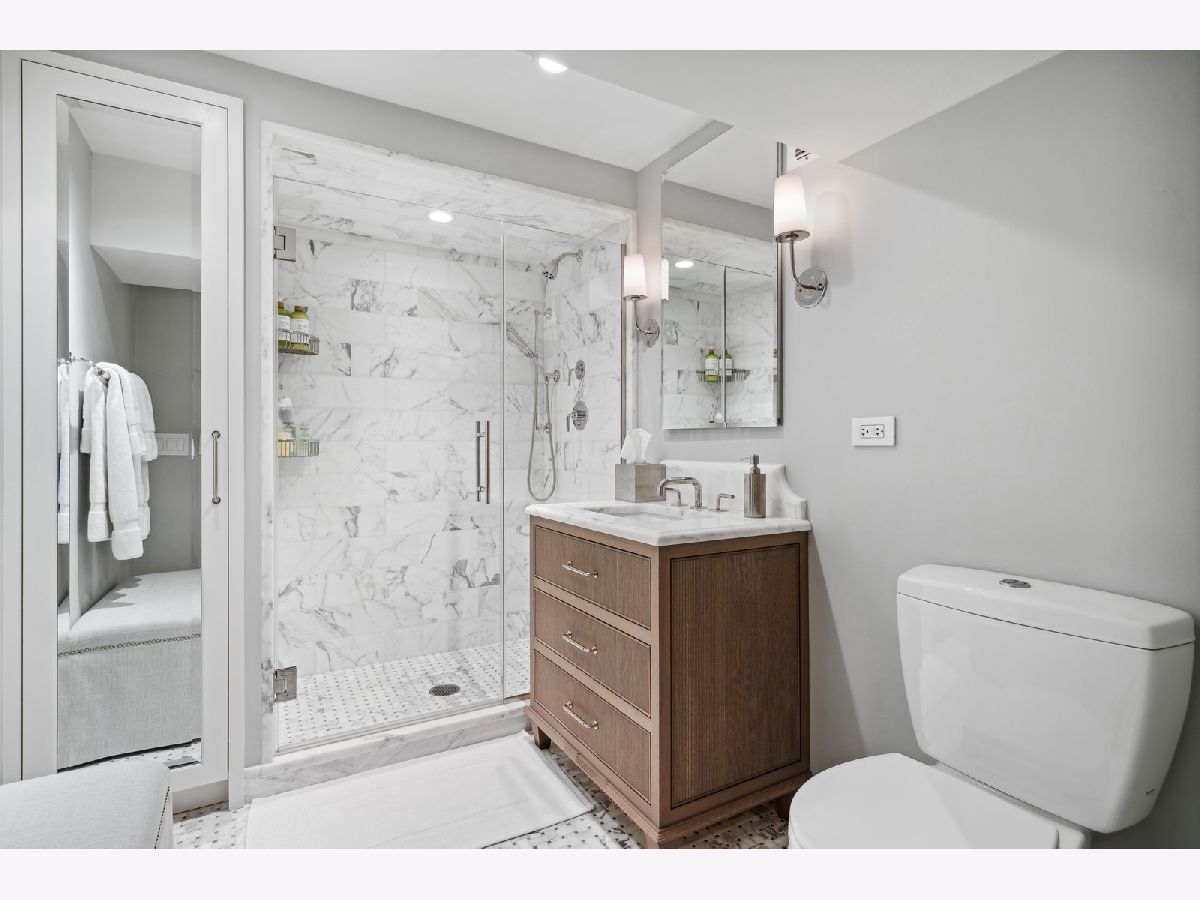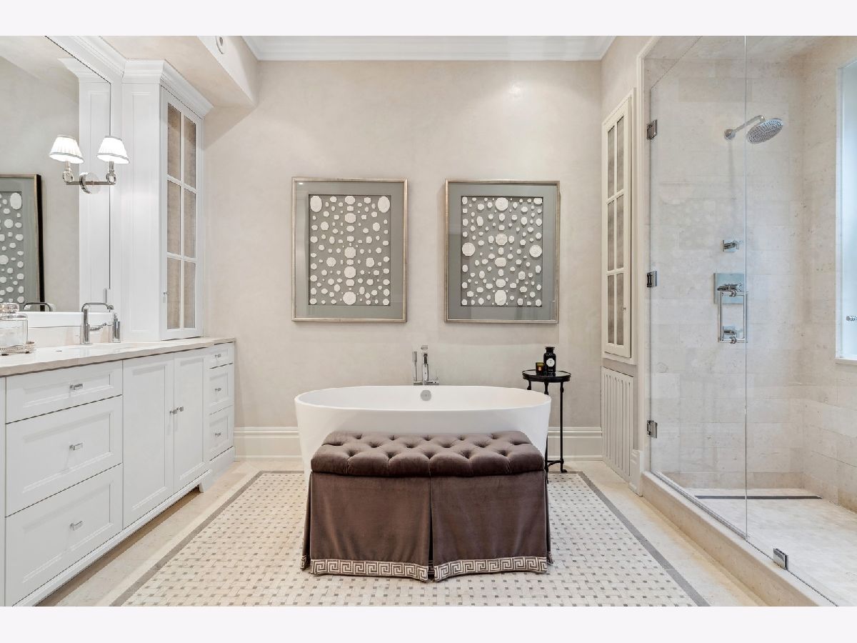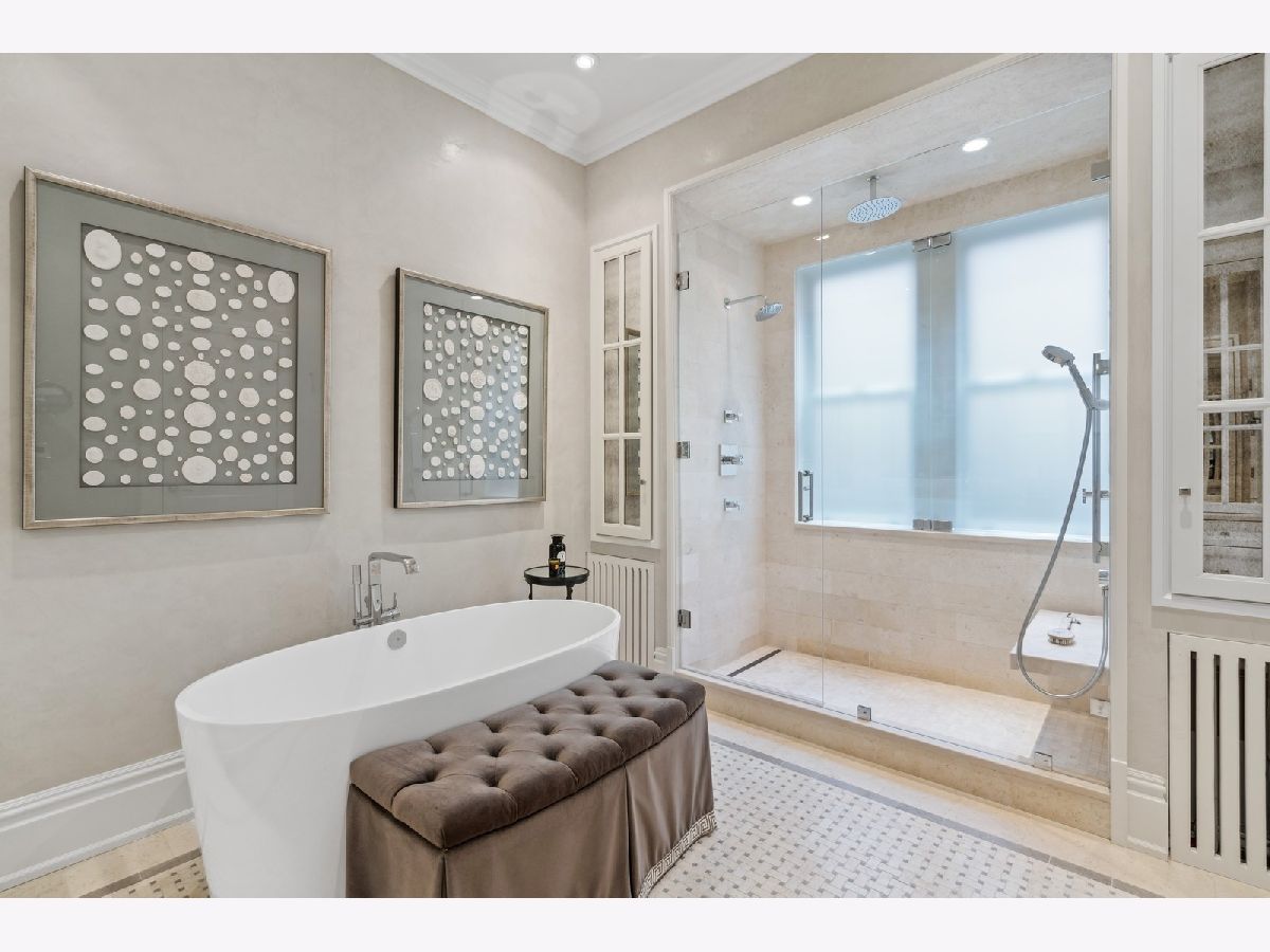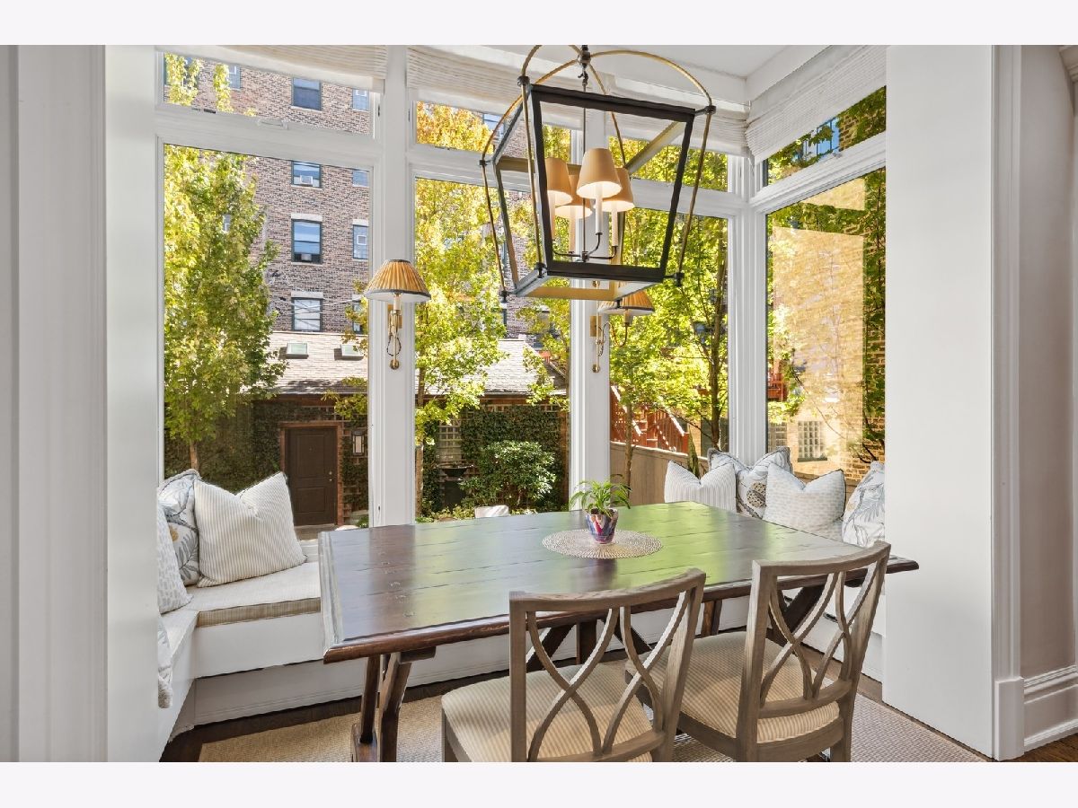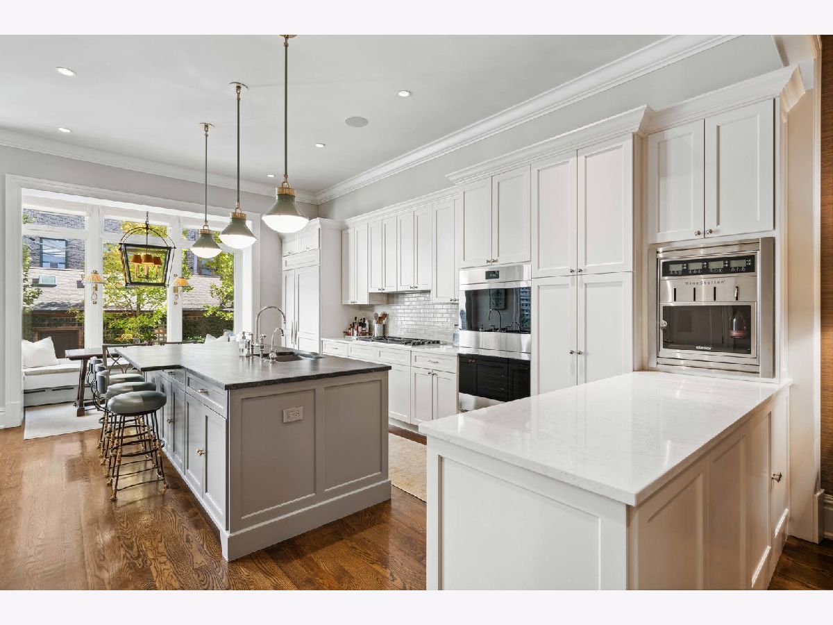 Sophisticated, classic, and exquisitely designed, 2825 N. Cambridge Ave. is a 5000-square-foot, 5 bed/6 bath, completely renovated home located in Chicago's charming East Lakeview neighborhood sited on a rare 33' x 150' parcel. Expertly updated and appointed by the award-winning designers at James Thomas Chicago to preserve the home's vintage character while layering in first-class finishes and modern comforts, the main level begins with a traditional entry and foyer with two custom coat closets and a beautiful hand-painted wall treatment. Refinished original hardwood floors and seamless custom millwork details connect the main living and entertaining spaces - an elegant living room with a custom marble fireplace, a formal dining room with a built-in buffet, a hand-painted wall mural, and a silver leaf treatment on the ceiling, an inviting family room with a second fireplace, and a handsome den with a built-in media center and coffered ceiling. The chef's kitchen stuns with custom cabinetry, natural stone countertops, professional-grade appliances including a wine station, an island with counter seating, a walk-in pantry, and a sunlit breakfast area that overlooks the back patio and garden. Upstairs, the second level presents two exquisitely designed secondary bedrooms, one with a 16' x 4' private terrace with refreshed tile, and a spacious primary suite with a custom Venetian plaster finish, a deluxe dressing room, and a spa-like ensuite bath with a dual vanity, a deep soaking tub, a glass-encased shower, and a standalone water closet. The top level features a bespoke rec room with custom built-ins and a gaming table nook, plus a customized fitness room with a beverage center. Better still, the lower level boasts an expansive guest suite with a recently renovated kitchenette, a cozy den, two offices, a 1,200-bottle wine cellar, a craft room, a stylish mudroom with heated floors, and surplus custom storage. Plus, this gorgeous home has three meticulously hardscaped/landscaped outdoor spaces - a gated front yard with pretty pavers and mature trees, a 33' x 32' bluestone back patio with a built-in outdoor kitchen and exterior audio, and a side yard that runs the length of the house. (All greenery has been updated/refreshed, including the addition of a lattice wall on the side of the garage and house.) There's also a highly rare, oversized three-car garage with epoxy flooring. Additional callout details include custom window treatments throughout including automatic shades in all of the bedrooms, designer wallcoverings and light fixtures throughout, custom closets throughout, hand-painted wall murals in the dining room, hallway, and stairs, two design-forward powder rooms, updated lower level and second-floor laundry, state-of-the-art AV, security and irrigation systems, new landscape lighting, and a brand new roof. Effortlessly elegant, completely turnkey, and walking distance to the best of Lakeview and Lake Michigan, 2825 N. Cambridge Ave. is in a class of its own.