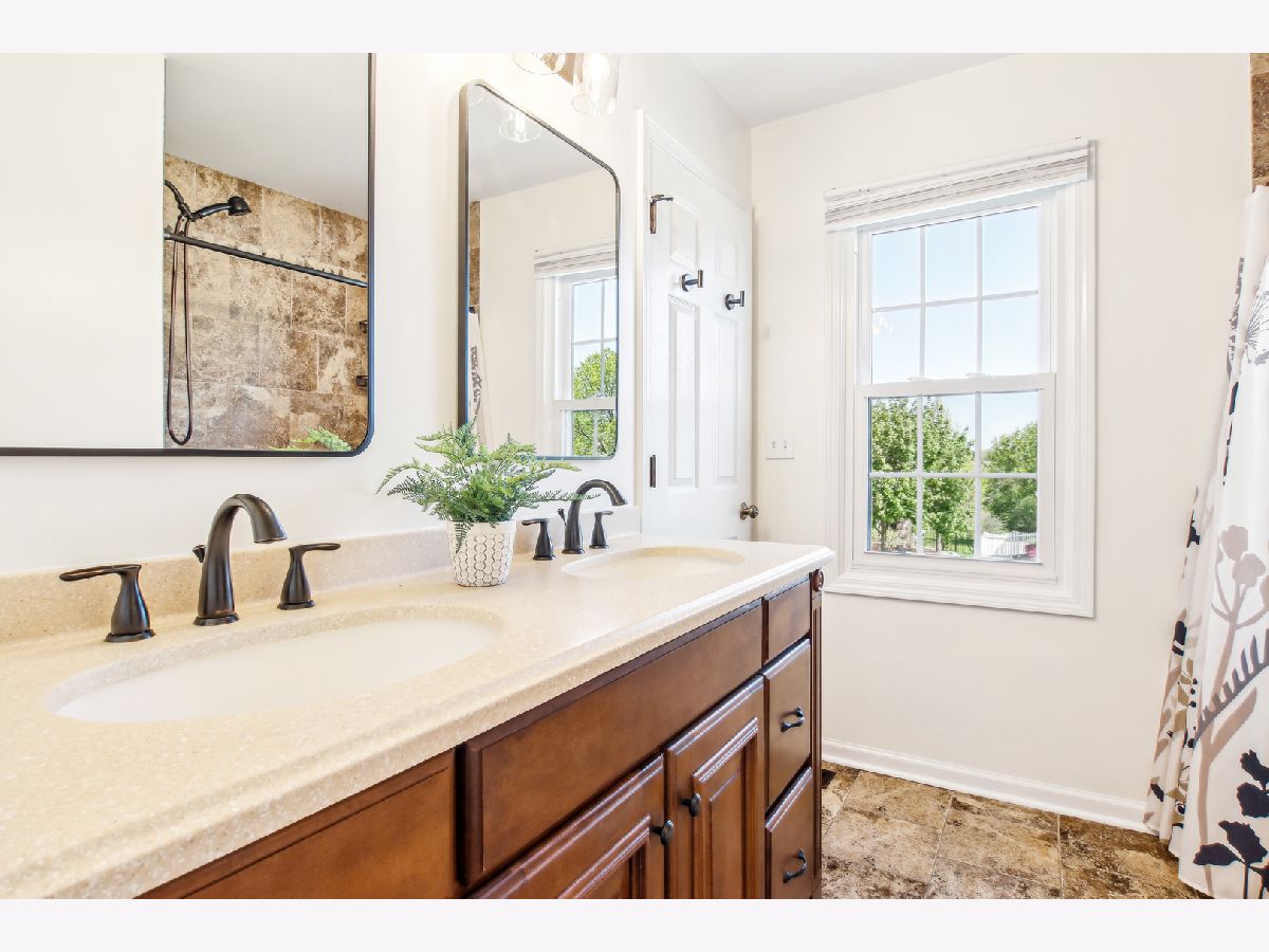 Beautifully maintained two-story home in sought-after Randall Ridge and top-rated District 301 featuring a welcoming front porch and sun-filled entry foyer flanked by a bright living room, an open-concept family room, breakfast area, and kitchen with espresso cabinets, abundant counter space, and stainless steel appliances-perfect for modern living and entertaining; a formal dining room adds elegance for special occasions while the breakfast room opens to a patio and fully fenced yard with mature landscaping and trees, creating a peaceful outdoor retreat; main floor also includes a convenient powder room; upstairs you'll find three spacious bedrooms and two full baths including a serene primary suite with a walk-in shower, dual sinks, and a large closet; the finished lower level offers flexible space for work, play, or guests, plus a dedicated laundry and storage/utility room-note, laundry could be relocated to the kitchen pantry space if desired; additional features include a large two-car garage, built-in storage shed, newer HVAC (2021), hot water heater (2021), brand new windows, microwave, stove, and dishwasher (2025), and roof (2005); all in a prime location just minutes to Randall Road shopping, dining, I-90, Rt 20, schools, parks, 35 minutes to O'Hare and about an hour to downtown Chicago!