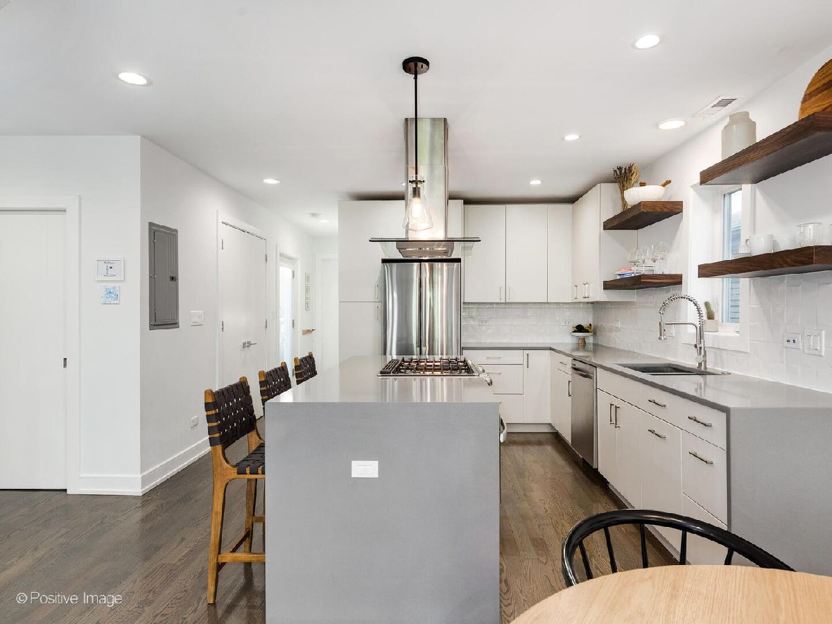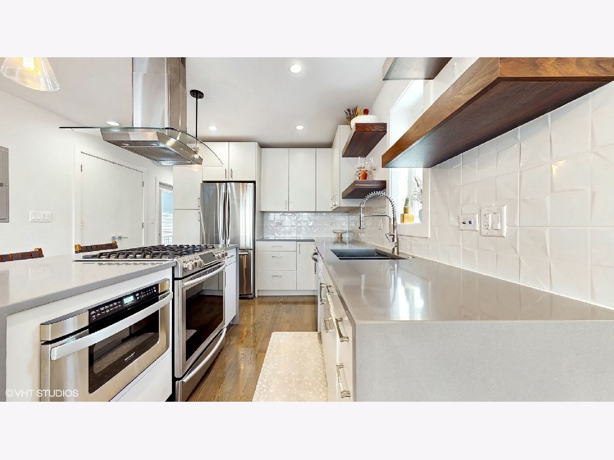 Gorgeous Avondale Duplex-Up in 2 unit building! This light filled, 2 floor unit, lives like a single family home. Superior style and finishes in this newer construction. Large living room open to kitchen with custom 42" cabinets, quartz countertops and subway backsplash with top-of-the-line stainless steel appliance package. Your primary suite features a spa-like private bath and generous closet space. 2 additional bedrooms upstairs with a nicely sized second full bathroom. Private roof top deck as well as huge (shared) paver patio. Von Linne school district. Walk to public transportation and all that Avondale and Logan Square have to offer.