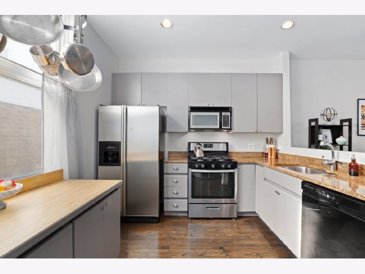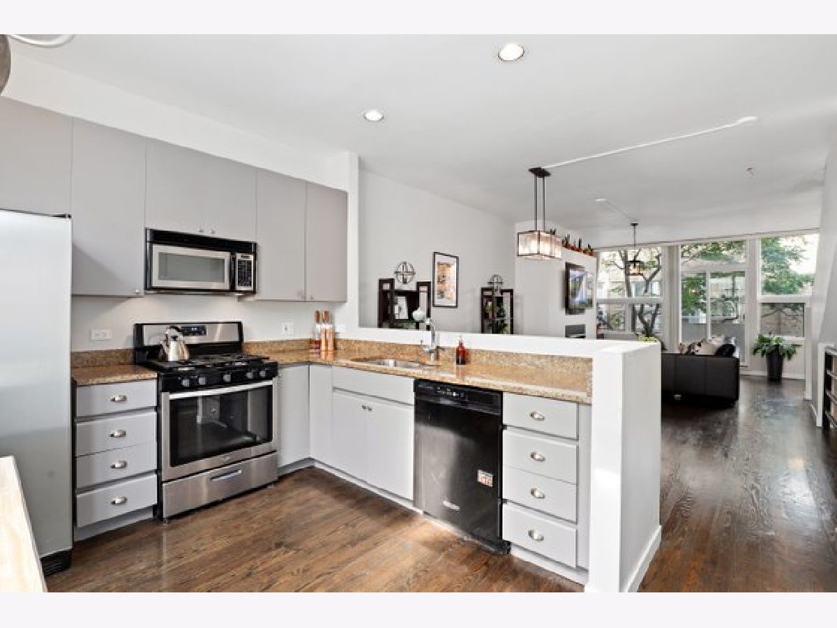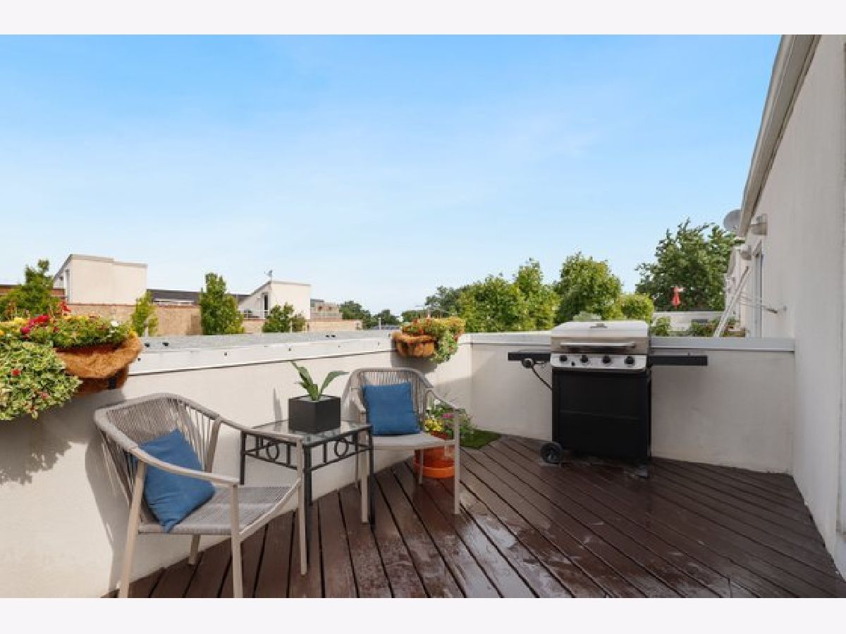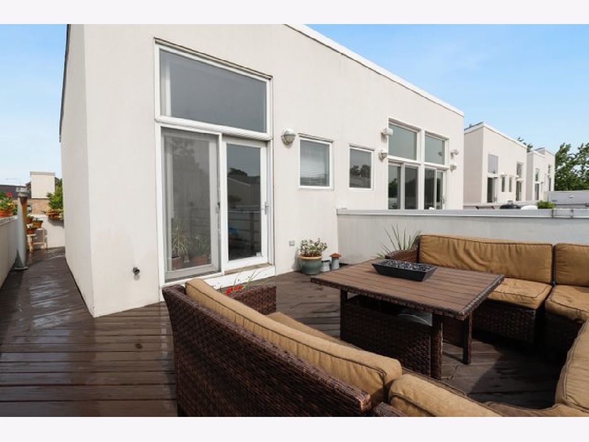 Located in a private gated courtyard community, gorgeous and spacious townhome with 3 bedrooms and 2 1/2 baths. Enjoy summer nights on large wraparound deck. Perfect for entertaining! Attached one car garage leads to open foyer and third bedroom. 2nd level offers open-concept living, kitchen with granite counters, 42" grey cabinets, stainless appliances and breakfast bar opens to living/dining area with gas fireplace, balcony and powder room. 3rd level with generously sized master bedroom and master bath with walk-in shower and second bedroom and bath with jaccuzi tub. Top floor features flexible space perfect for an office, family room or den with easy access to rooftop deck. Home features dark hardwood floors throughout, in-unit side-by-side washer/dryer, plenty of storage in garage, digitial thermostat and LED lights throughout. Great location - easy access to expressway and public transportation, minutes to Logan Square, Roscoe Village, shops, restaurants and more!
