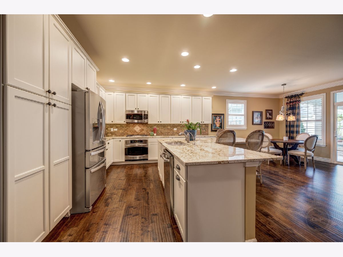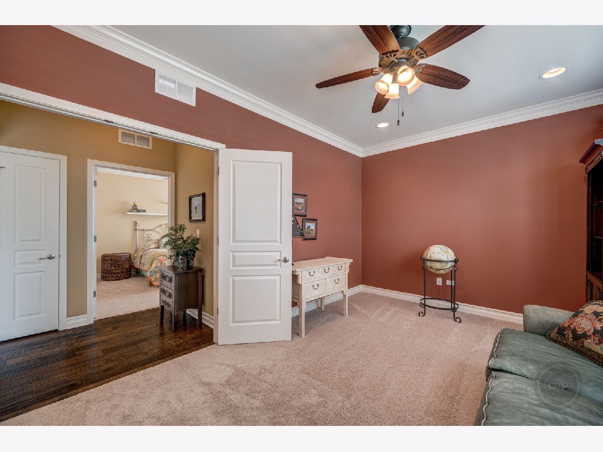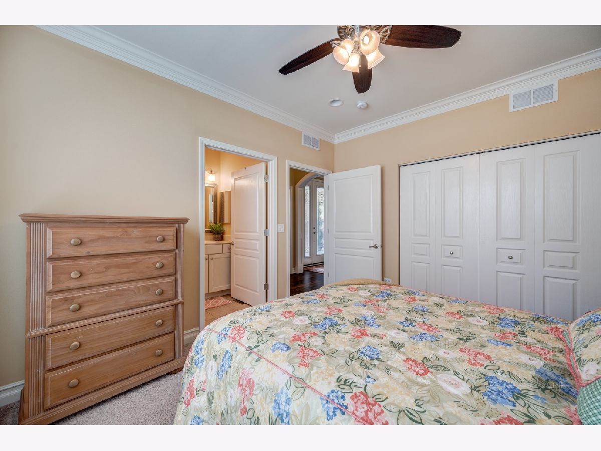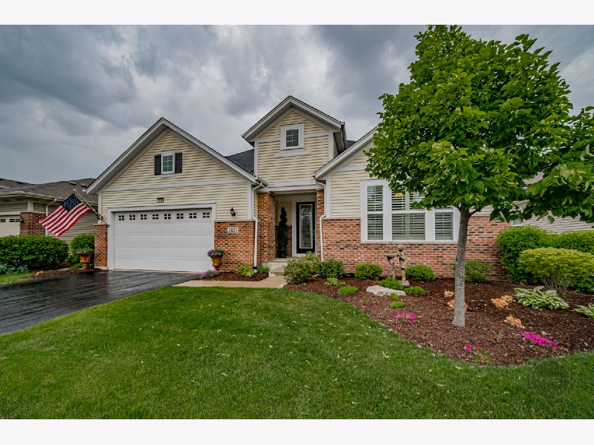 Sold before processing standard listing. 55 + age Carillon Club of Naperville, Secured Gated Community. Clubhouse with fitness center and indoor pool. Outdoor Pool, tennis courts, 3 hole golf course, serene ponds & walking paths. Indoor Activities and more. Smithsonian Model that has been Renovated and Modernized for Comfortable and Elegant living. 2 Bedrooms Plus Den and 3.5 baths(1 outstanding full spacious bath with complete tiled shower and accent design in the finished basement). Main living area is 2,572 sq. ft. and the basement that was finished by Owners is a total of 1,756 sq. ft.(1 spacious utility & storage room and 1 soaring closet with shelving is included in the basement sq. ft.). Lead glass design front door & sidelites. Gorgeous open floor plan with elevated ceilings. Neutral paint surroundings and white accent wood work. White Plantation shutters, white wider trim and moldings, white Paneled Arch foyer & arch trimmed master bedroom entry & white kitchen cabinetry. Stunning, staggered wide plank dark hardwood flooring. Outstanding Granite kitchen counters and full tile back splash. Stainless steel appliances; Brand new Refrigerator. Extraordinary chic custom draperies included. Plenty of recessed lighting and generous sized windows through out the home. Decorative lighting and ceiling fans with lighting through out home. Rooms include dining room, den, 2 bedrooms, family room with beautifully designed stone gas fireplace and mantel and kitchen with dining area adjacent to patio. Retreat Master suite bathroom has soaking tub, separate shower, and generous dressing area with double sink vanity. Home offers Higher height bathroom vanities. Exceptional closet plans through out the home. Laundry room with laundry sink vanity and cabinetry. Humidifier. 50 gallon water heater. Entertaining, privacy landscaped backyard with recent sealed oversized brick paver patio and overhead electric retractable awnings. Sprinkler system. 2 car garage with Epoxy coated floor finish.