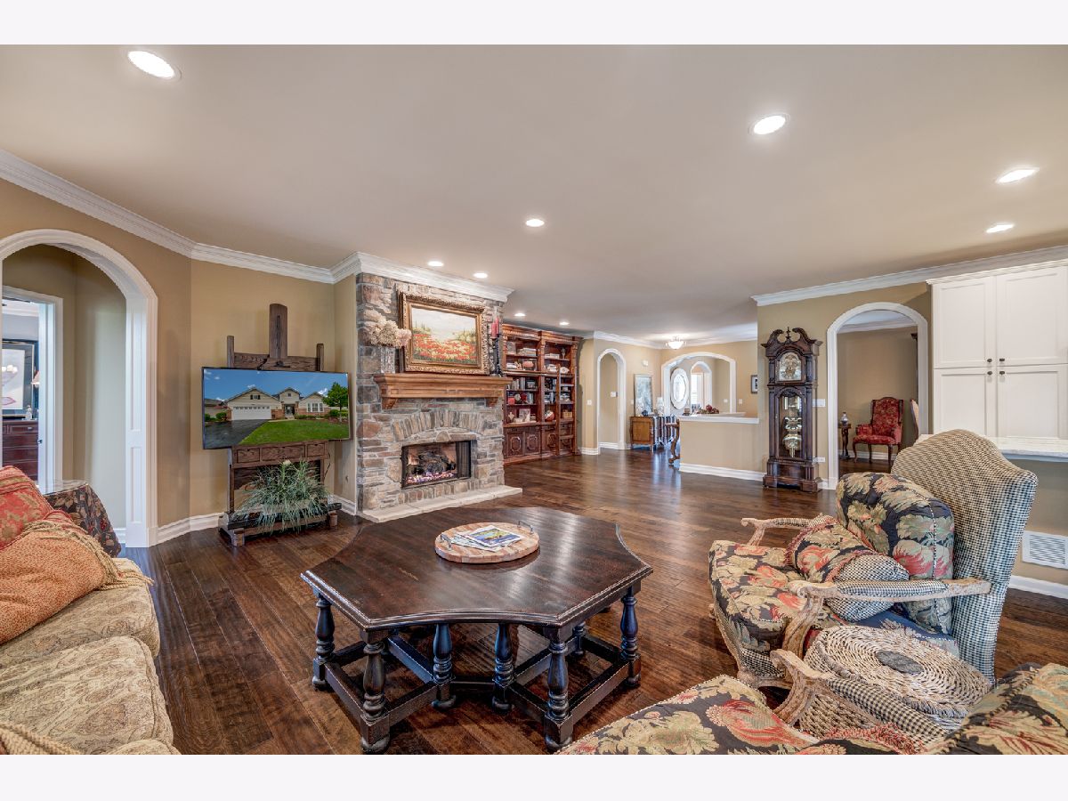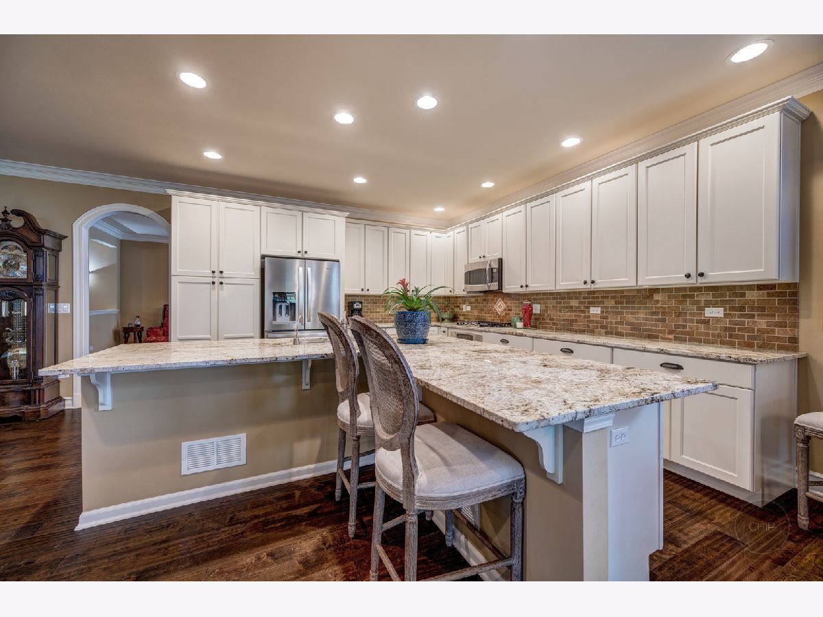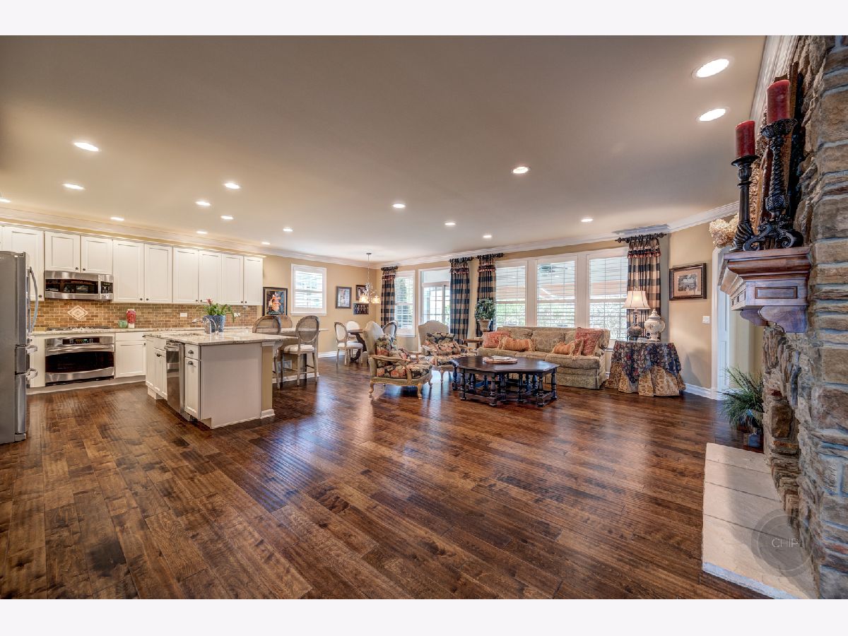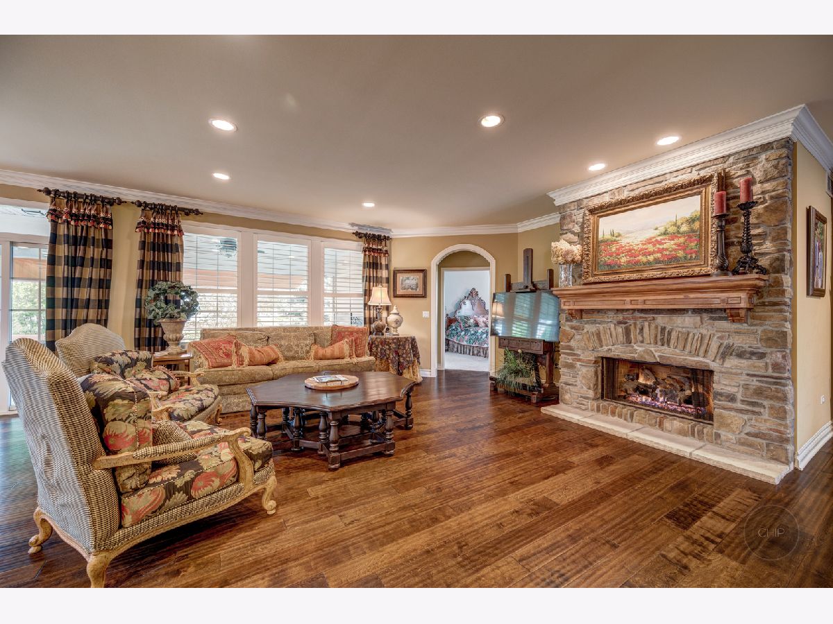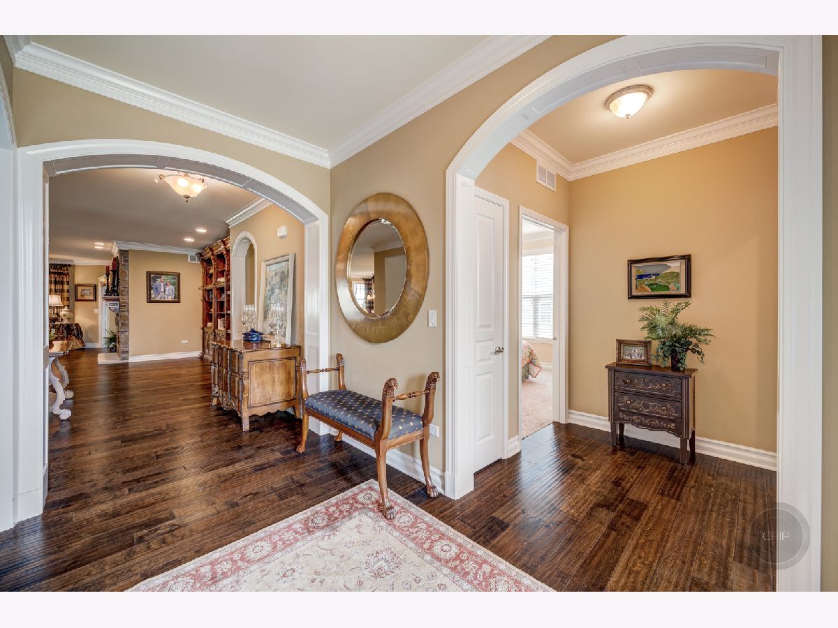 Sold before processing standard listing. 55 + age Carillon Club of Naperville, Secured Gated Community. Clubhouse with fitness center and indoor pool. Outdoor Pool, tennis courts, 3 hole golf course, serene ponds & walking paths. Indoor Activities and more. Smithsonian Model that has been Renovated and Modernized for Comfortable and Elegant living. 2 Bedrooms Plus Den and 3.5 baths(1 outstanding full spacious bath with complete tiled shower and accent design in the finished basement). Main living area is 2,572 sq. ft. and the basement that was finished by Owners is a total of 1,756 sq. ft.(1 spacious utility & storage room and 1 soaring closet with shelving is included in the basement sq. ft.). Lead glass design front door & sidelites. Gorgeous open floor plan with elevated ceilings. Neutral paint surroundings and white accent wood work. White Plantation shutters, white wider trim and moldings, white Paneled Arch foyer & arch trimmed master bedroom entry & white kitchen cabinetry. Stunning, staggered wide plank dark hardwood flooring. Outstanding Granite kitchen counters and full tile back splash. Stainless steel appliances; Brand new Refrigerator. Extraordinary chic custom draperies included. Plenty of recessed lighting and generous sized windows through out the home. Decorative lighting and ceiling fans with lighting through out home. Rooms include dining room, den, 2 bedrooms, family room with beautifully designed stone gas fireplace and mantel and kitchen with dining area adjacent to patio. Retreat Master suite bathroom has soaking tub, separate shower, and generous dressing area with double sink vanity. Home offers Higher height bathroom vanities. Exceptional closet plans through out the home. Laundry room with laundry sink vanity and cabinetry. Humidifier. 50 gallon water heater. Entertaining, privacy landscaped backyard with recent sealed oversized brick paver patio and overhead electric retractable awnings. Sprinkler system. 2 car garage with Epoxy coated floor finish.