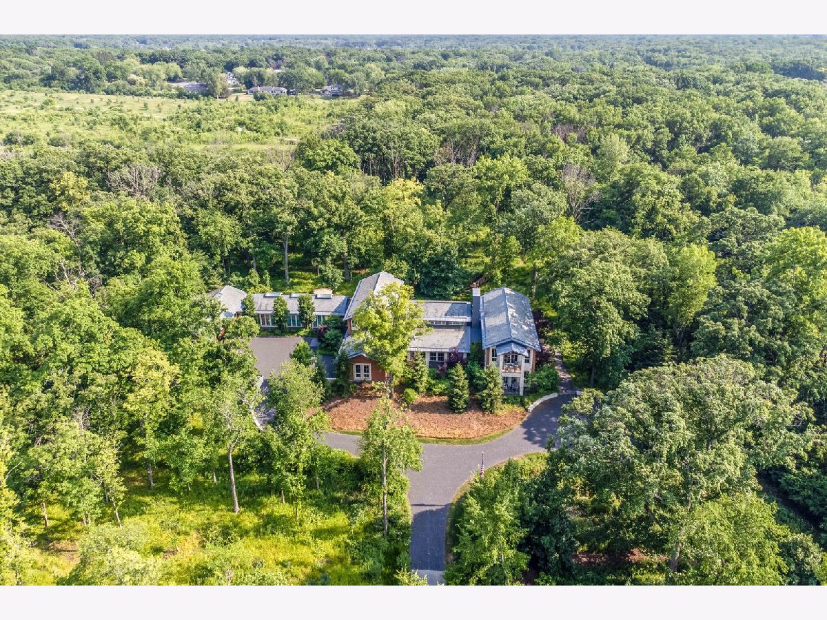 Architectural Elegance Meets Natural Harmony in Larry Booth Sanctuary nestled at the end of a private lane on 4.2 wooded acres, The Wooddale embodies artistry, functionality, and tranquility - a signature of Booth's work. Seamlessly integrated with the native landscape adjacent to the Old School Forest Preserve, it offers an extraordinary local home or weekend retreat.This stunning 4+ bedrooms, 6.3 bath retreat was designed to integrate natural light through strategic use of windows, skylights and innovative ceiling geometries. Highlights include: extraordinary open extended kitchen/living space, exceptional sunroom, multiple patios and balconies, a private first floor suite, golf simulator/theatre room plus an adjacent fully appointed workshop/art studio and exceptional mudroom and dog spa. The primary suite wing integrates all the creature comforts effortlessly with nature. The residence boasts advanced technological integrations, including comprehensive media automation, a robust geothermal heating and cooling system, elevator, heated motor court and above grade recreational suite underscoring its commitment to modern comfort and convenience. An attached pool house, indoor pool, outdoor spa and meandering walking paths with approximately 69,000 plants and trees orchestrated by Heidi Natura. Structural hardscapes introduce architectural intentionality amidst the organic surroundings, creating a holistic living experience. It's more than a dwelling; it's a carefully curated experience. Zoned for four horses. Enjoy the serenity of your own private botanical oasis, all while being close to the vibrant Libertyville lifestyle: shops, dining, several golf courses, and a quick drive to Chicago!