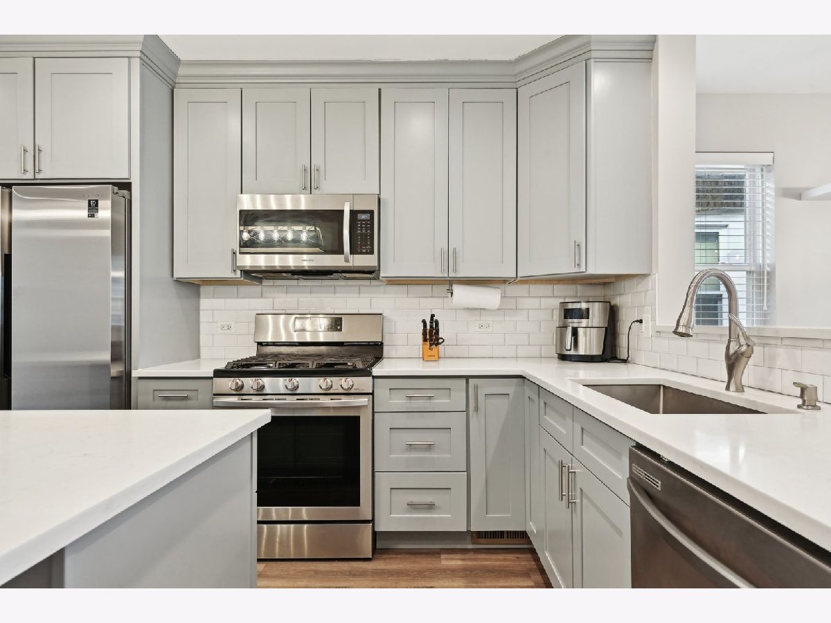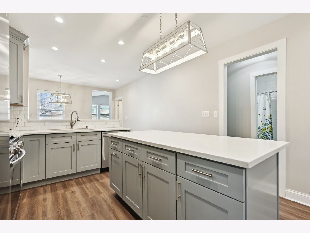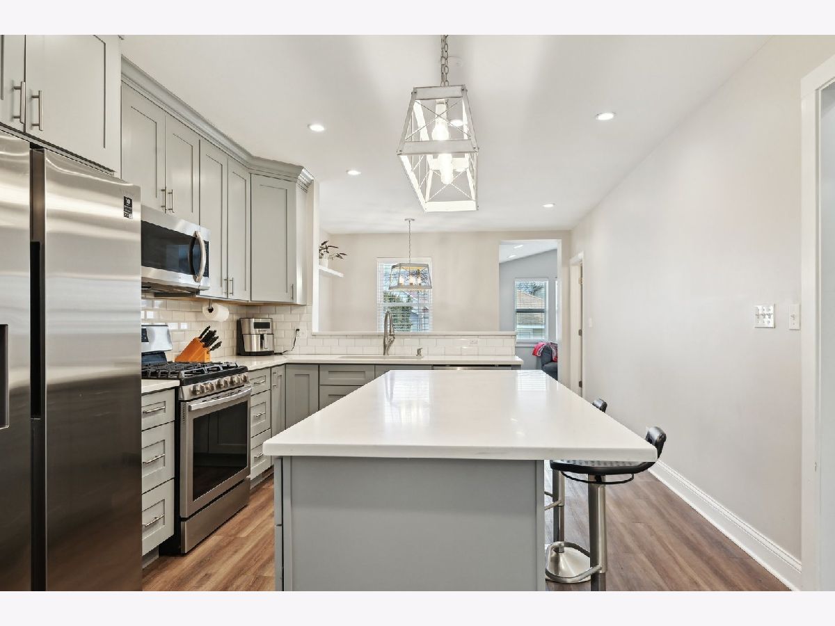 Welcome home to this beautifully updated, move-in-ready, 3-bedroom house that was completely renovated in 2021. With less than 5 years of age to the updates, this home has so much to offer. Enter through the spacious sunroom or sitting area, adorned with an abundance of natural light. As you make your way to the chef's kitchen, you will notice the modern stainless steel appliances, solid surface stone countertops, subway tile backsplash, recessed can lighting, high-end shaker-style cabinets with crown molding, spacious island, a large pantry, an under-mount sink, and designer plumbing fixtures. The open-concept kitchen seamlessly flows into the dining room large enough to host your dinner parties and the back living room, which features vaulted ceilings and additional can lighting. On the main level, you will find two spacious bedrooms with sizable closets and one and a half bathrooms. The luxury vinyl plank flooring adds to the elegance of the main floor and finished basement along with recessed lighting throughout the home. All major components, including windows, furnace, AC, power vent water heater, electrical system, decking, and doors, were updated in 2021. The fully finished lower-level basement (walk-out) includes a large living space, an additional third bedroom, and a bathroom, along with a bonus laundry/utility room that is spacious enough for a large side-by-side washer and dryer. Did I mention tons of closet/ storage space! The home was waterproofed in 2023. The unfinished walk-up attic is ready for your ideas and is large enough for a primary bedroom suite. This property also boasts a two-car garage and a comfortable backyard with a stamped concrete patio and new fence in 2023. Light and bright, this home is truly a delight! It is conveniently located near parks, North Branch Trails, Brickyard Mall, transportation, and more! Come make this your home today!
