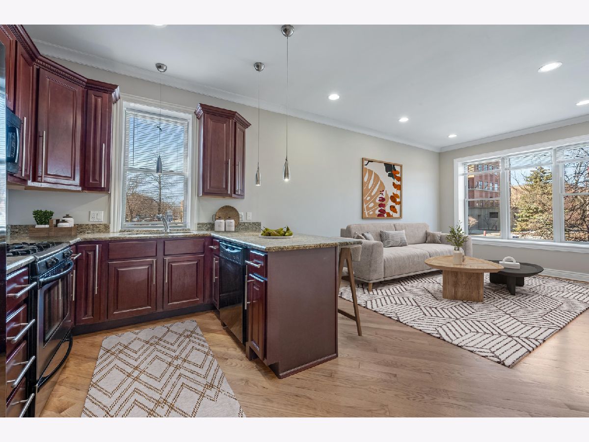 Spacious and move-in ready duplex-down offering approximately 1,700 square feet of comfortable living space! This well-maintained 3-bedroom, 2.1-bath condo features a flexible floor plan with freshly painted interiors throughout. The main level includes a bright living room, a well-appointed kitchen with 42" cabinetry, granite countertops, and a breakfast bar, plus a convenient powder room. The primary bedroom with a private full bath is also located on the main level. Newly refinished hardwood floors add warmth and character throughout this level. The lower level provides additional living space, perfect for relaxing or entertaining, along with two bedrooms featuring brand-new carpet, another full bathroom, and a laundry closet. Easy street parking and a convenient location close to dining, nightlife, and all that Humboldt park has to offer! Freshly painted and truly move-in ready! Investor friendly.