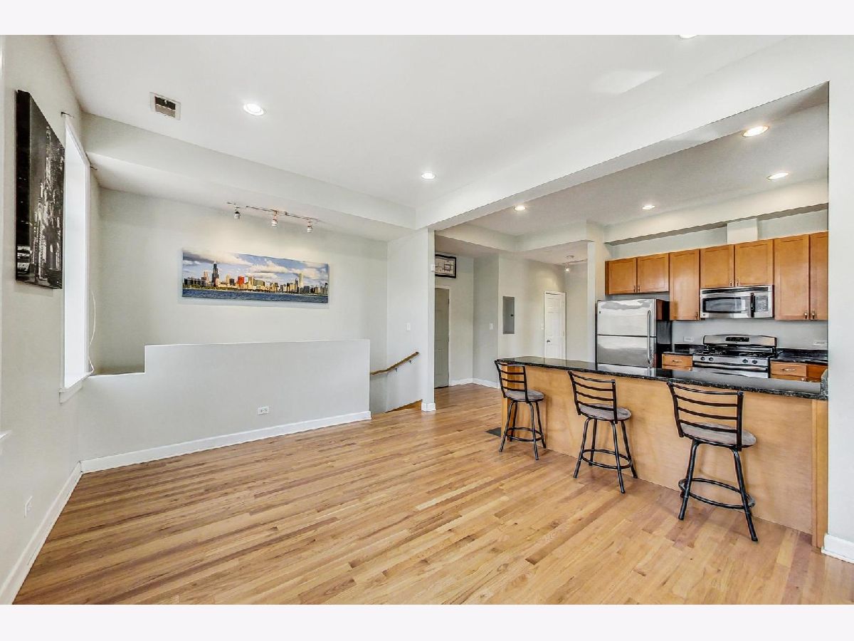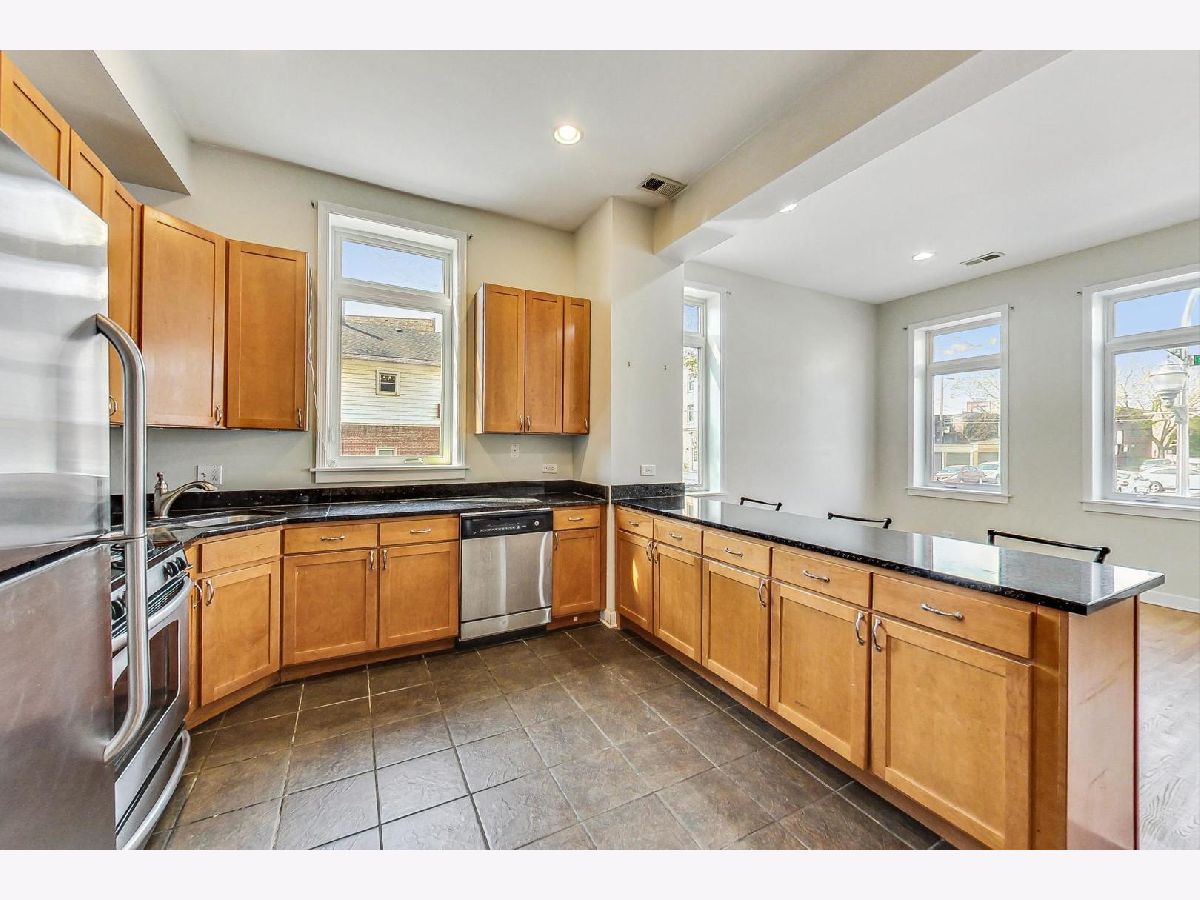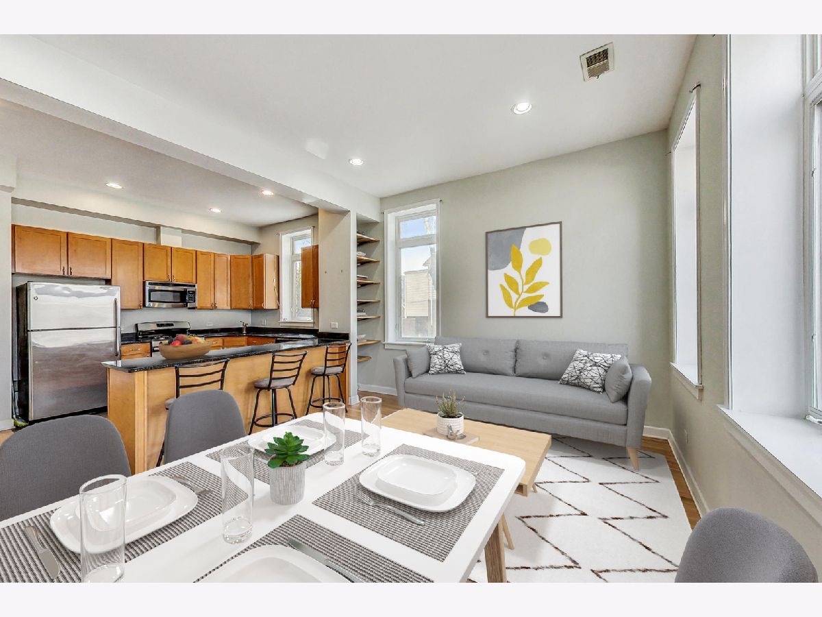 Step into a world of style and convenience with this 3 bedroom/ 2bathroom duplex-down, ideally located in the vibrant Bridgeport/Armour Square area. This home showcases an open floor plan bathed in an abundance of natural light that floods the main living space and newly redone hardwood floors that enhance the sense of space and luxury upstairs. As you explore further, the stunning chef's kitchen awaits, designed to inspire culinary creativity with its 42" maple cabinets, stainless steel appliances, and granite countertops. The living space flows seamlessly from the kitchen, making it perfect for entertaining or relaxing evenings at home. Three generously sized bedrooms offer tranquil retreats for relaxation and privacy, complemented by ample closet space throughout the home-ensuring that storage is never a concern. Indulge in the spa-like ambiance of two full bathrooms, each featuring elegant marble tiling. Downstairs, beautifully tiled floors leading into the 2nd and 3rd bedroom add elegance to the additional living areas. This unit doesn't just promise beauty but also practicality, with central heating and air conditioning and in-unit laundry ensuring year-round comfort. Perfectly positioned minutes from I-90/94 and I-55 and a short walk from the Sox-35th Red Line stop, this duplex offers easy access to the city's best, placing you at the heart of it all. One exterior parking spot for additional $25,000.