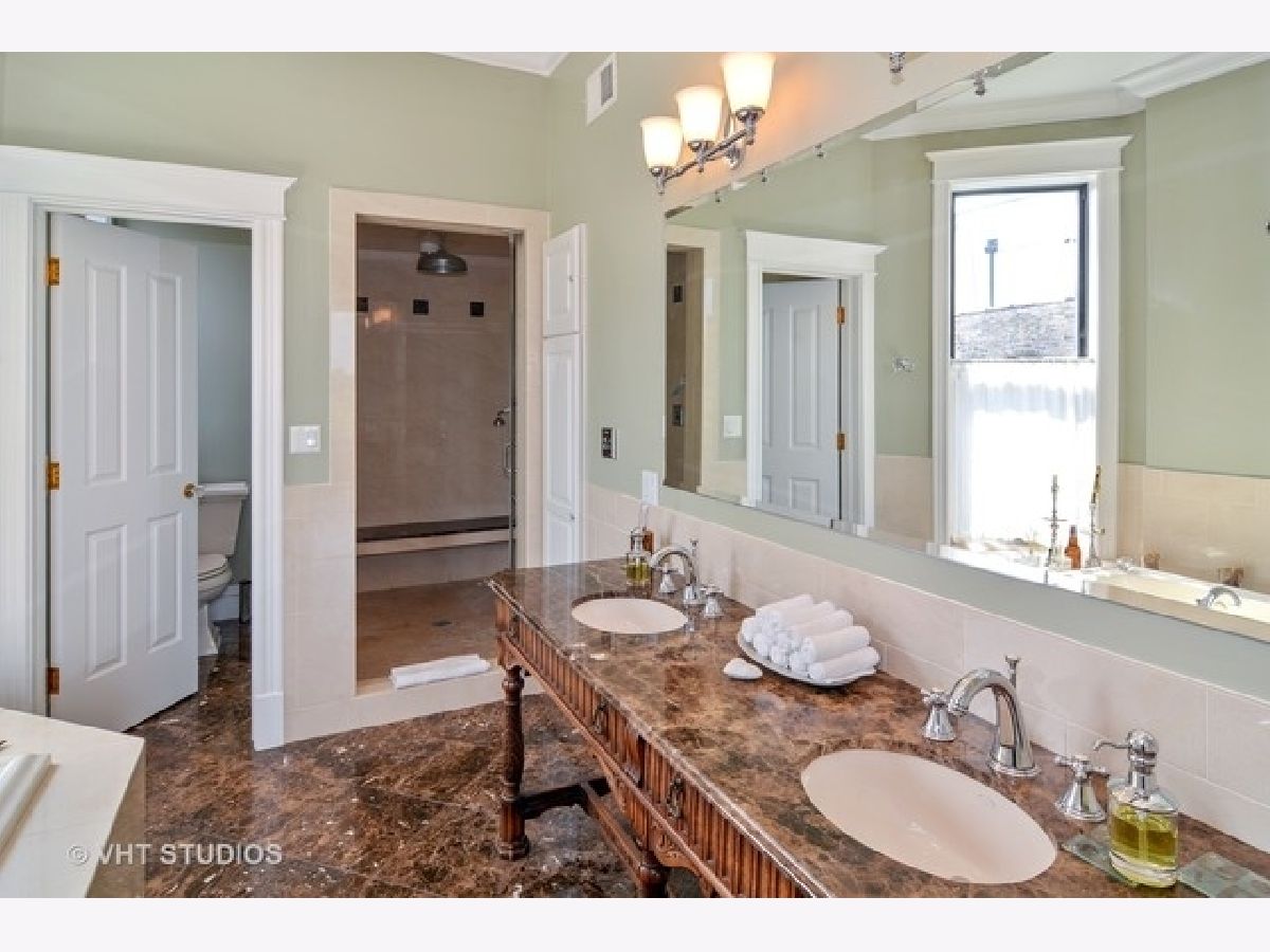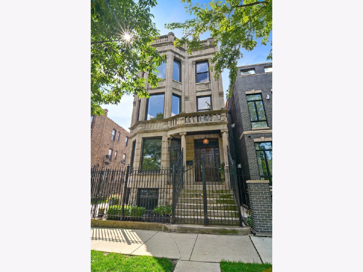 ~Graceful historic greystone single family house~ Fully renovated recently by a local artist/developers with craftsman taking great attention to every feature. Classic details were restored while the home was updated with all modern amenities and rich finishes. There is a great flow and functionality of living and dining spaces with large rooms due to the building width and lot size. The kitchen features commercial grade appliances, island, pantry and a bright exposure. There are five generously sized bedrooms all with walk-in closets, and five serene baths with fine materials. The grand master suite is an oasis overlooking trees from the building's original era. Check out the twin stairways, large office, exercise room, plus two balconies and patio which extend the interior to outdoors. Generous windows gather bright natural light from all exposures. A secured yard with an electric gate opens to the reclaimed Maxwell Street granite paved driveway. There are plenty of options for a home work space-one of the large bedrooms, part or all of the finished lower level, or the separate coachhouse. The additional separate brick coachhouse has two updated apartments which are separately utility metered, have gas furnaces and central air, and are ideal for rental income, related living, or for the perfect work-from-home arrangement. The coachhouse basement contains its mechanical equipment and has endless storage space. The house is across the street from your 200 acre front yard, Humboldt Park, close to the playground, tennis courts, Boathouse, Fieldhouse, pool, gardens, lakes, and Cubs field. Around the corner from popular Rootstock, Spinning J Bakery, Cafe Marie Jeanne, and more. Available for in-person viewing or we are happy to accommodate a personalized virtual tour of the property