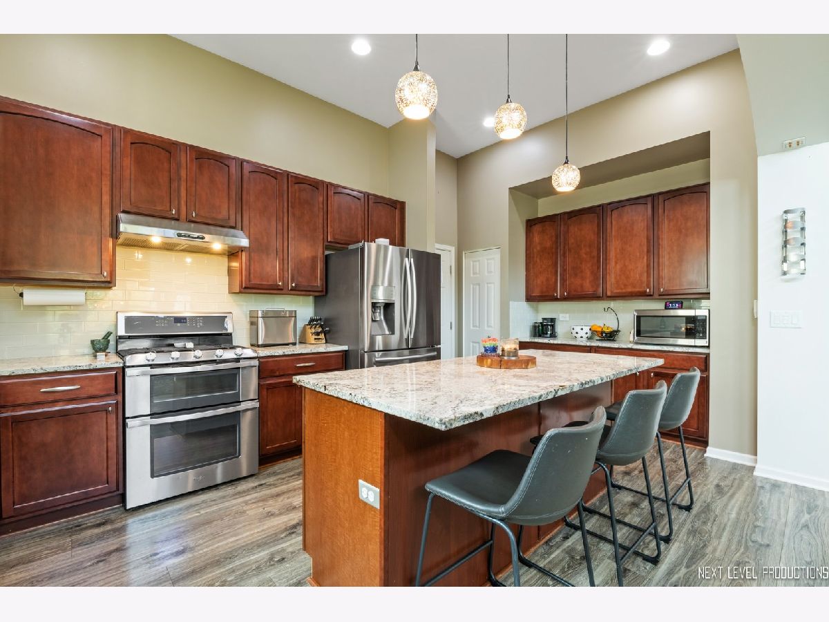 Offers received. HIGHEST AND BEST DUE SUNDAY 8 PM. DECISION to follow no later then Monday at noon. Discover your NEW lifestyle in this Grand Reserve Colonies 3 Bedroom/2.5 Bath home on a serene Cul-De-Sac with adjacent greenspace with a stylish brick paver patio that has been updated for today's living. FIRST FLOOR primary bedroom with EN-SUITE bath, WIC, soaker tub and walk-in shower. This home has been lovingly and thoughtfully updated incorporating many modern touches including NEWER entry bath, NEWER luxury vinyl floors and 20-foot vaulted family room. You'll want to linger in the bright and dramatic open living space while the neutral colors and chic laminate floors with an open concept kitchen will provide a contemporary feel. The guests will gather in your UPDATED chef's kitchen which showcases SS appliances, granite counters, wine fridge, subway tile, recessed lighting and large island perfect for extra storage. The captivating dining space overlooks the private backyard and is ideal for Sunday dinner. The backyard invites your imagination for peaceful relaxation, grilling, and outdoor entertaining - expands your living space in warm weather. Den/Office is fitting for a quiet reading space or a quick zoom call. A convenient FIRST-floor laundry room helps with ease of organization. The 2-car garage completes the main level. The second floor features 2 considerable bedrooms and a FULL bath to share. Make your way to the BASEMENT with space to redesign and make your own with additional 2 FINISHED rooms equipped with a home gym and craft space. Close to Orchard Rd, shopping, and downtown Oswego. NEWER windows (2020), NEWER entry bath (2020), NEWER office flooring (2020) and much more. HOA manages landscaping and snow removal so you don't have to lift a finger.