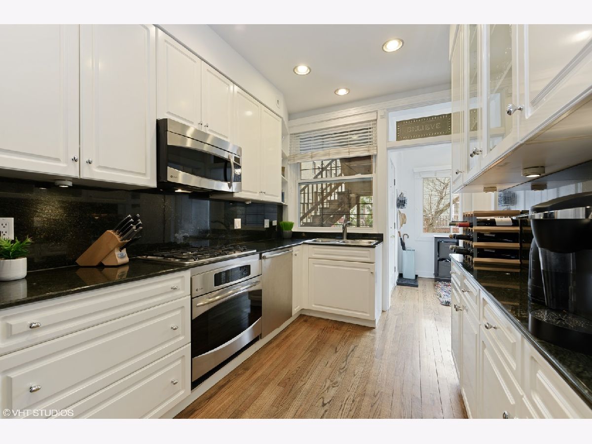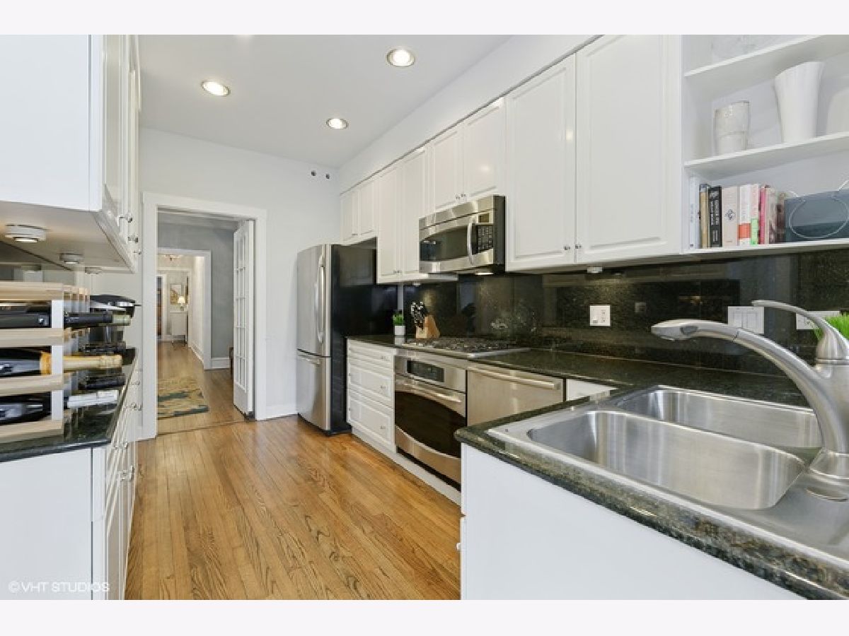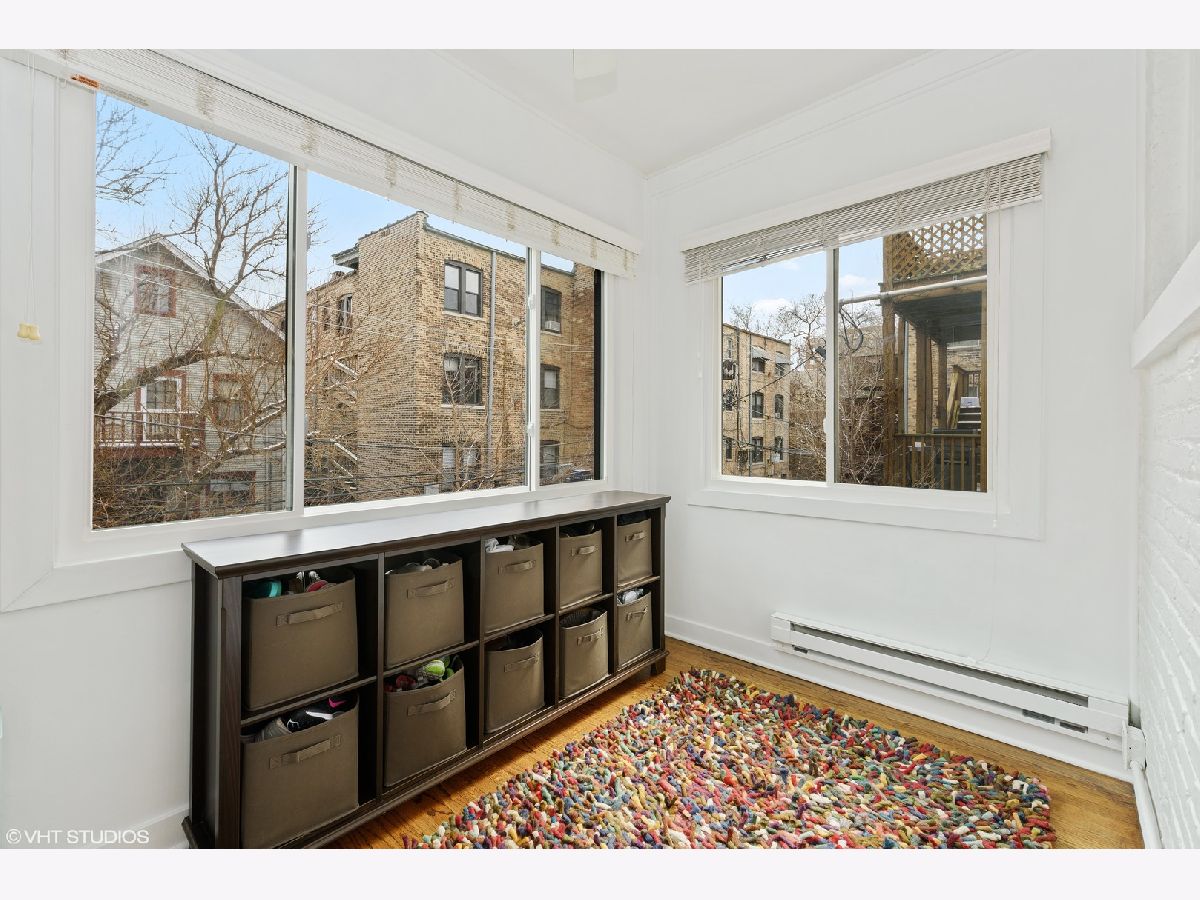 Enjoy the best that Lakeview and Lincoln Park have to offer in this beautifully updated 2 bed/2 bath + Office condo! Nestled on a quiet tree-lined street with the added bonus of Alcott schools and a one car garage. Vintage charm blending modern amenities with tall ceilings, crown molding, upgraded light fixtures, rich hardwood floors and private balcony. Sleek white kitchen boasts 42" cabinets, granite counter tops, stainless steel appliances, glass inlaid cabinet doors and undermount lighting. Shared full bath completely renovated with new pipes, marble flooring and surround tile, toilet, vanity and Kohler fixtures. Half bath converted to full bath starring glass enclosed tile shower, granite floors, pedestal sink, toilet and Kohler fixtures. Spacious living room faces west and is complimented with a private balcony! In unit washer/dryer and a versatile four season's room that can be a mudroom, extra eating area or just a private retreat with tons of natural light. Custom closets and shelving is the little extra detail that everyone will appreciate! Value improvements include SpacePak (2014), windows in four season's room (2020) and all windows newer double pane. .4 miles to the Purple and Brown line and walk to Trader Joe's, Starbucks, restaurants, pubs, shops, schools and parks. Reviewing the checklist: garage parking, large storage unit and pet friendly building - all present and accounted for here!