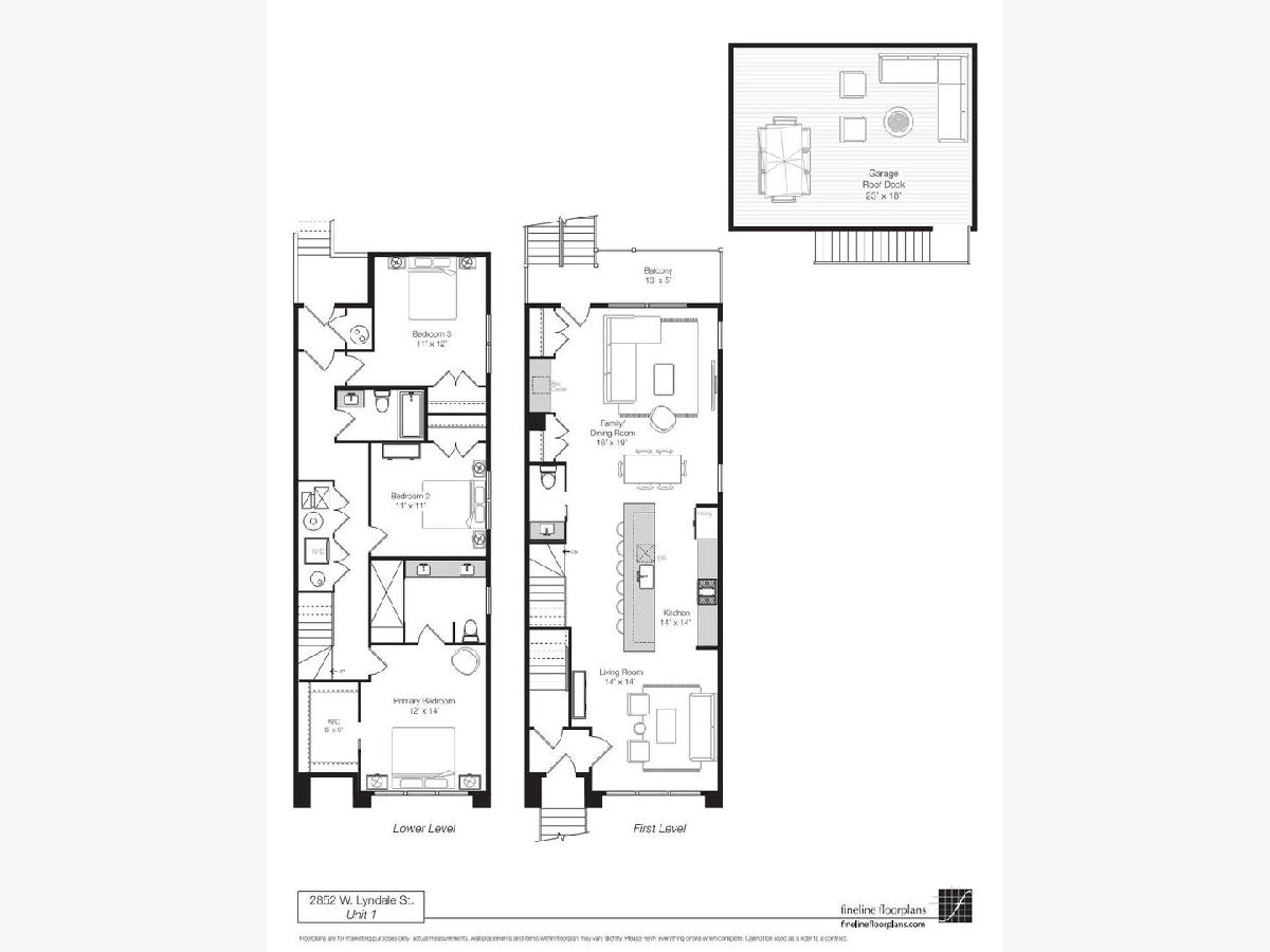 NEW CONSTRUCTION DUPLEX-DOWN CONDO in a 2-unit building situated near Palmer Square Park, public transit, and the main strip of Logan Square. This condo features 3 bedrooms, 2.5 bathrooms and has been beautifully appointed with high-end appliances and designer finishes throughout. Stepping foot into the home you are met by the formal living/dining area which continues through to the kitchen and into the family room via an open concept. The family room then leads to the back deck and during the warmer months, the party can continue onto your PRIVATE GARAGE ROOFTOP DECK built with composite decking. The large primary suite features an enviable walk-in closet and luxurious ensuite bathroom with double vanity, an extra-large shower, and heated flooring for those cold winter mornings. One garage parking space and endless fun in Logan Square are included in the price!