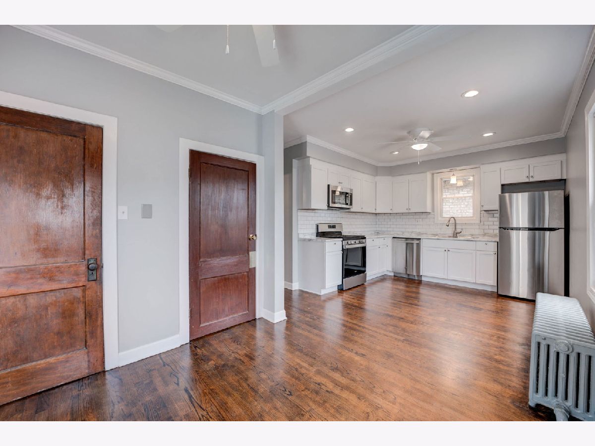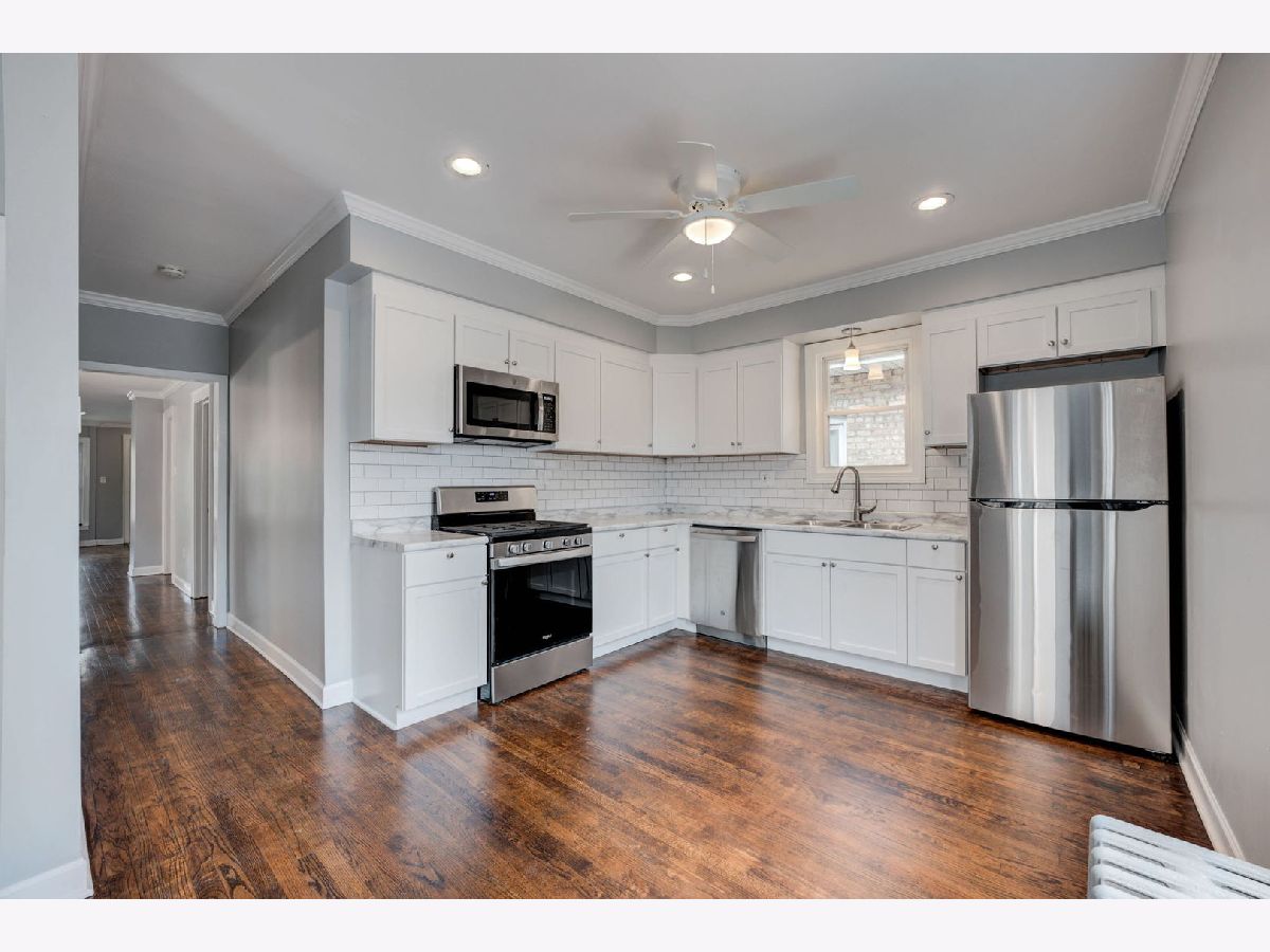 Beautiful, move-in ready home in Belmont Cragin! This charming home features gleaming hardwood floors, a gorgeous remodeled kitchen with white shaker cabinets, subway tile and new stainless steel appliances. You'll love the open and bright living room with wood burning fireplace and separate dining area. All rooms are freshly painted. The basement offers two additional bedrooms, full bath, laundry, storage and convenient side entrance. I almost forgot to mention the huge walk-up attic for additional expansion opportunity. Enjoy the spacious backyard for entertaining, and the 2.5 car garage. Great location, close to schools, shops and public transportation.THIS IS A MUST SEE! Note: Property tax does not reflect any exemptions.