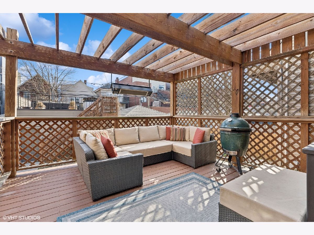 Uncover Urban Elegance in prime Logan Square: This stunning 4 Bedroom, 3.1 Bath single-family home on an extra deep lot built in 2015 offers the perfect blend of city living and modern comfort. Situated within walking distance to the Blue Line train (California Station) and vibrant entertainment options including Revolution Brewery, Meadowlark, Emporium, Gaslight Coffee Roasters and many more along Milwaukee Ave. This home provides the ultimate urban lifestyle. Spread across three levels, the home features 3 Bedrooms and 2 Bathrooms on the upper level with an additional 4th Bedroom and 3rd Bathroom in the lower level. The main level boasts an open layout with tall ceilings, creating an ideal space for seamless entertaining and offers a flexible floor plan. The Kitchen features an abundance of double stacked cabinet space, Bosch stainless steel appliances, quartz counters, island with breakfast bar and vented hood. Step out onto the large deck with a pergola down to the grassy yard (ideal for dog lovers), or ascend to the deck over the two-car garage which provides ample outdoor space to enjoy the city's energy. On the upper level, the Primary suite features walk-in closets, a Primary bedroom large enough for a seating area and a luxurious bathroom with a floating vanity, porcelain tile and oversized shower. Discover an enormous family room and a stylish wet-bar in the lower level, offering the perfect setting for gatherings and relaxation. 4th Bedroom, Bathroom and Laundry Room complete the lower level. Don't miss the opportunity to make this sophisticated urban oasis your own, where luxury and convenience converge in the heart of Logan Square.