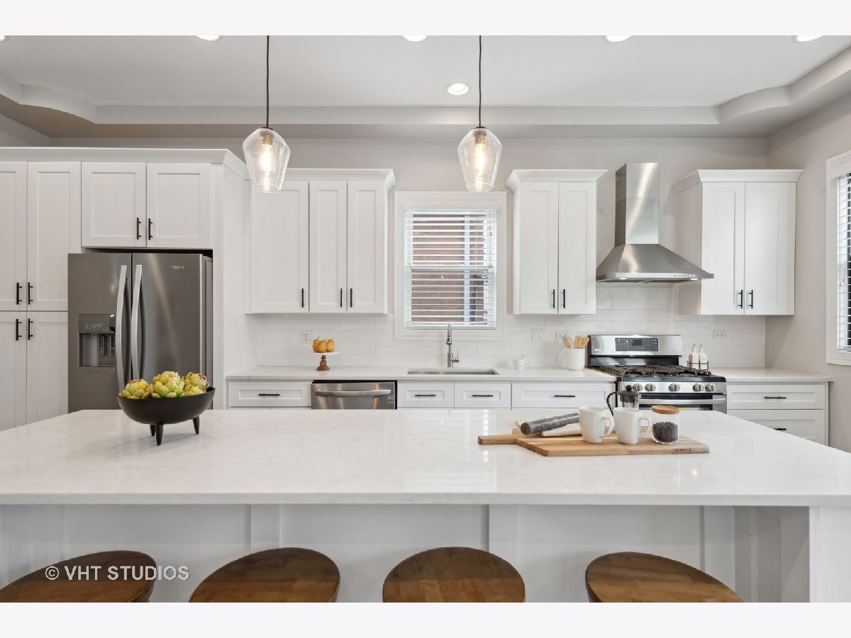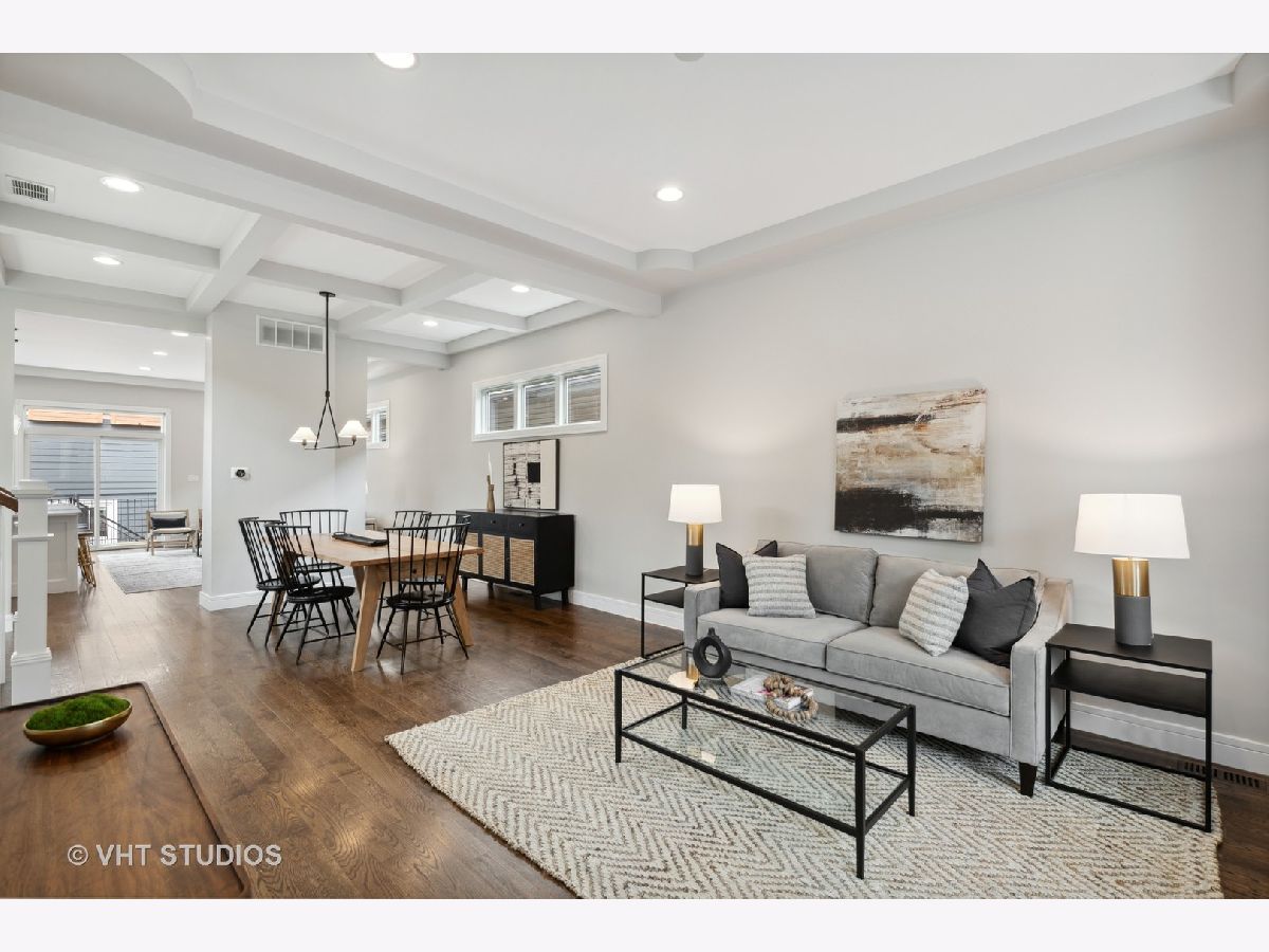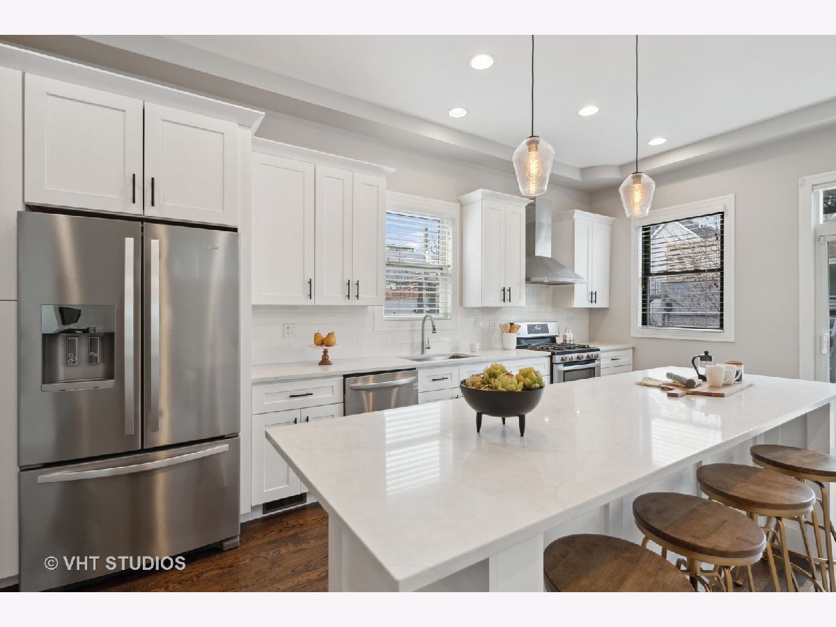 You're invited to sizzling hot Palmer Square to view this gut-rehabbed 4 bdrm/3.1 bth gem! Coffered ceilings, hardwood floors & a dramatic central staircase with a wall of west-facing windows welcome you to this light, bright, airy, open space. The kitchen, reimagined in 2022, is a chef's dream with top-of-the-line appliances, sleek countertops, and plenty of storage space. Imagine whipping up delicious meals while entertaining friends and family in the open-concept living area. The natural light that floods through the large windows really brings the whole space to life. With four generously sized bedrooms, there's enough room for everyone to have their own sanctuary. The primary suite is simply breathtaking, with vaulted ceilings & an enormous dual- entry walk-in closet with a window. En-suite bath with dual floating vanity, separate jetted tub, walk-in shower enclosed in glass & tiled to the ceiling with transom window & rain-head fixture. The additional bathrooms are equally impressive, featuring modern fixtures and high-end finishes. Lower level, only slightly below grade, boasts a recreation room w/wet bar, 4th bdrm & newly redone bath. Completely insulated & drywalled attic provides huge additional storage. Picture yourself spending warm summer evenings on one of two private decks, enjoying a glass of wine or hosting unforgettable barbecues. Extend your entertaining season with a newly installed gas fire pit. Palmer Square has always been a hot spot, but right now it's absolutely sizzling. You'll find trendy shops, delicious restaurants, and beautiful parks just steps from your front door. A stone's throw to the California Blue line stop, Palmer Square Park, Holstein Park & the 606! Plus, the neighborhood is known for its strong sense of community and friendly neighbors.